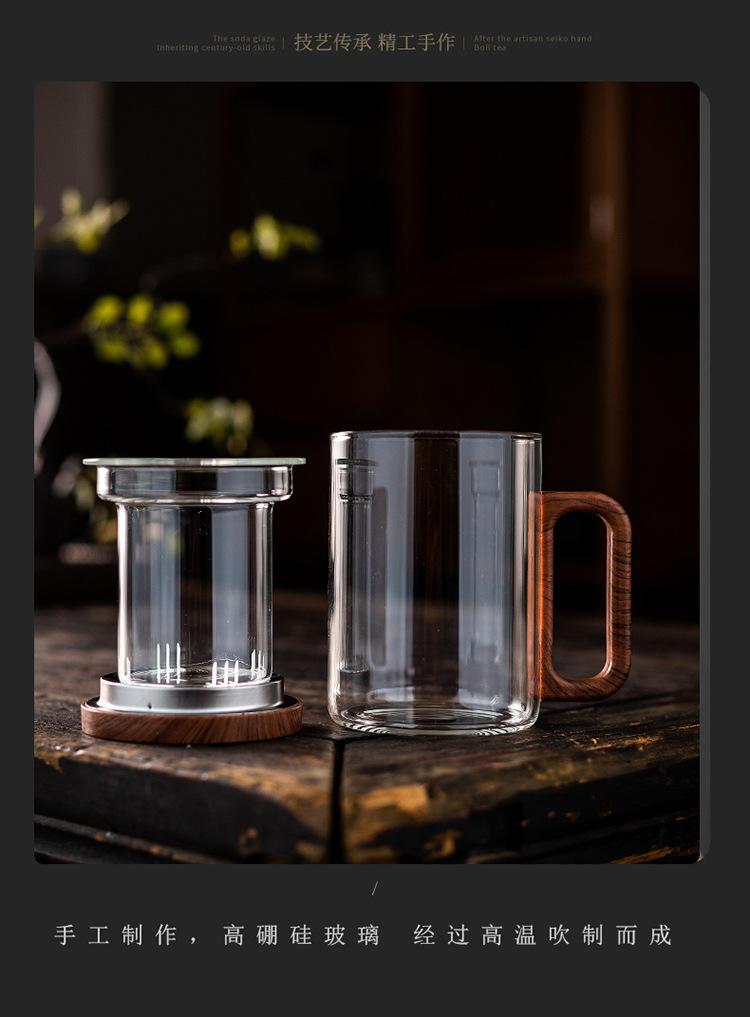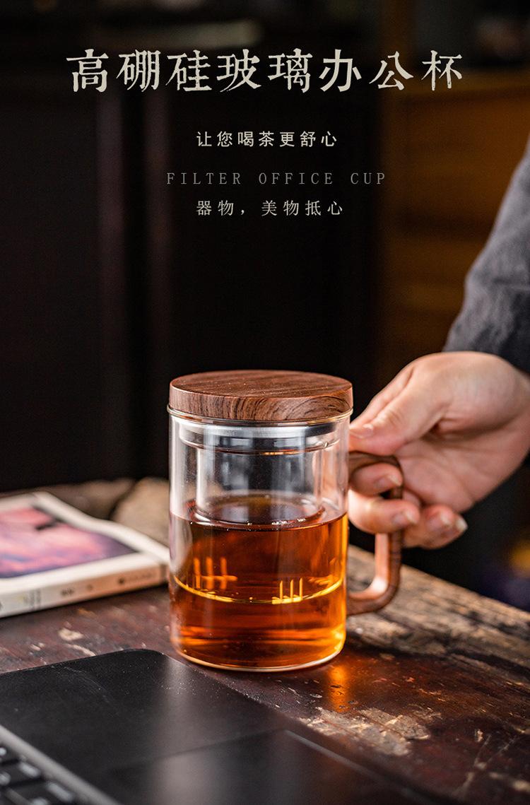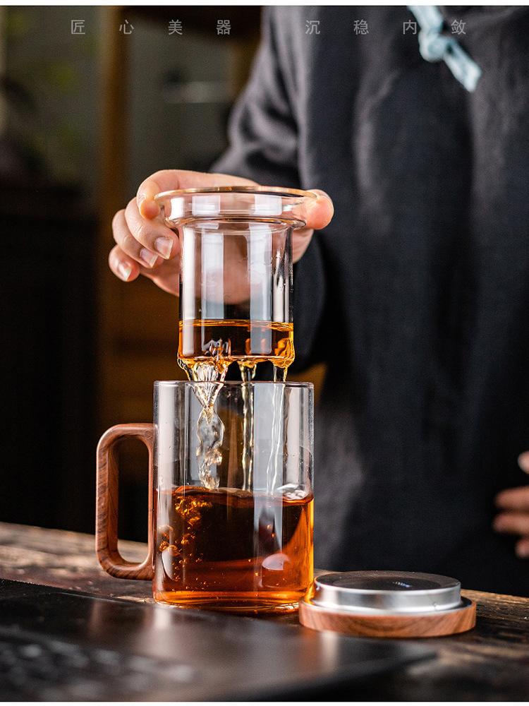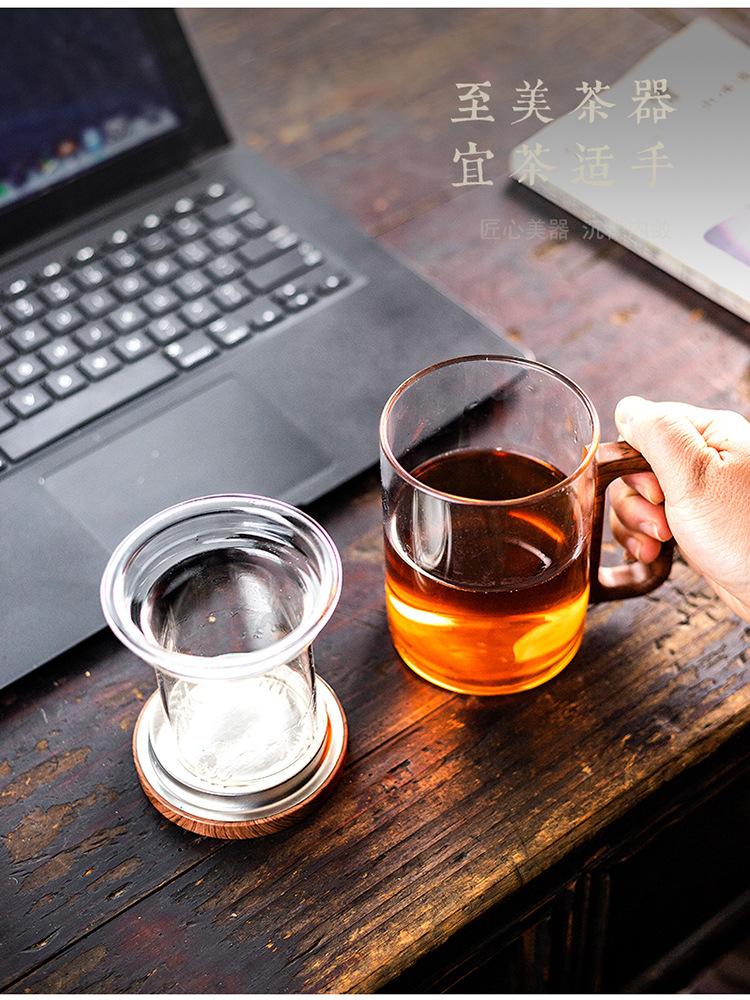 Taza de Té de Vidrio Grueso para Oficina Taza de Té Estilo Japonés Taza Separadora de Té y Agua Taza para Té de Flores para Hogar Taza de Agua para Hombres y Mujeres