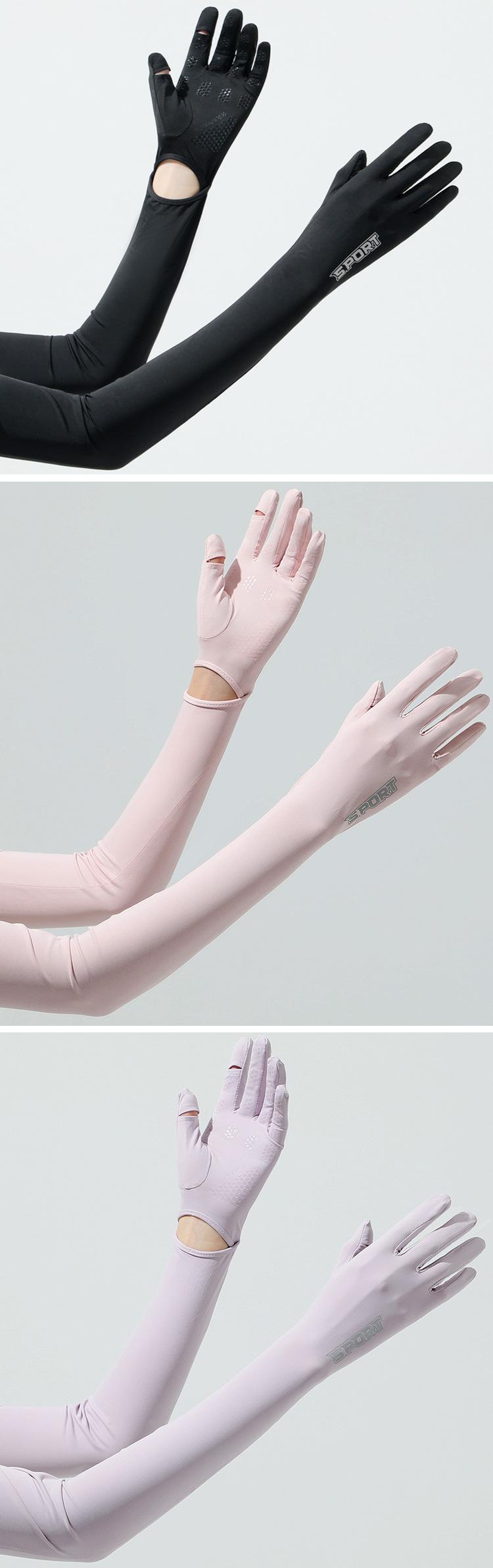Mangas de protección solar con dedos extendidos, delgadas, antideslizantes, transpirables, protectores de brazo para protección solar para conducir en verano, guantes de protección solar de seda de hielo para mujer