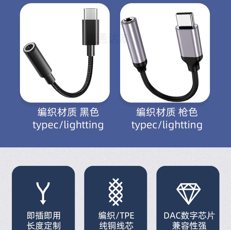 [knitting material gunmetal color] type-c to 3.5mm + opp bag