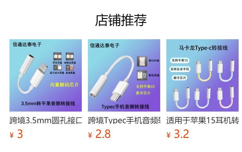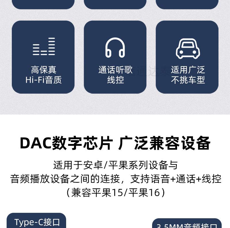 Adecuado para Pingguo 16 Huawei Xiaomi tipo c Adaptador de auriculares Teléfono móvil a 3.5mm Adaptador de línea de audio
