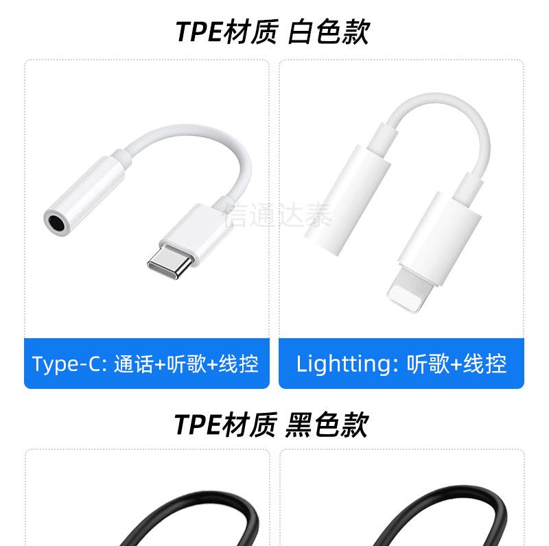 [tpe material white] type-c to 3.5mm+opp bag, [tpe material white] lighttting to 3.5mm + opp bag, [tpe materia...