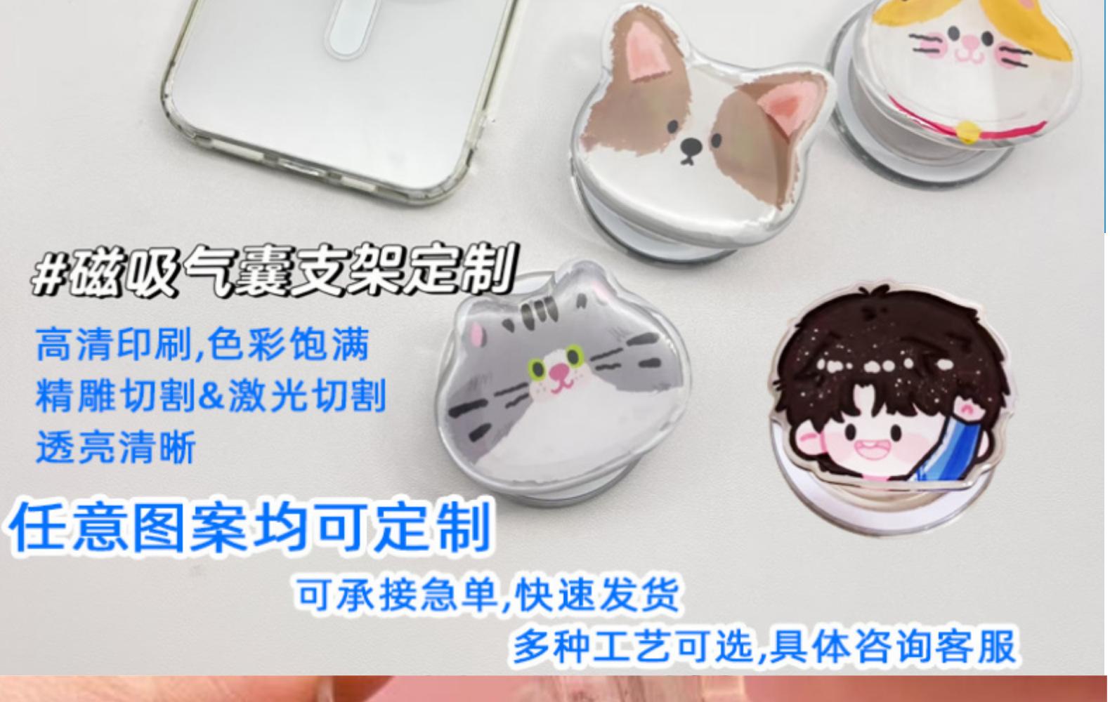 Magnetic mobile phone airbag holder personalized acrylic special-shaped cartoon animation logo glue lazy desktop holder