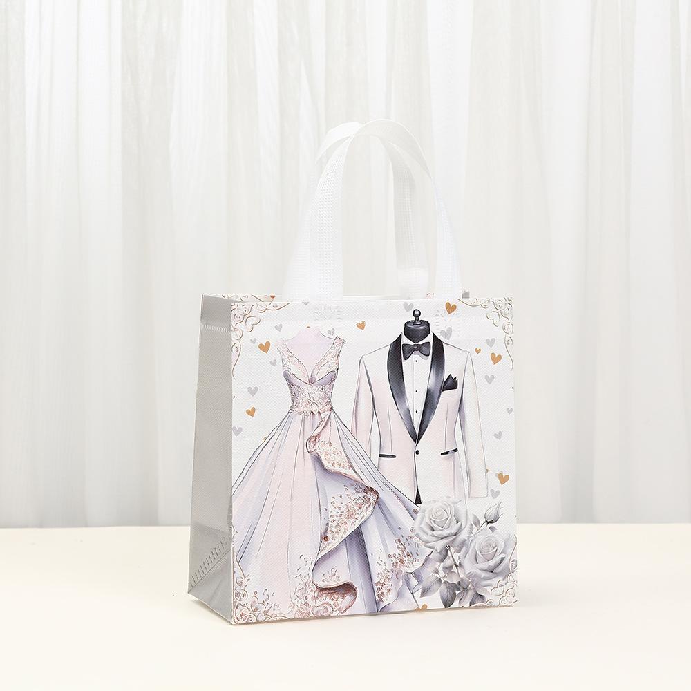 Bolsa de Embalaje para Regalo de Boda Bolsa de Compras de Ropa No Tejida Impresa Bolsa de Almacenamiento Plegable Bolsa al por Mayor