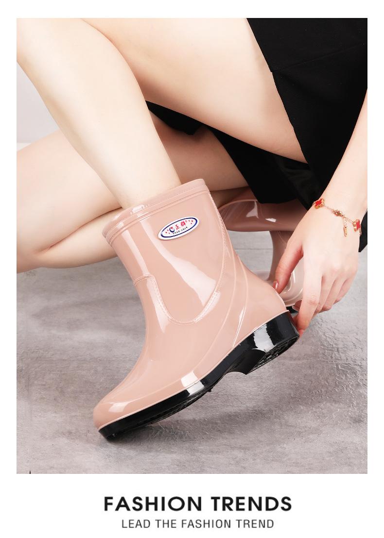 Botas de lluvia de moda para mujer hasta media pantorrilla, de secado rápido, sin forro, para limpiar, cocina, mercado de mariscos, conducir, zapatos para el agua, zapatos de goma