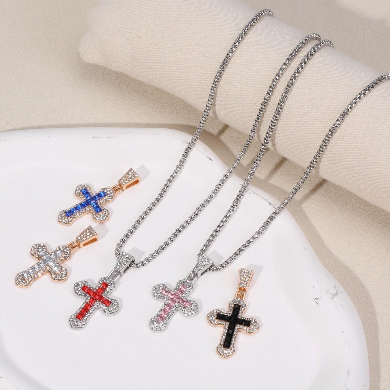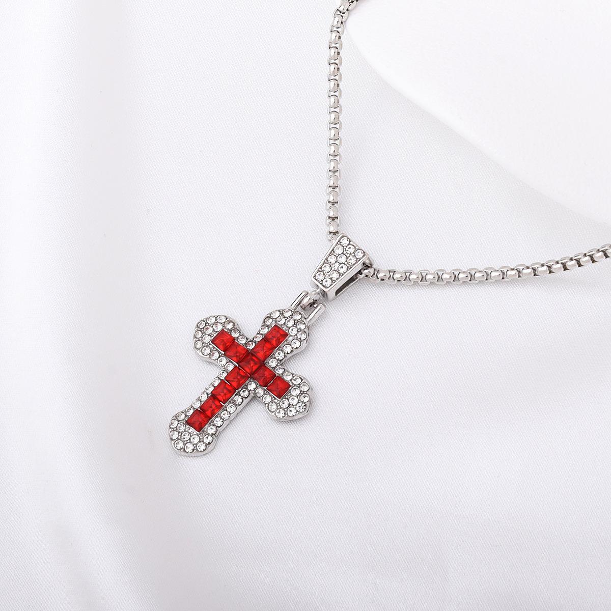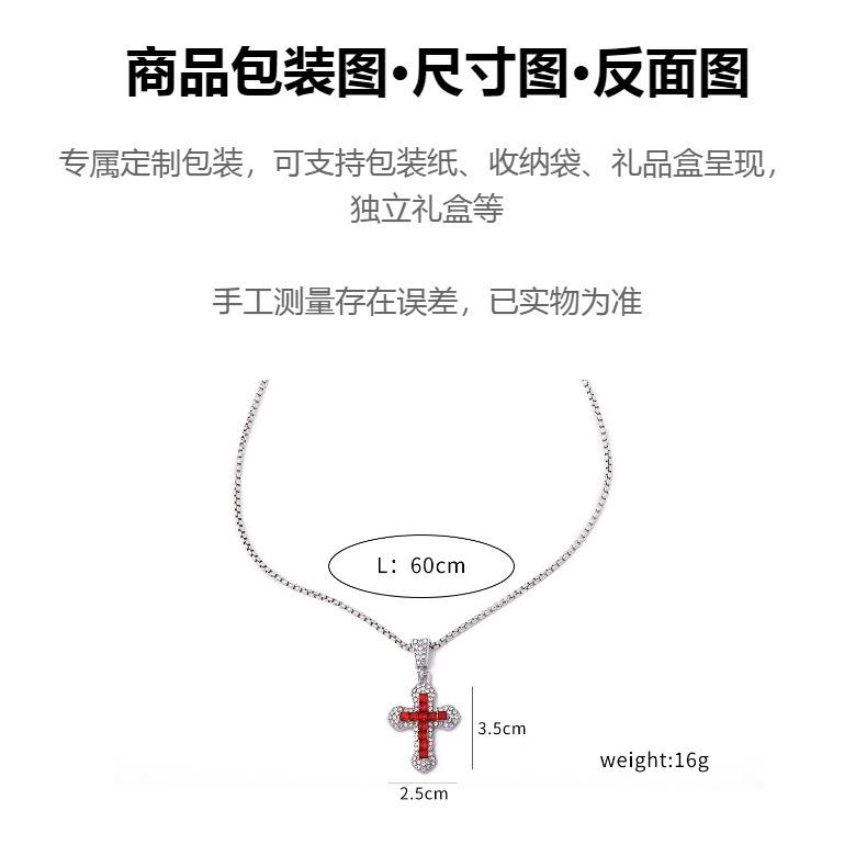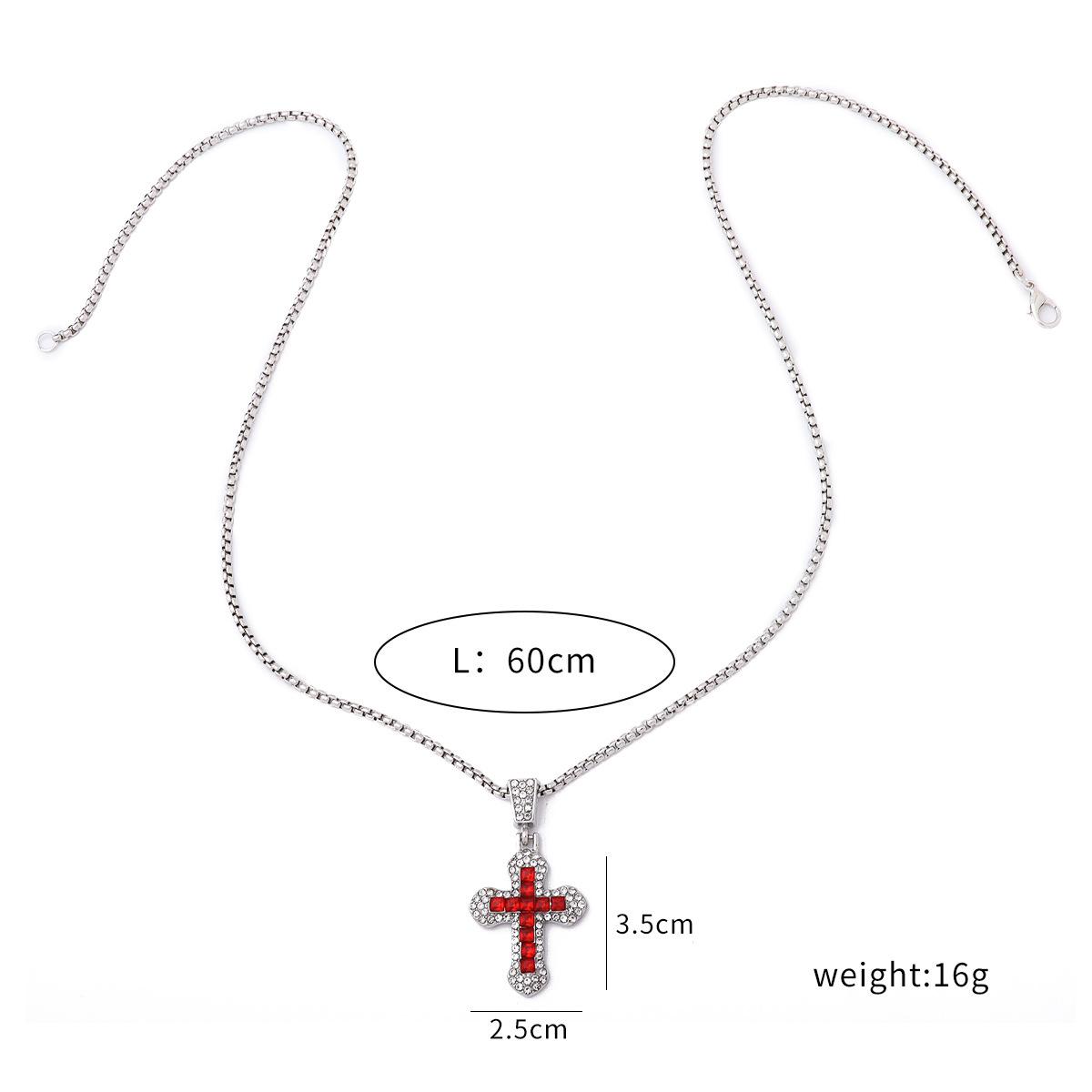 Moda Dulce Sensación de Diseño Cool Super Flash Diamante Rojo Colgante de Cruz Collar Cadena de Clavícula Simple Exquisita de Alto Grado para Mujer