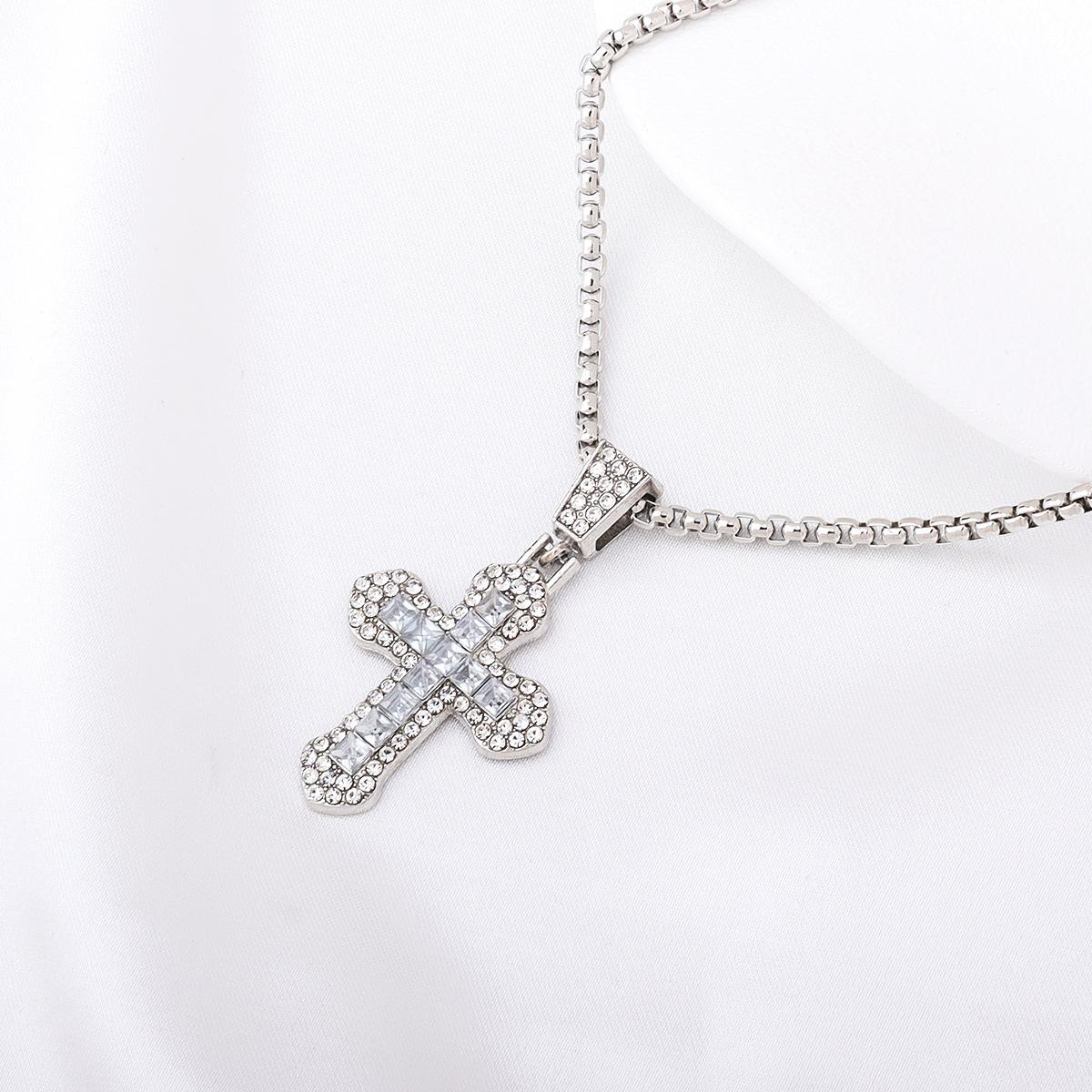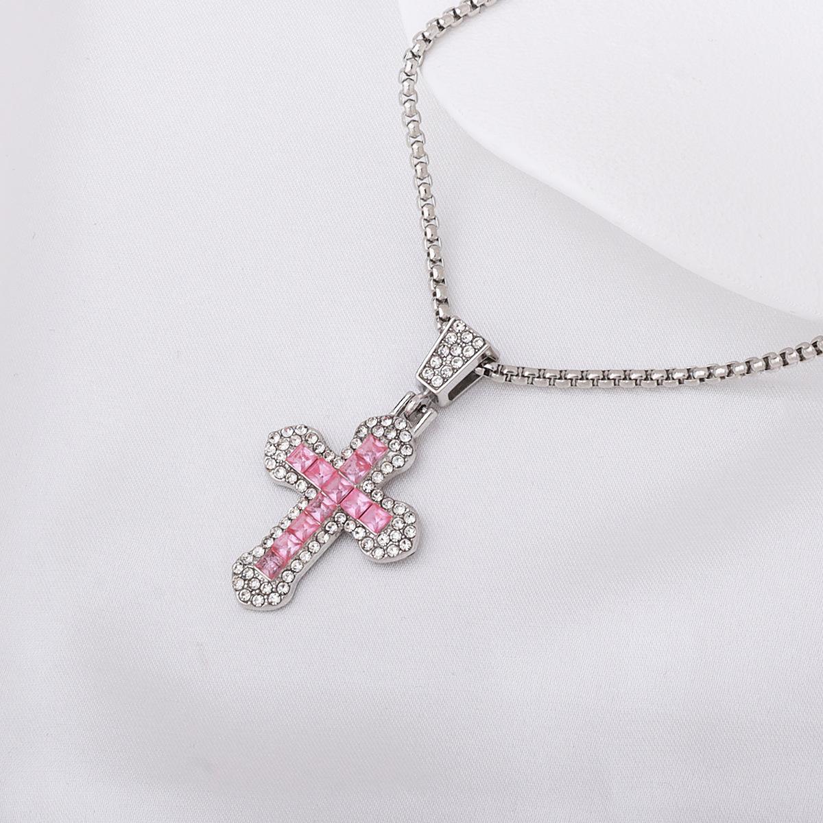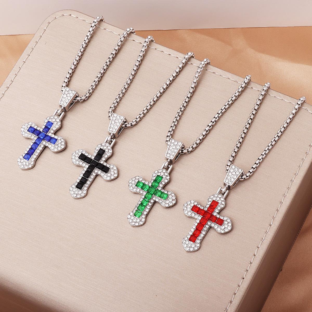 Moda Dulce Sensación de Diseño Cool Super Flash Diamante Rojo Colgante de Cruz Collar Cadena de Clavícula Simple Exquisita de Alto Grado para Mujer