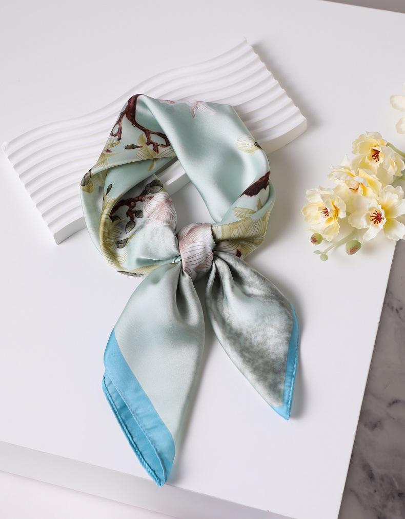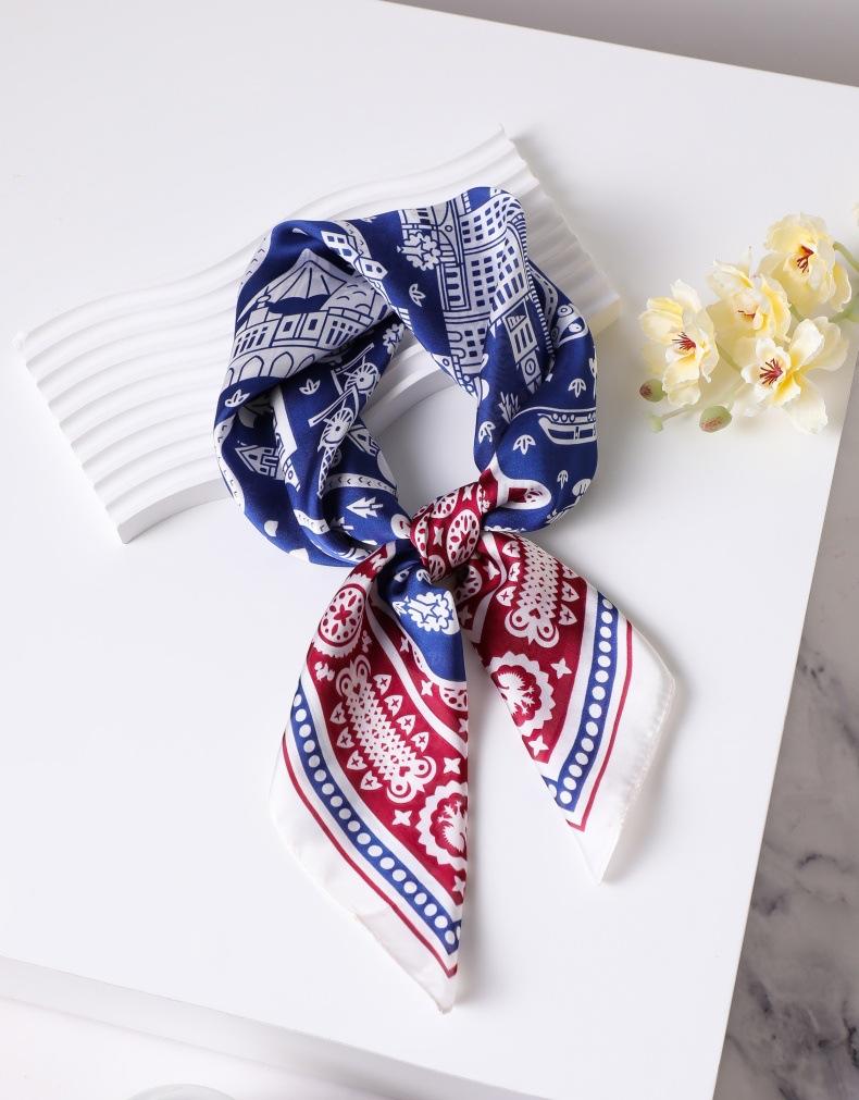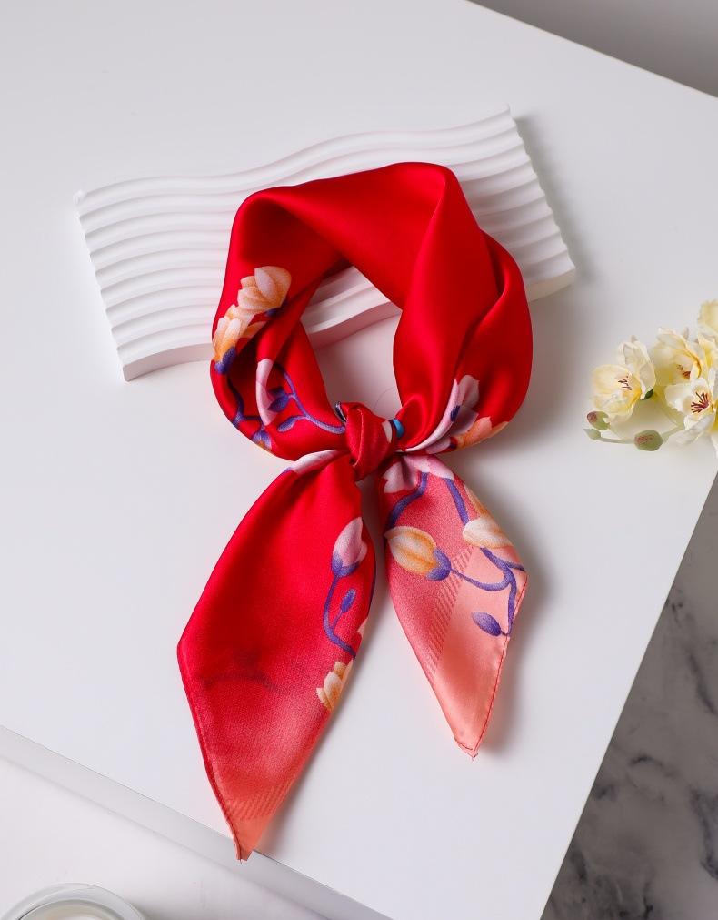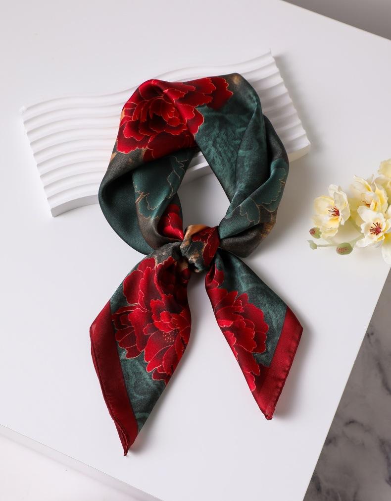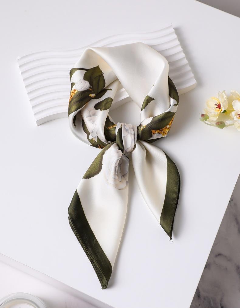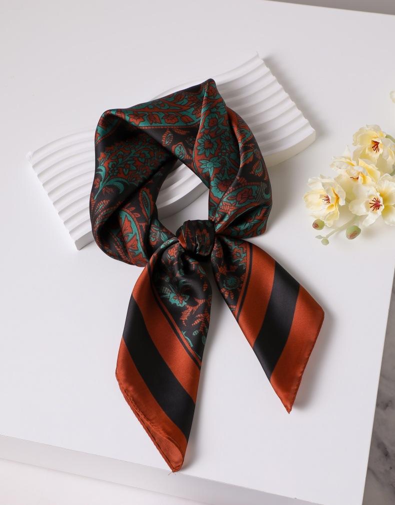 | Bufanda de seda de 70 cm, pequeña bufanda cuadrada de alta gama, estilo coreano, versátil, profesional, de imitación de seda, con estampado retro, para mujer. |