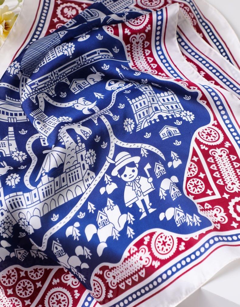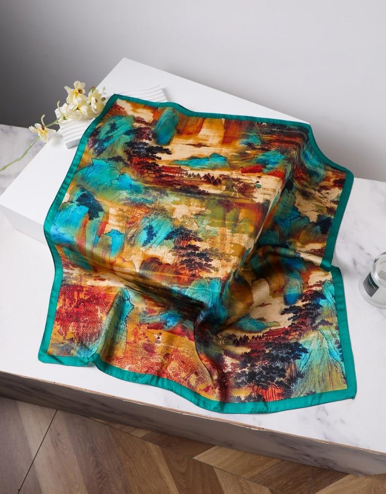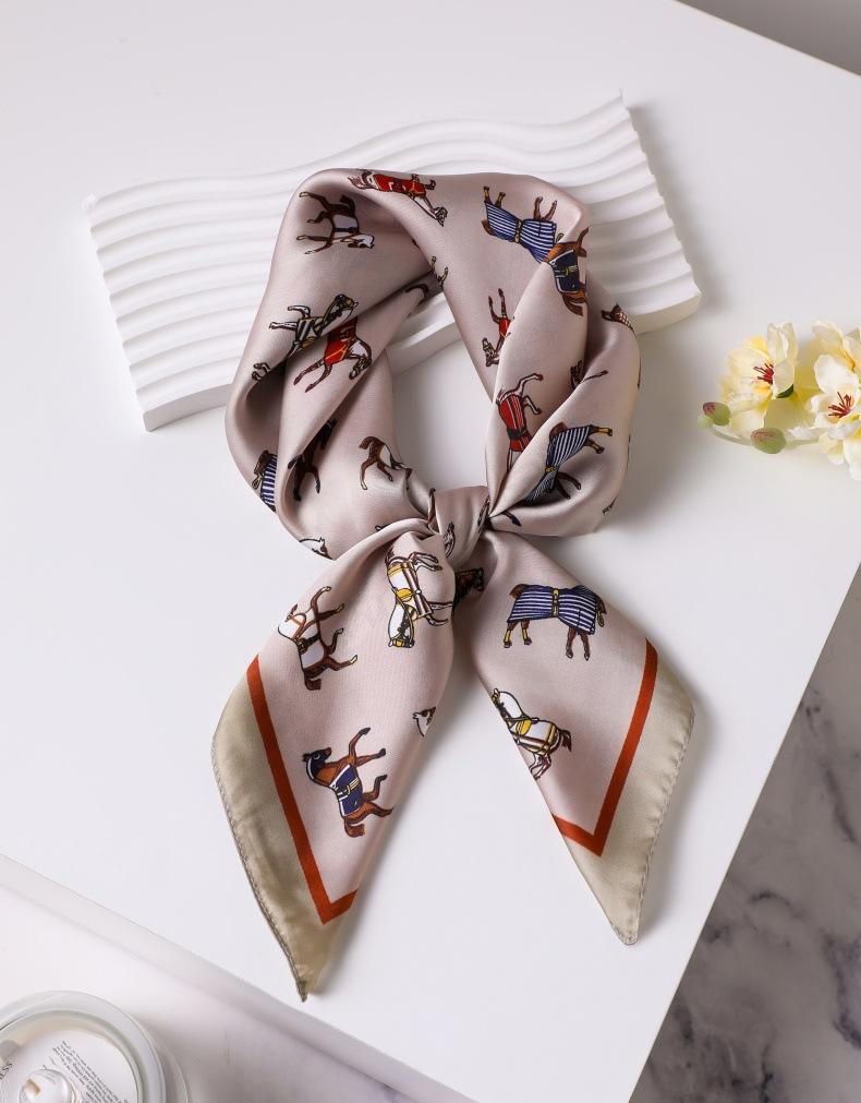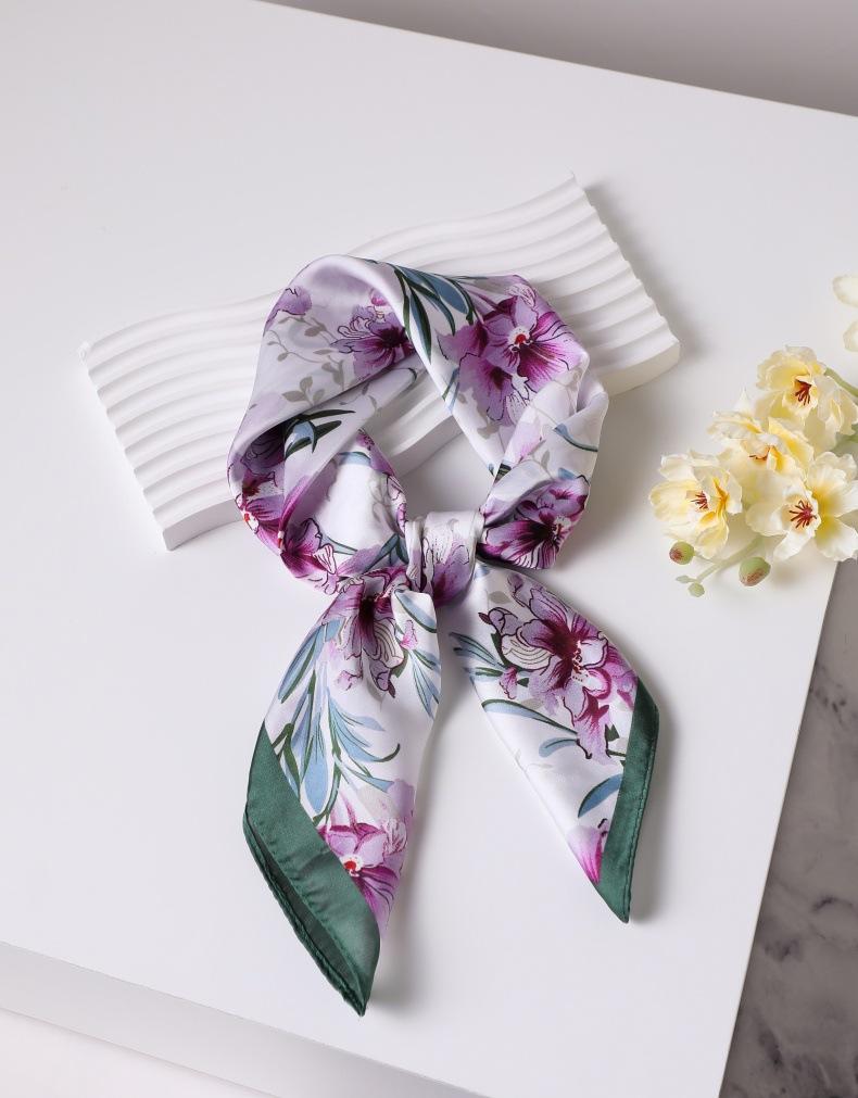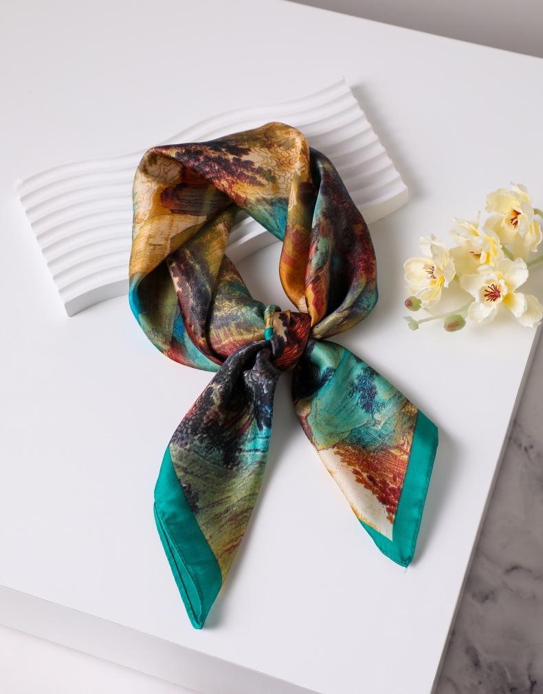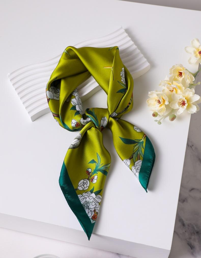 | Bufanda de seda de 70 cm, pequeña bufanda cuadrada de alta gama, estilo coreano, versátil, profesional, de imitación de seda, con estampado retro, para mujer. |