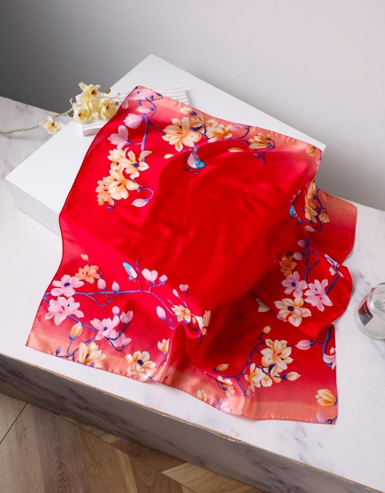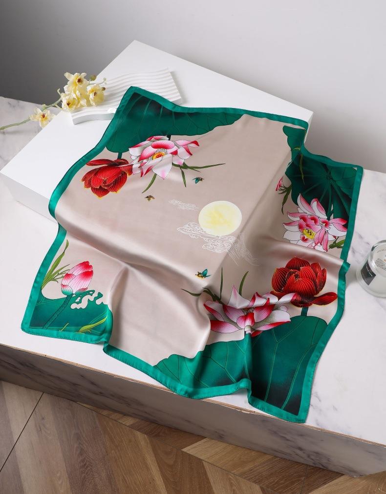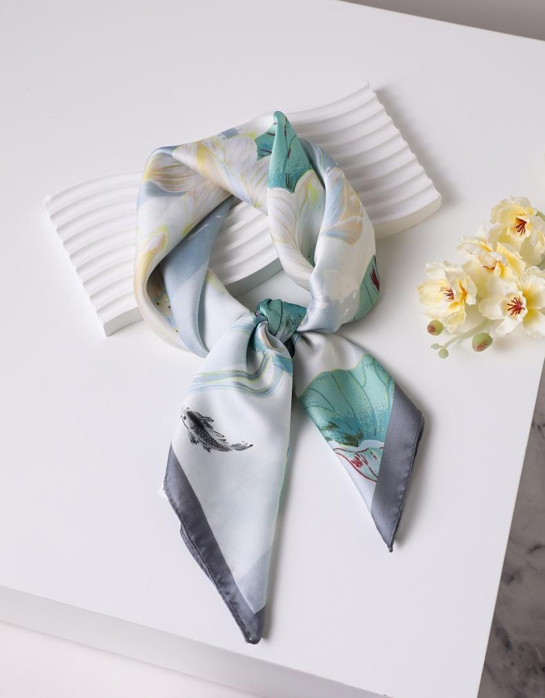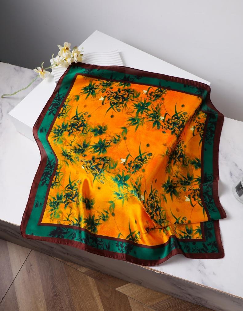 | Pañuelo de seda cuadrado de alta gama, 90 cm, pequeño, profesional, de seda sintética, elegante, estampado, para primavera y verano |