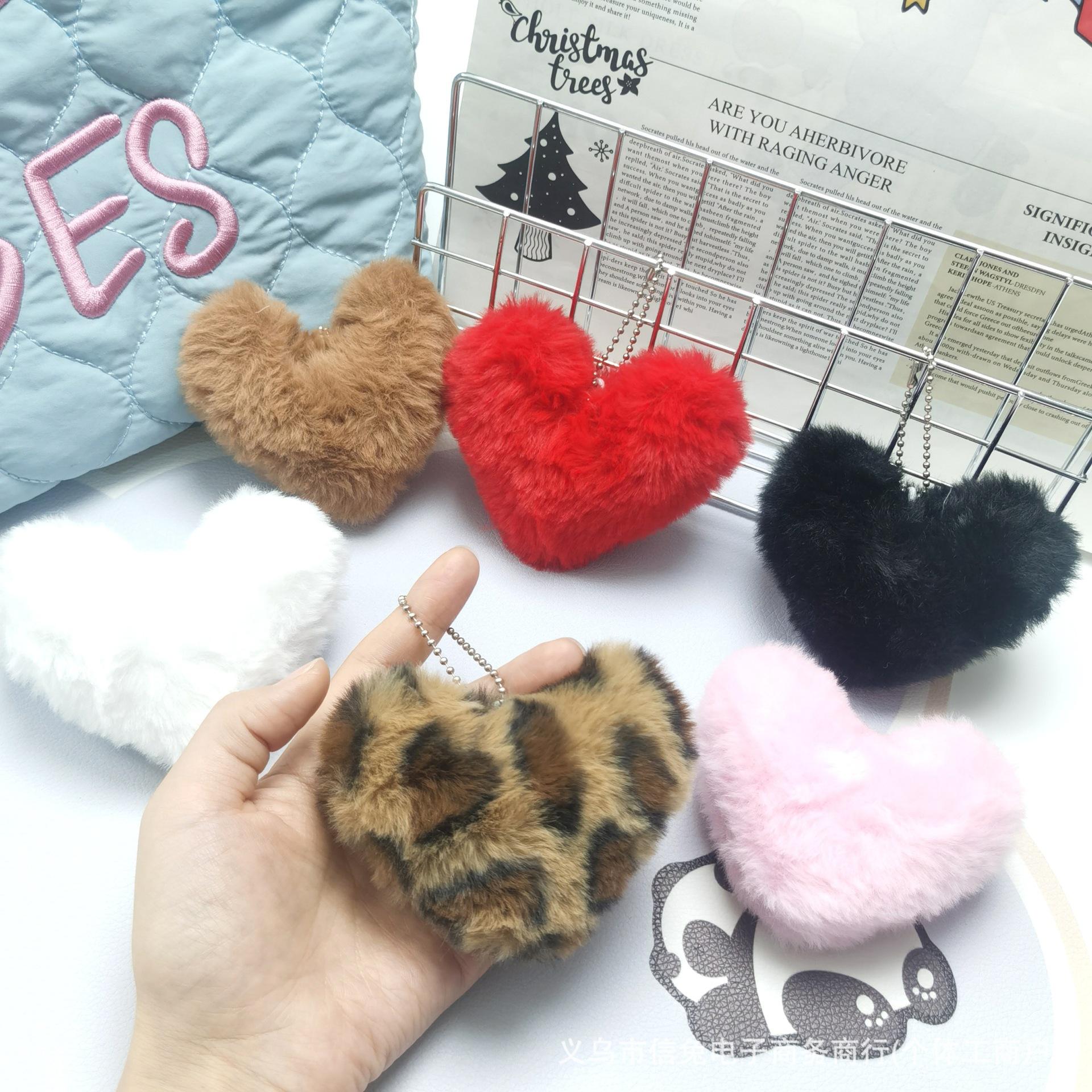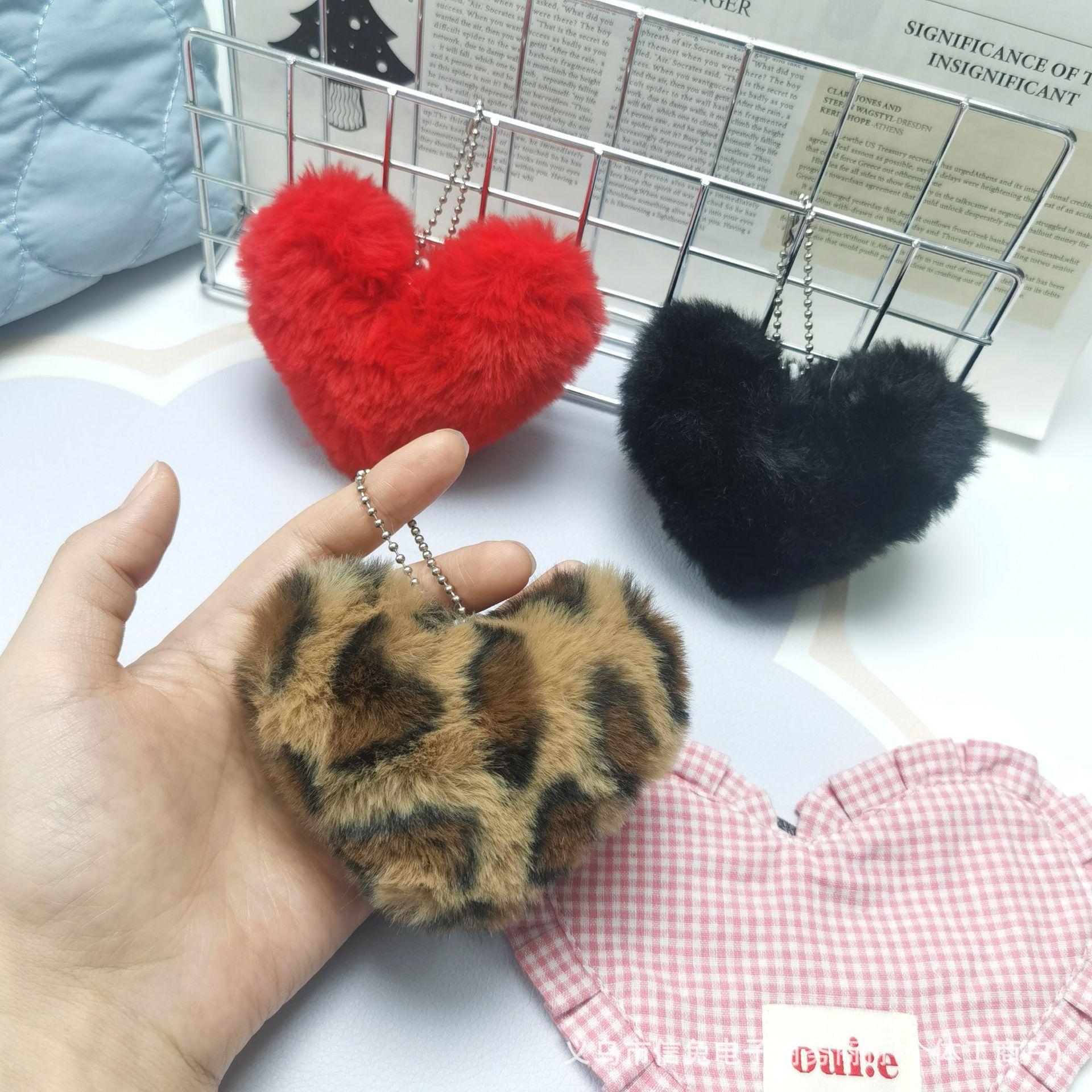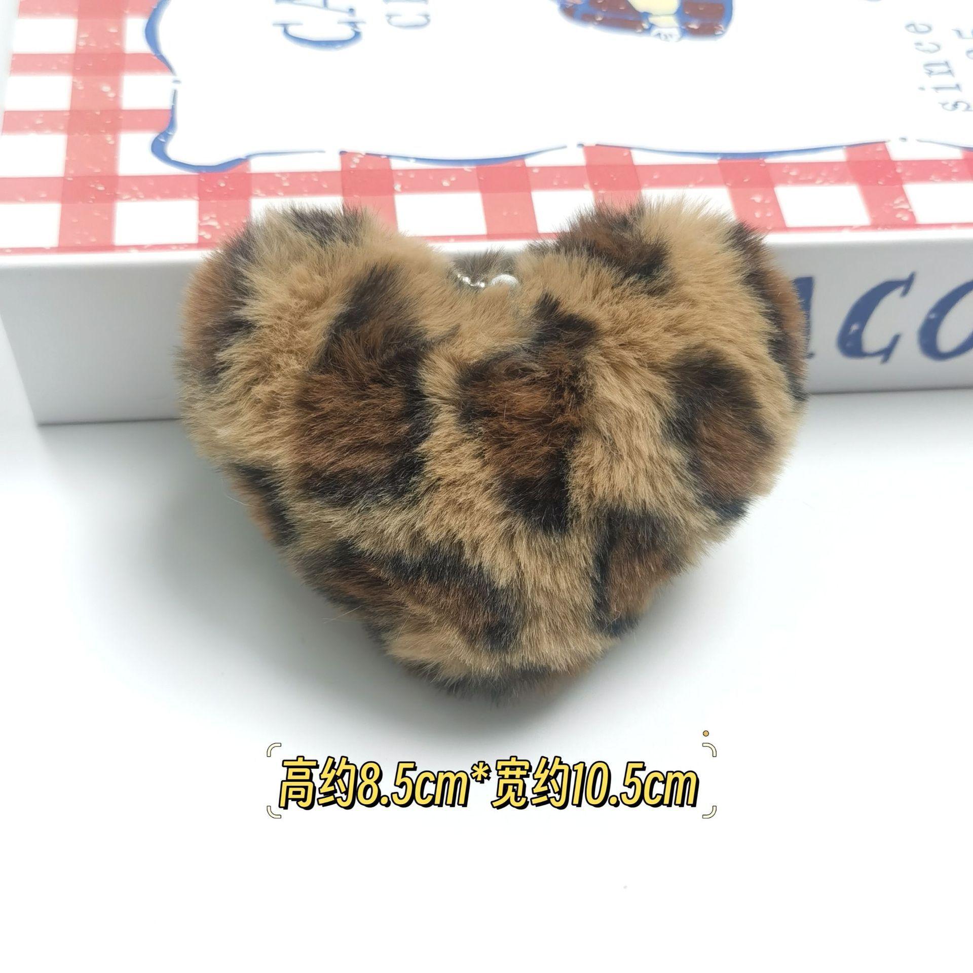 Lindo Colgante de Peluche de Amor Estampado de Leopardo Decoración de Bolsa de Amor Accesorios para el Cabello Decoración de Muñeca de Corazón para Máquina de Muñecas