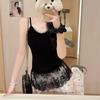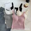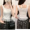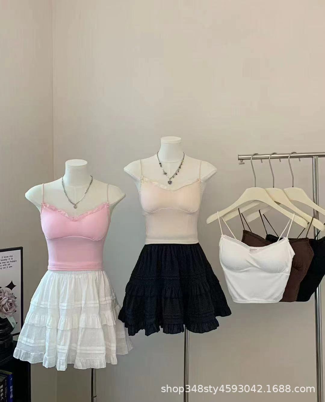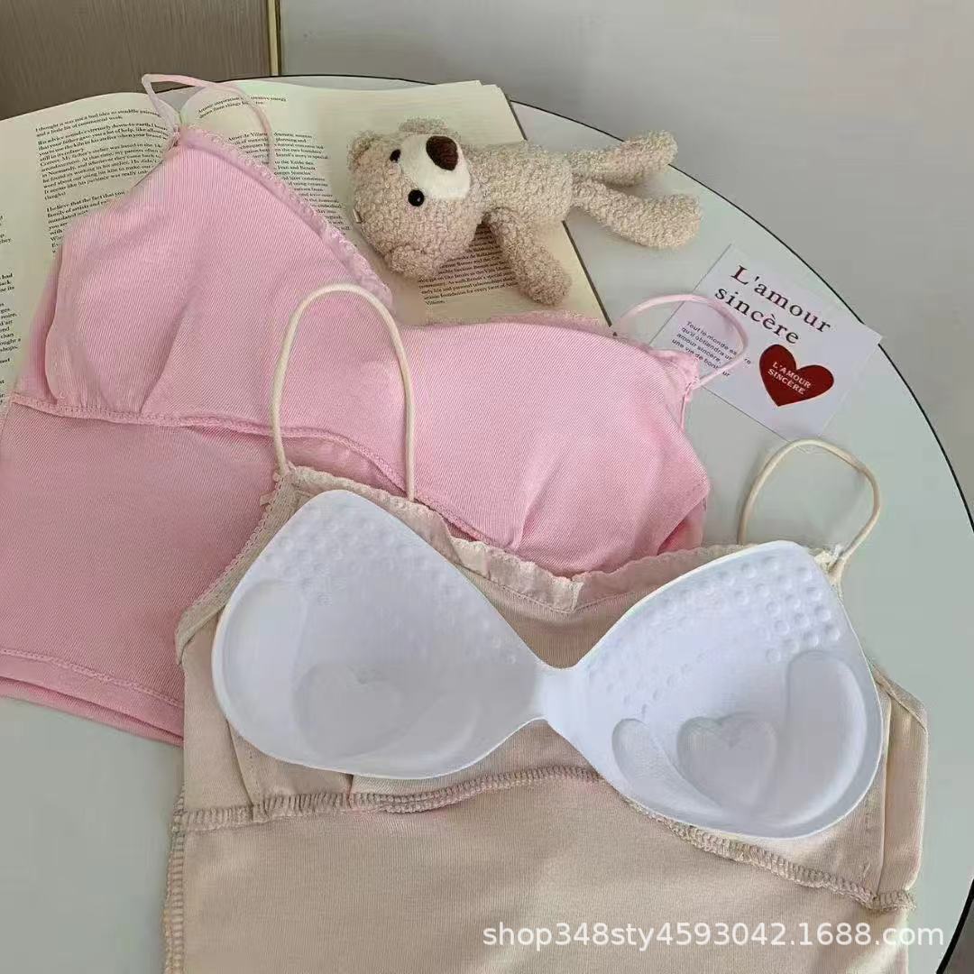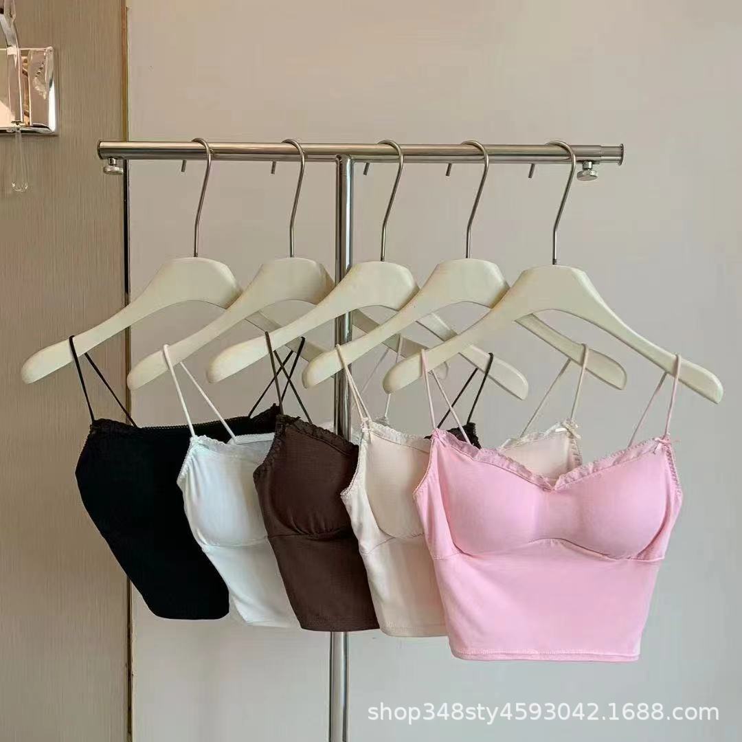 Camisola de Rayón Estilo Crema con Encaje de Lazo y Almohadilla en el Pecho Hermosa Espalda Adelgazante Ropa Interior/Exterior Top 705