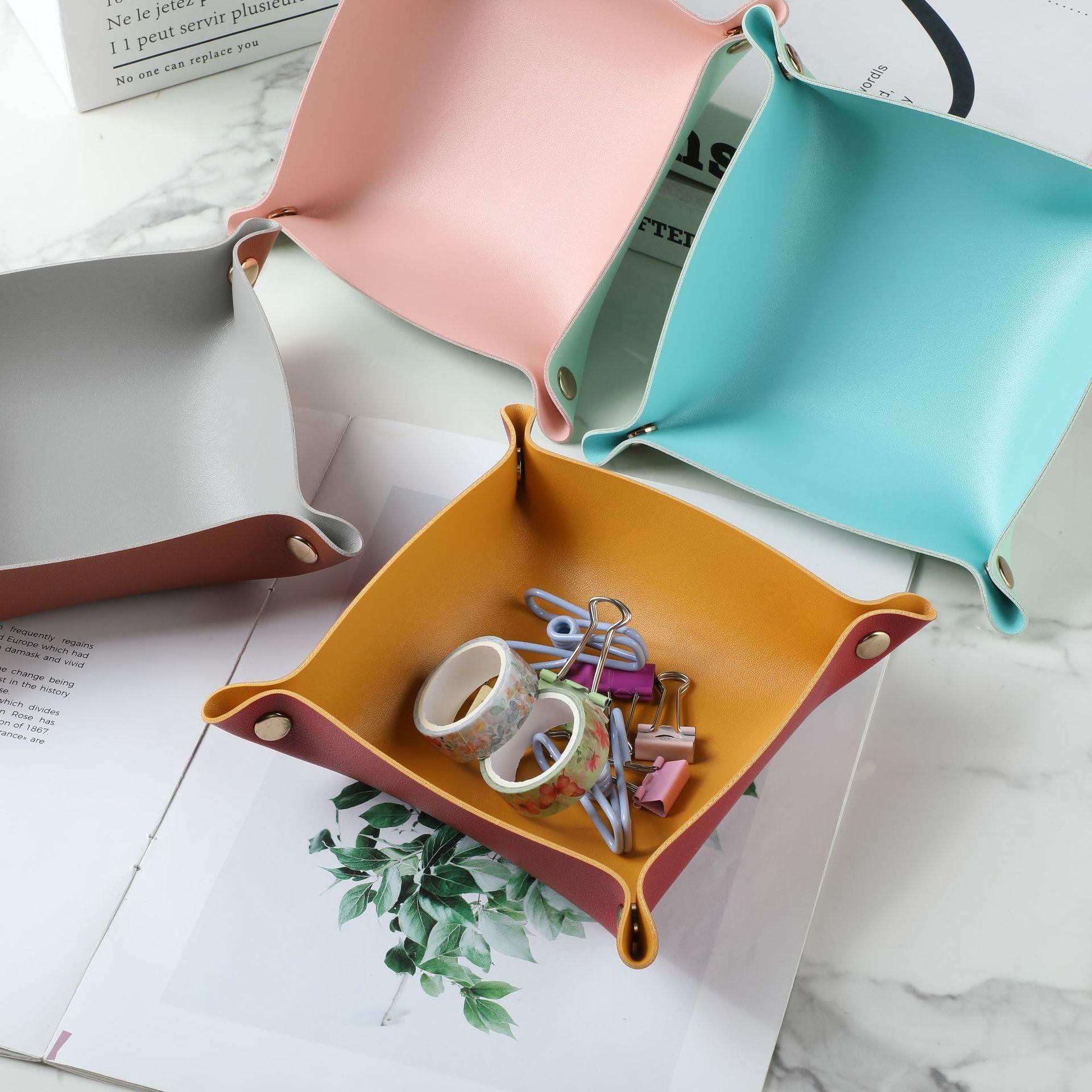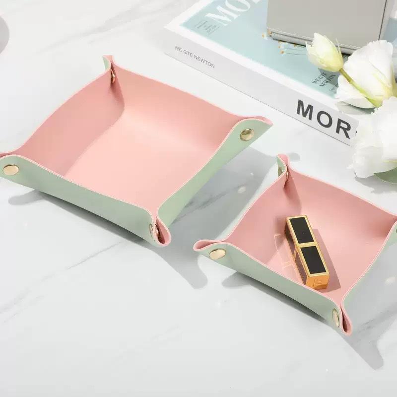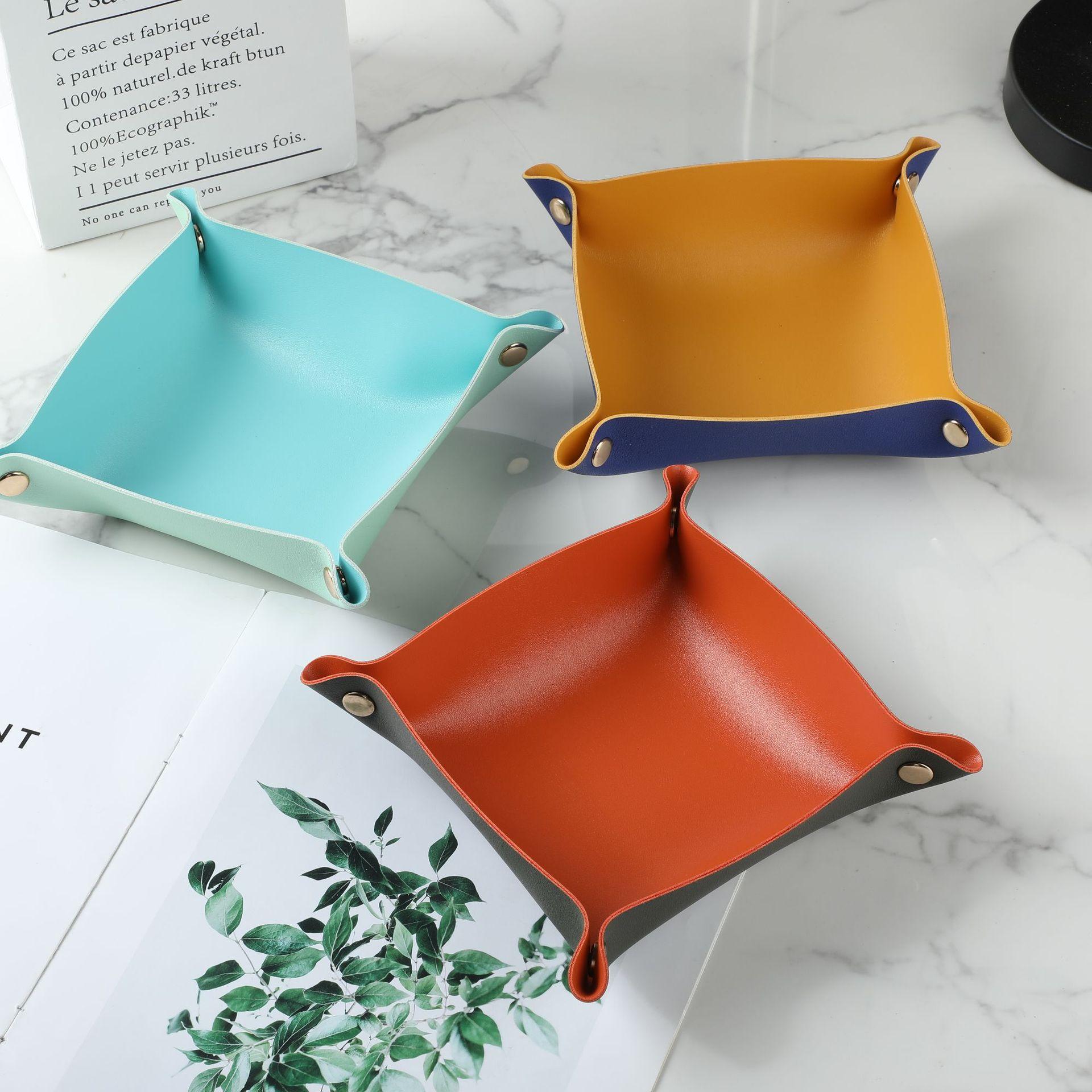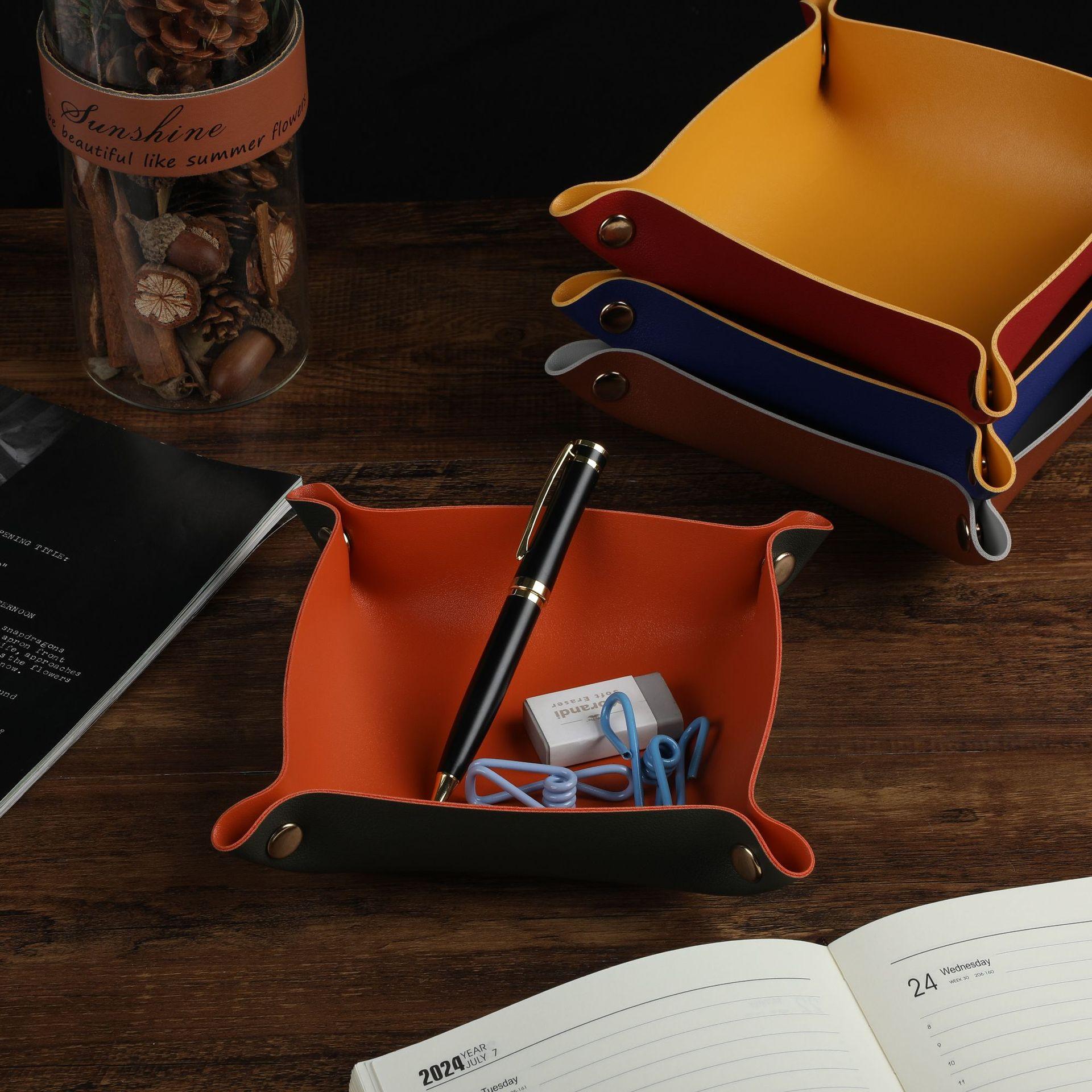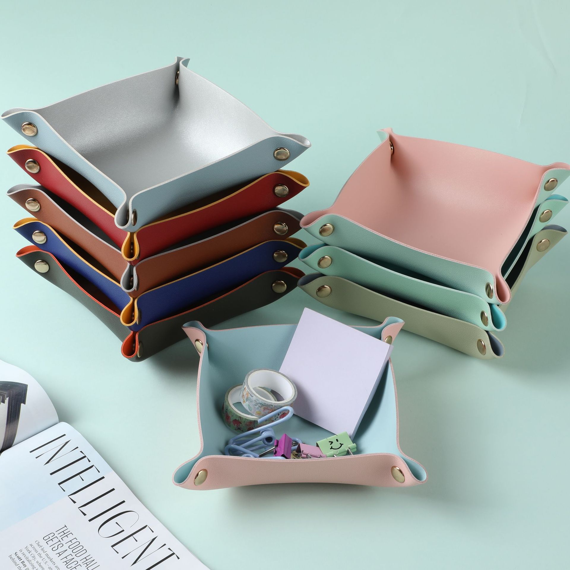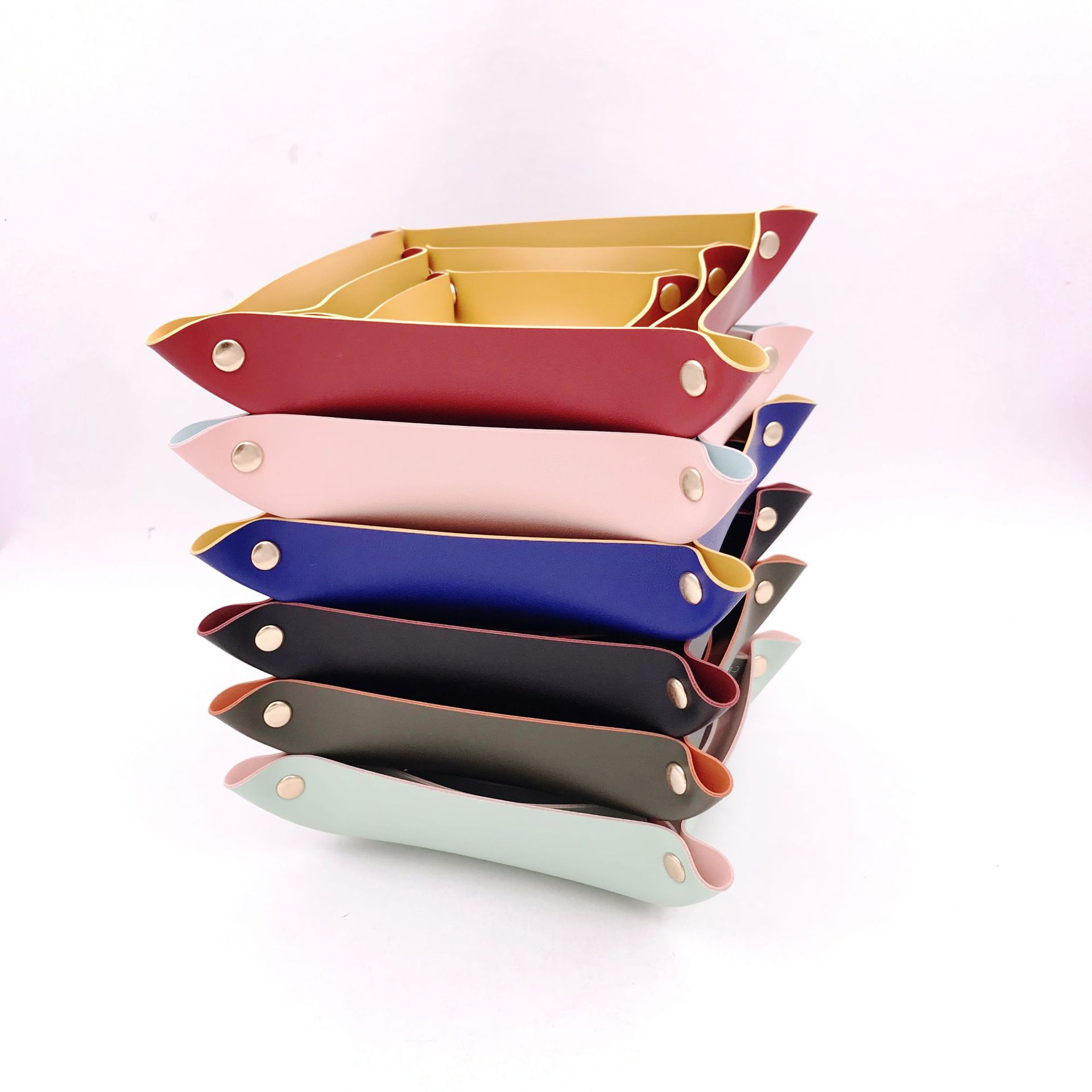 Caja de Almacenamiento de Cuero al por Mayor Bandeja de Almacenamiento de Escritorio Caja de Almacenamiento de Cuero para Joyería y Cosméticos Doble Plegado