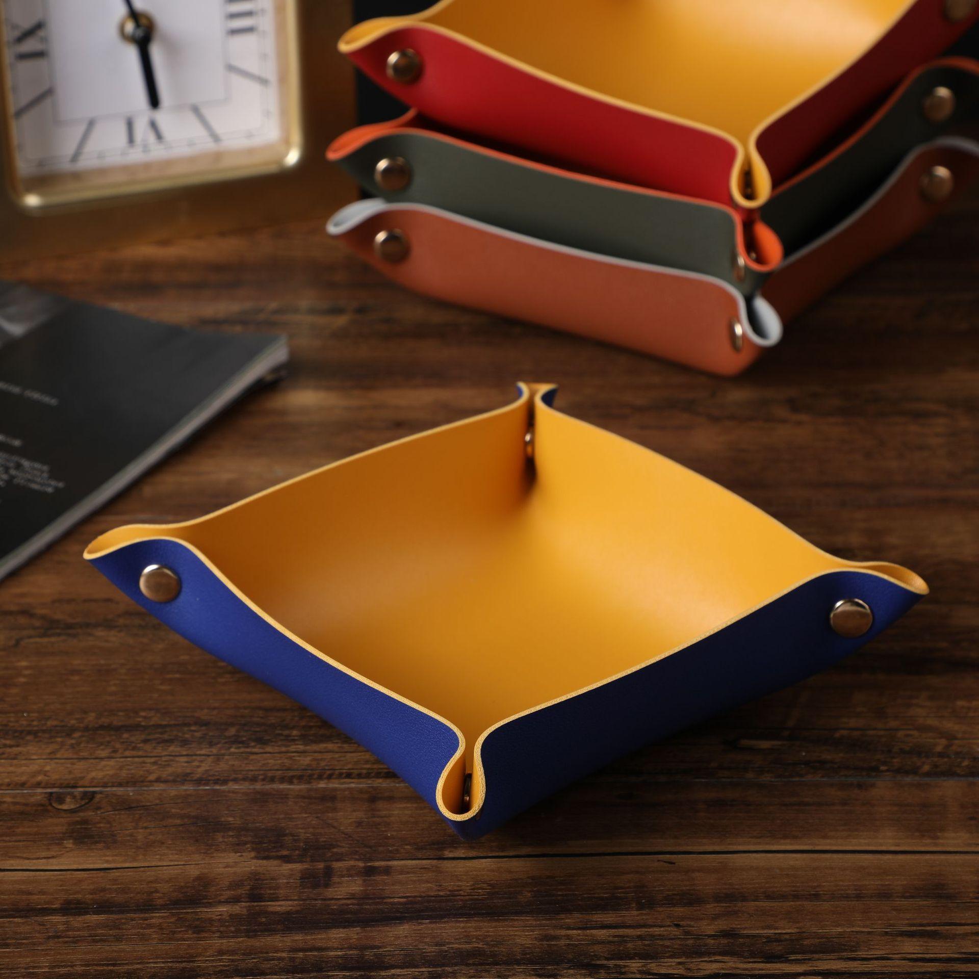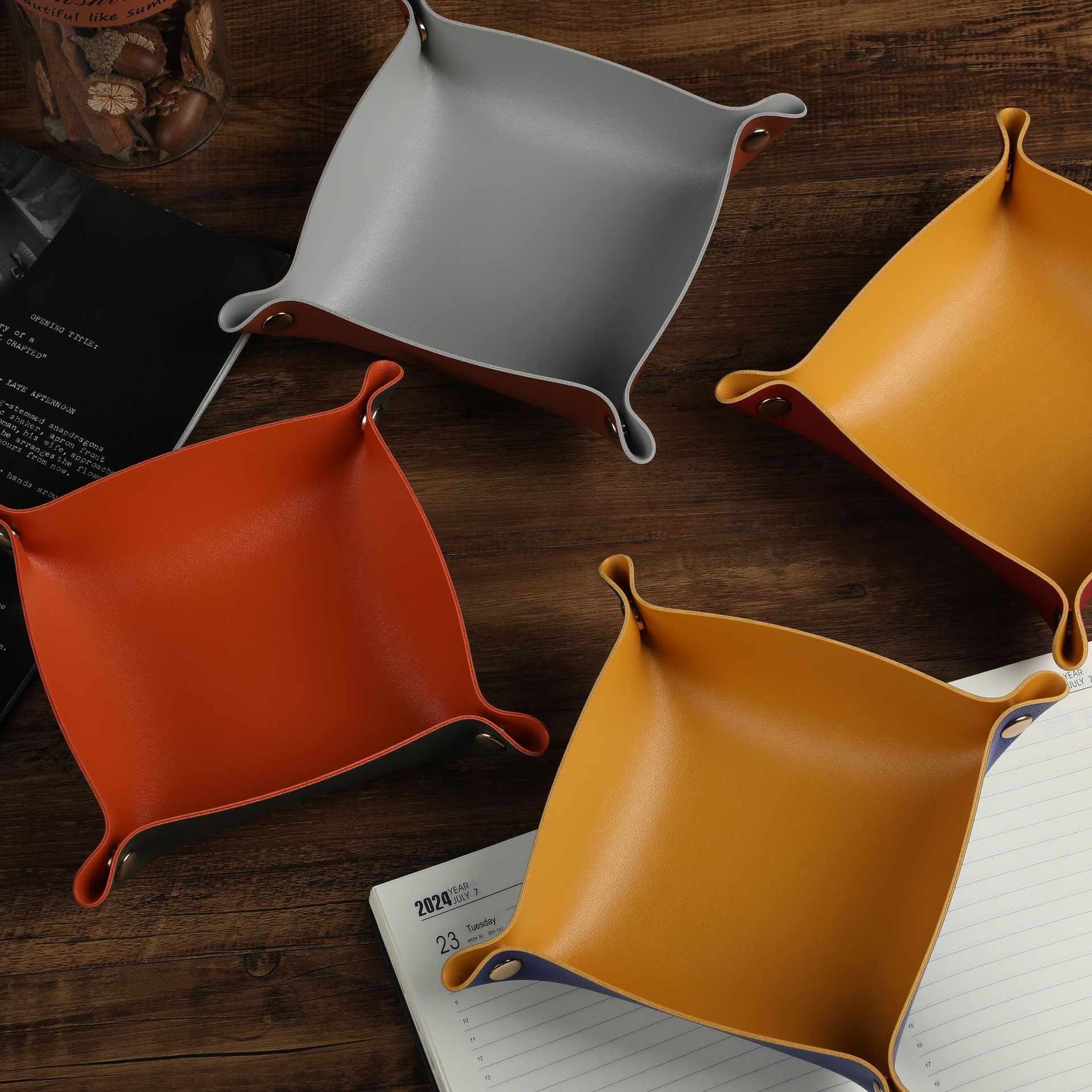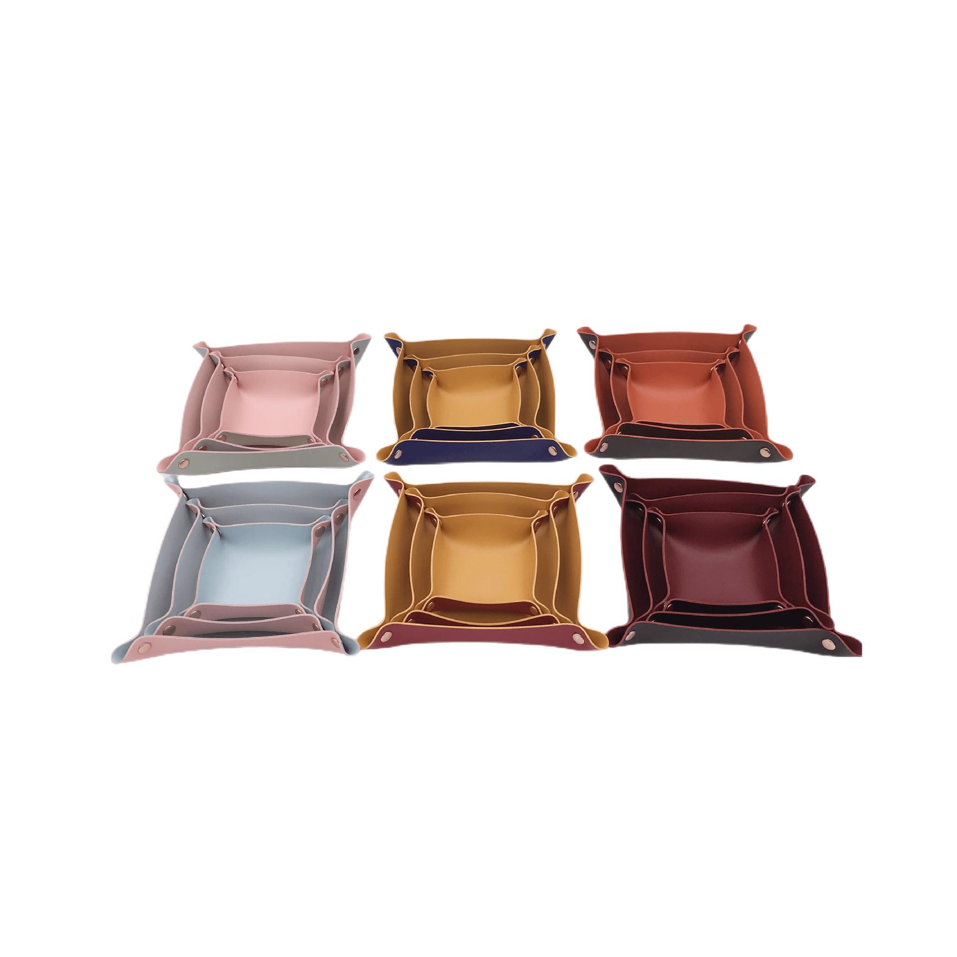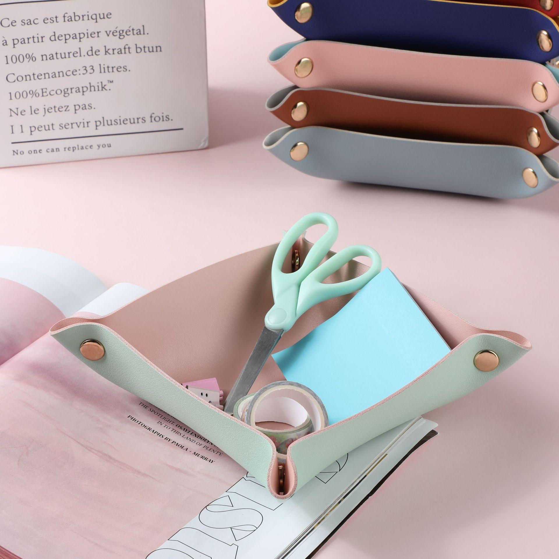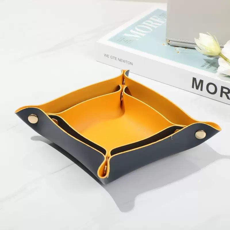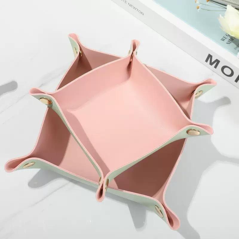 Caja de Almacenamiento de Cuero al por Mayor Bandeja de Almacenamiento de Escritorio Caja de Almacenamiento de Cuero para Joyería y Cosméticos Doble Plegado
