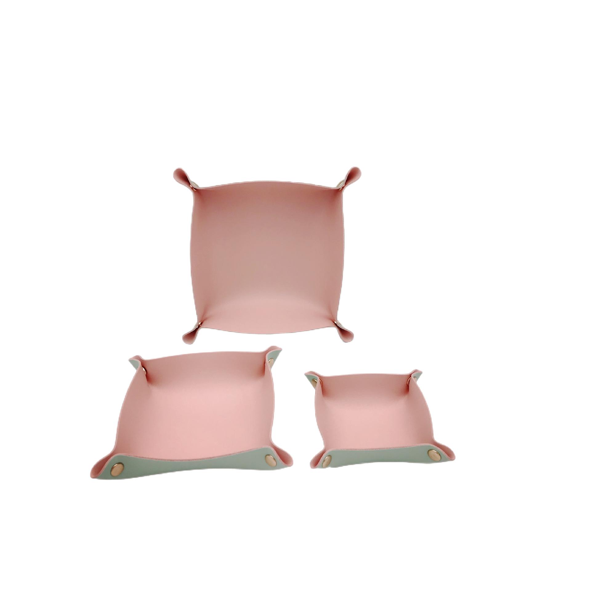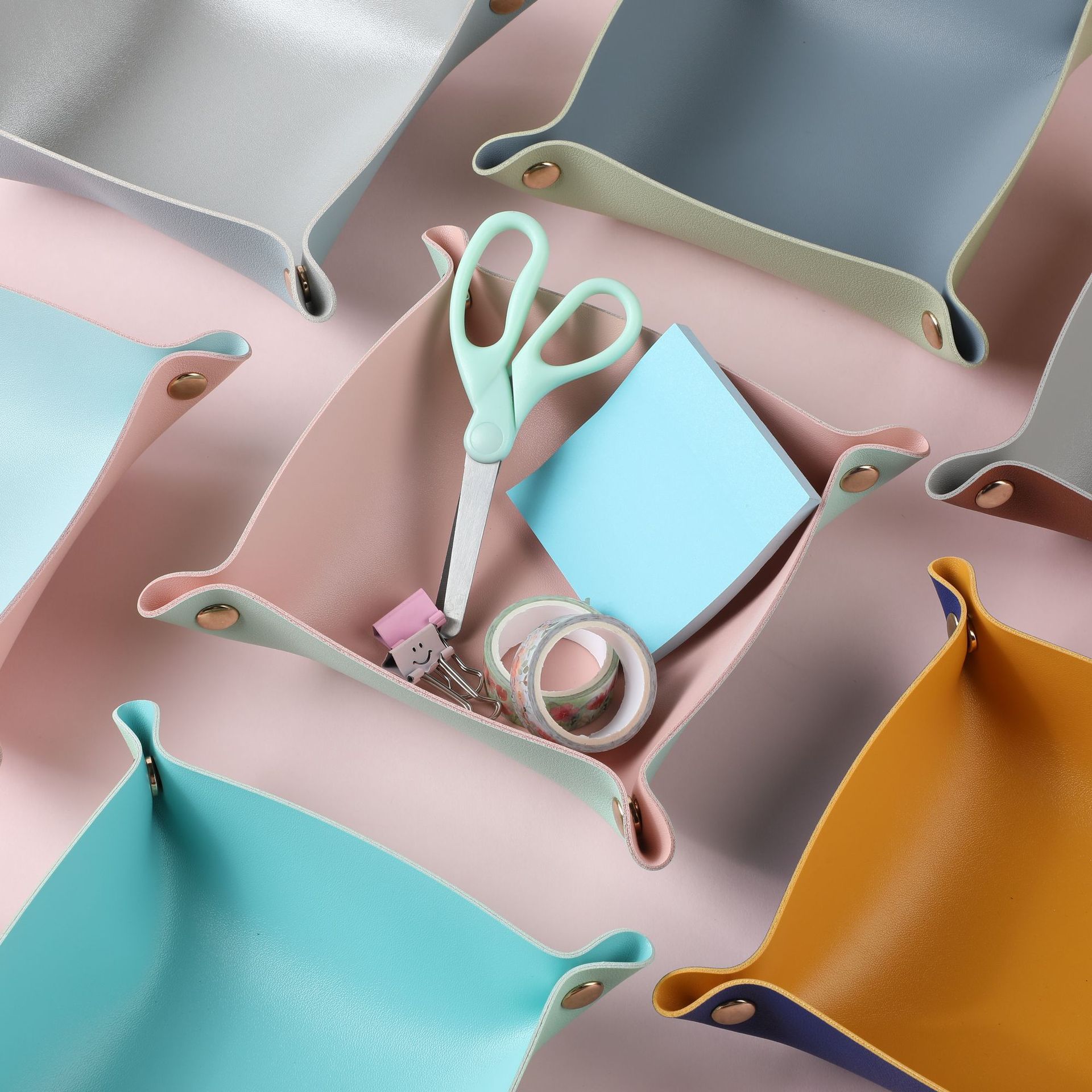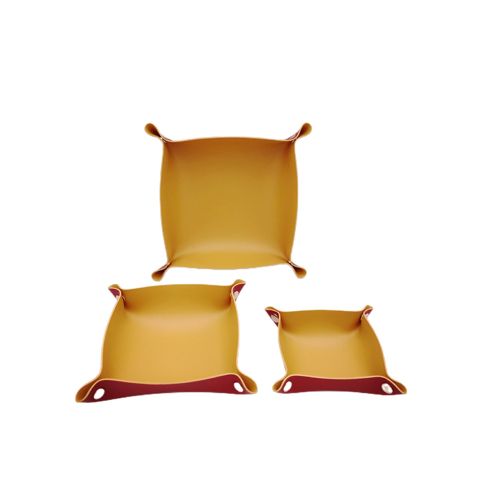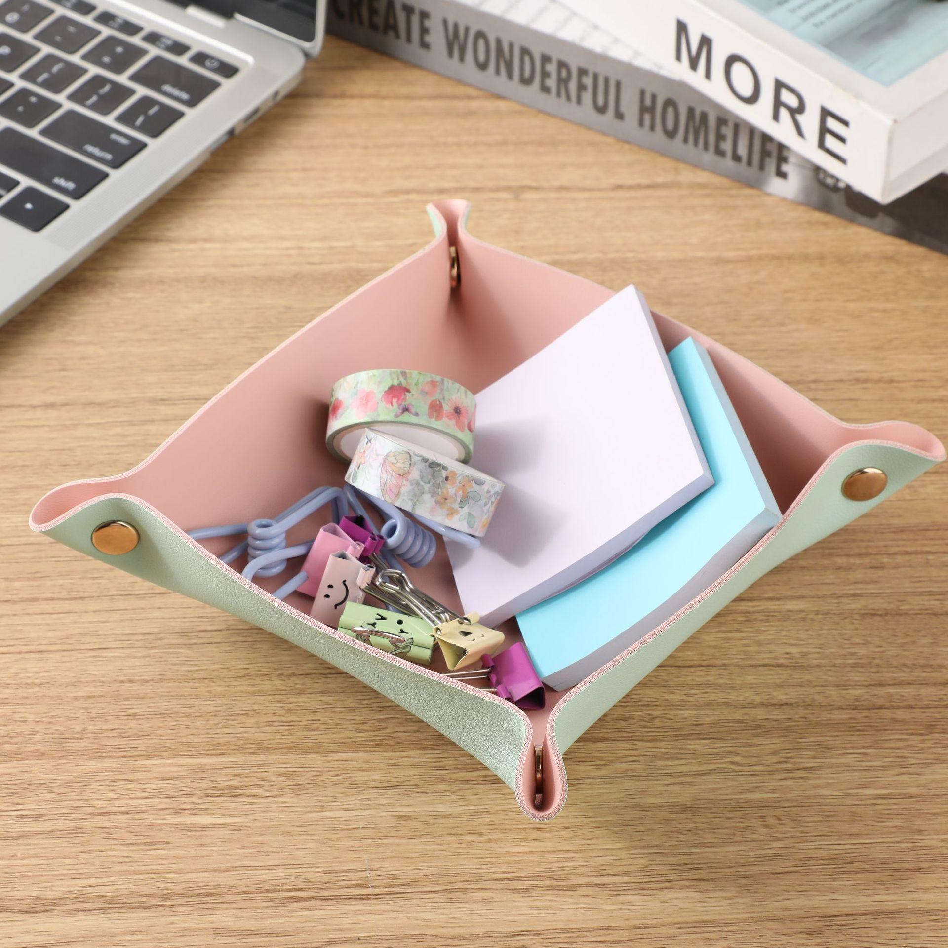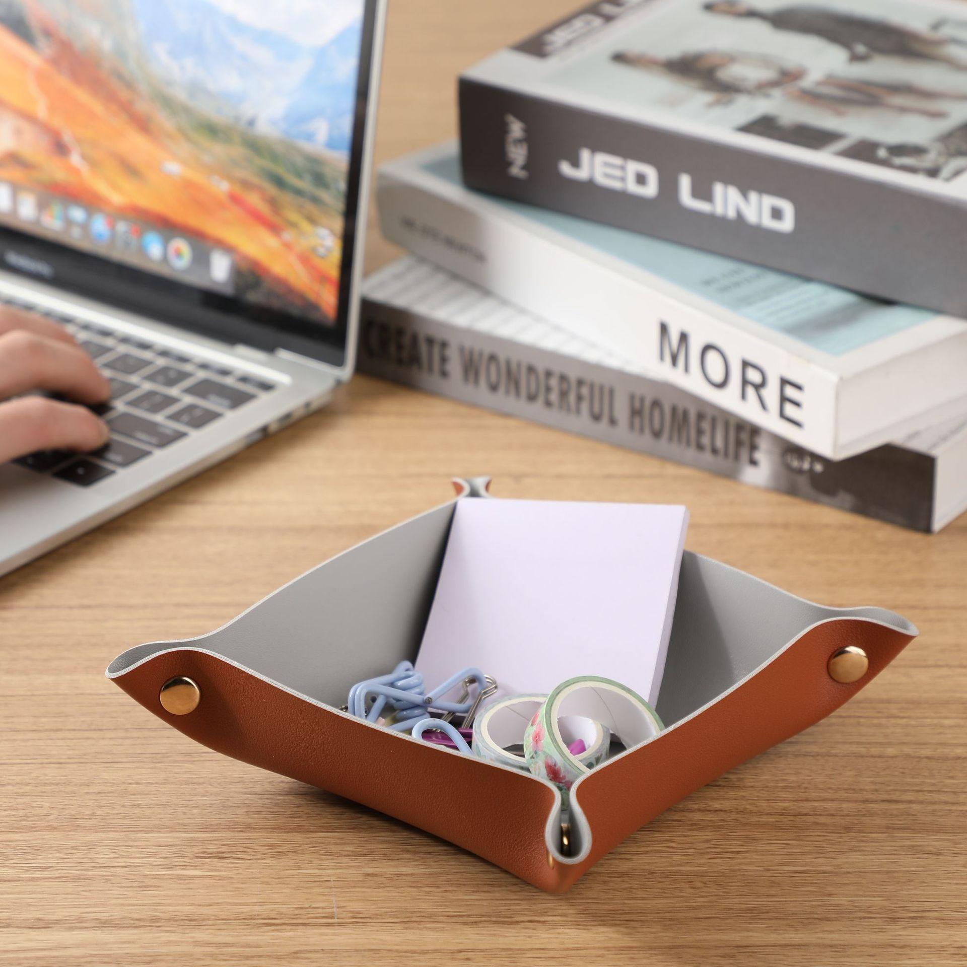 Caja de Almacenamiento de Cuero al por Mayor Bandeja de Almacenamiento de Escritorio Caja de Almacenamiento de Cuero para Joyería y Cosméticos Doble Plegado