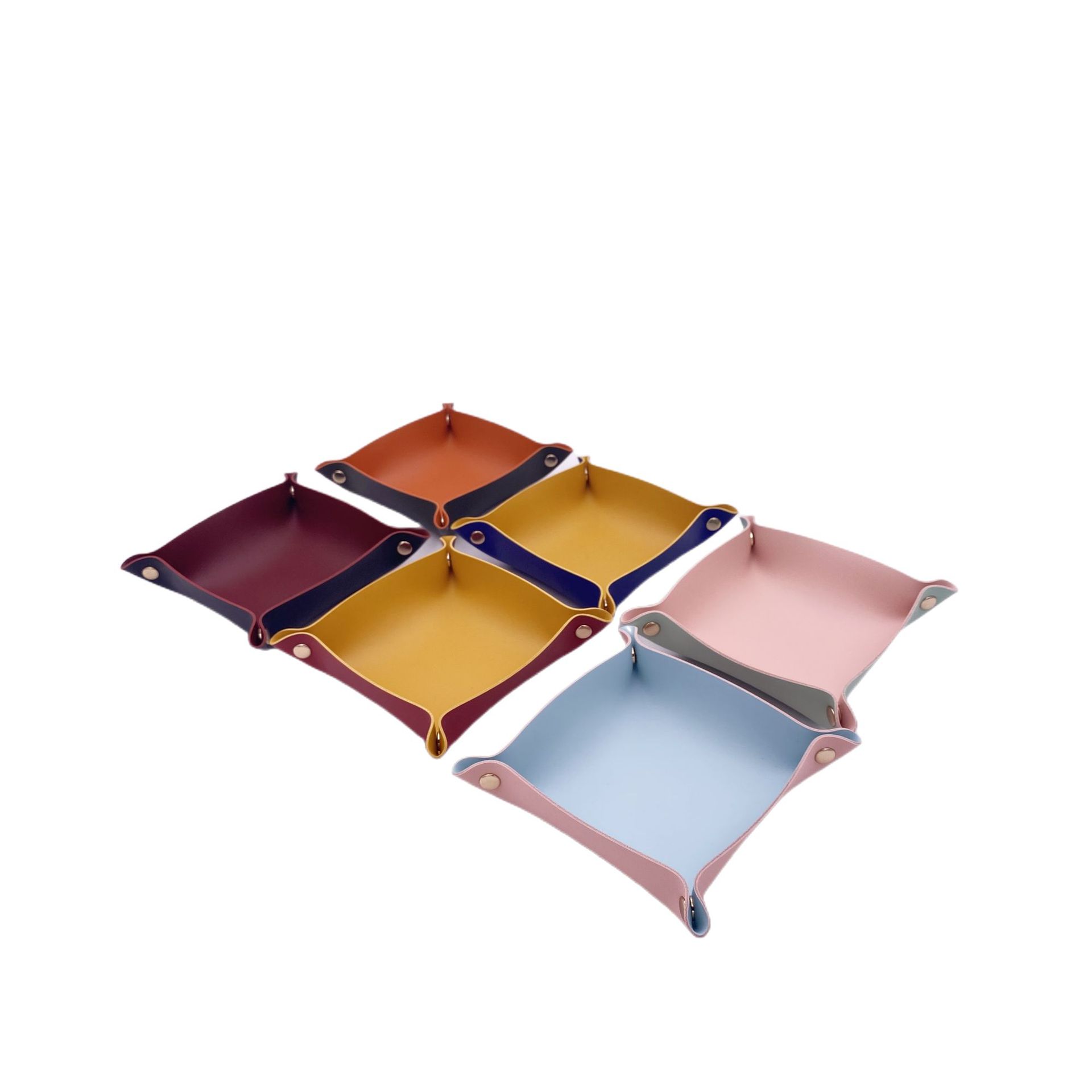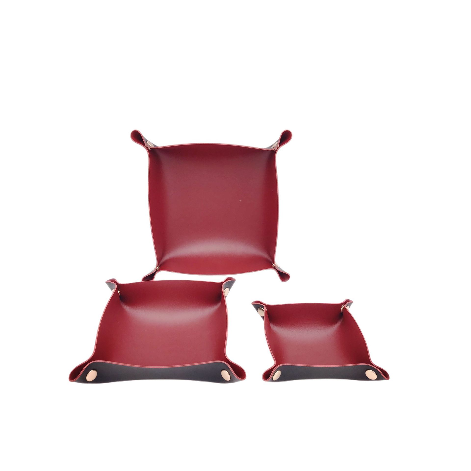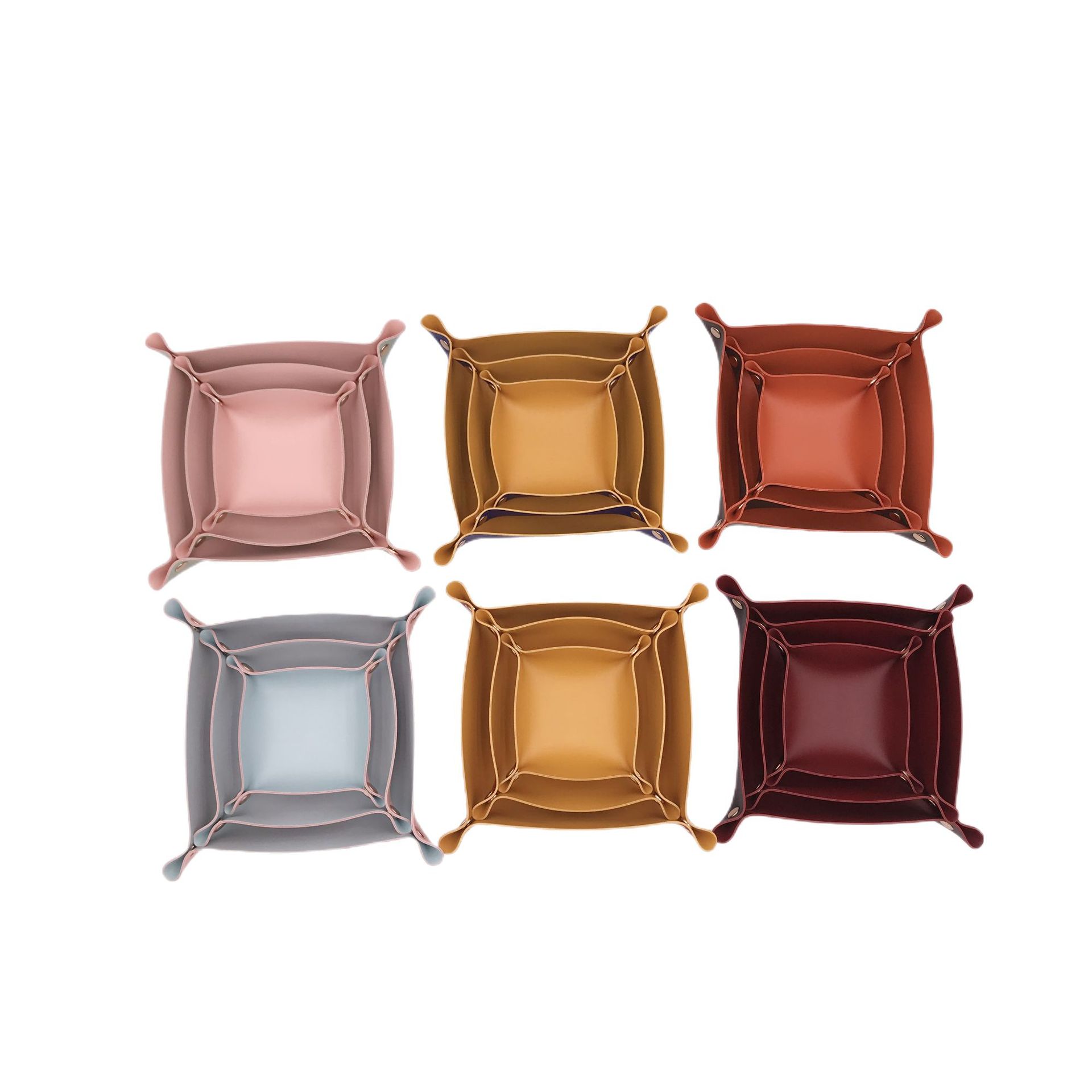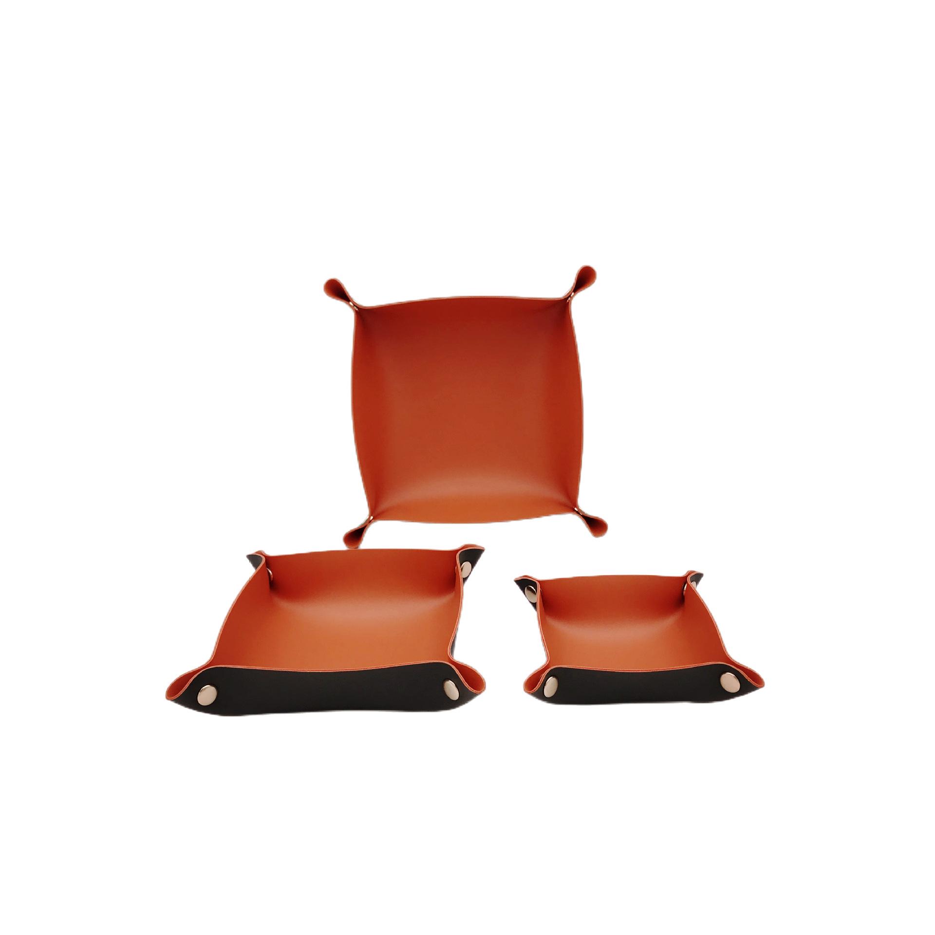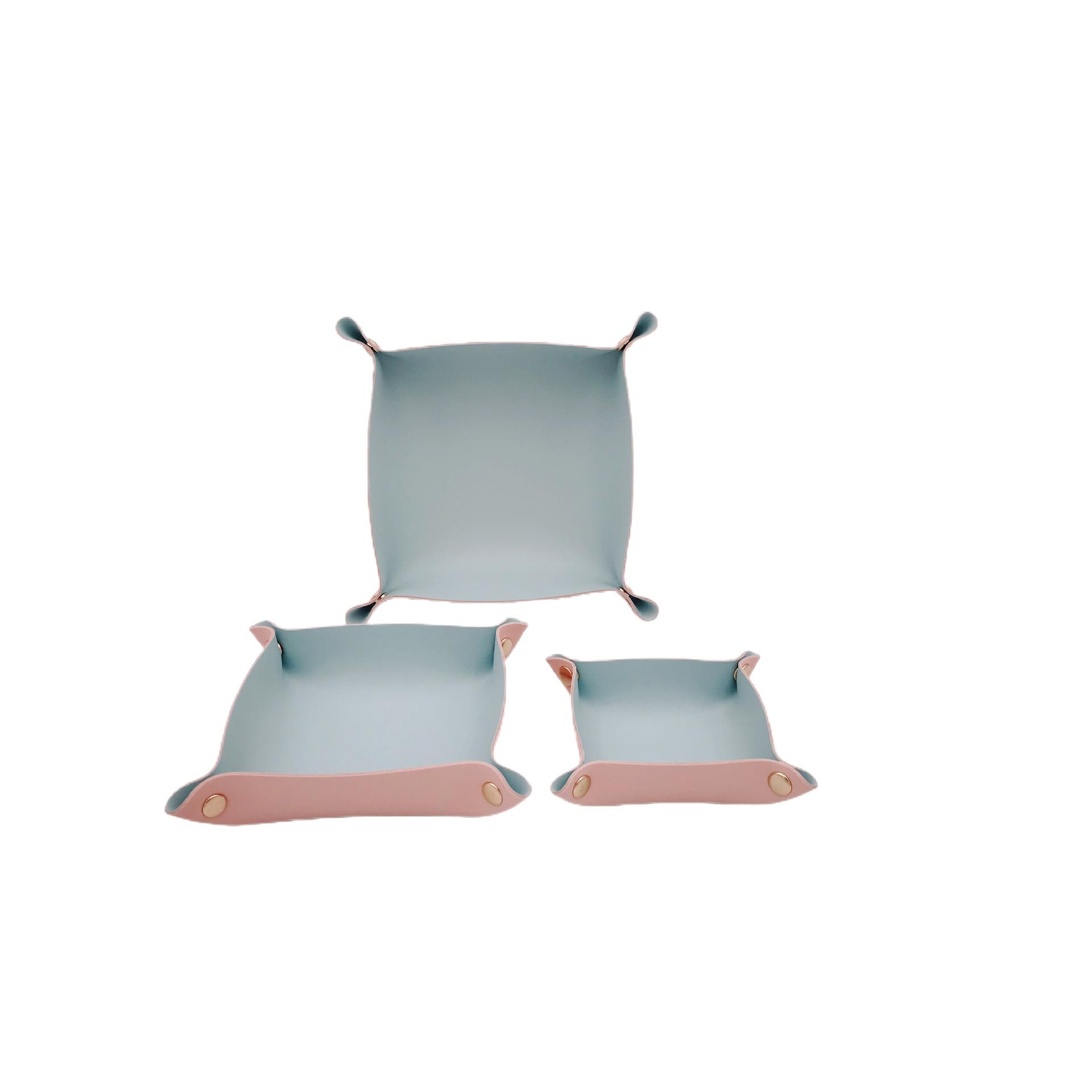 Caja de Almacenamiento de Cuero al por Mayor Bandeja de Almacenamiento de Escritorio Caja de Almacenamiento de Cuero para Joyería y Cosméticos Doble Plegado