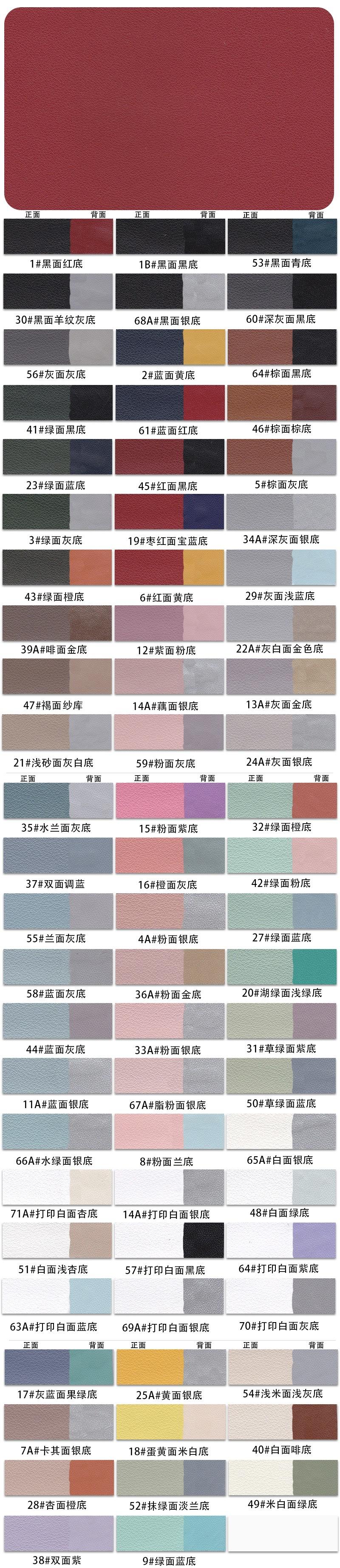 #1 maroon + black back, #2 orange + military green on the back, # 16 orange + back pink, #3 yellow + agate red...