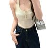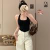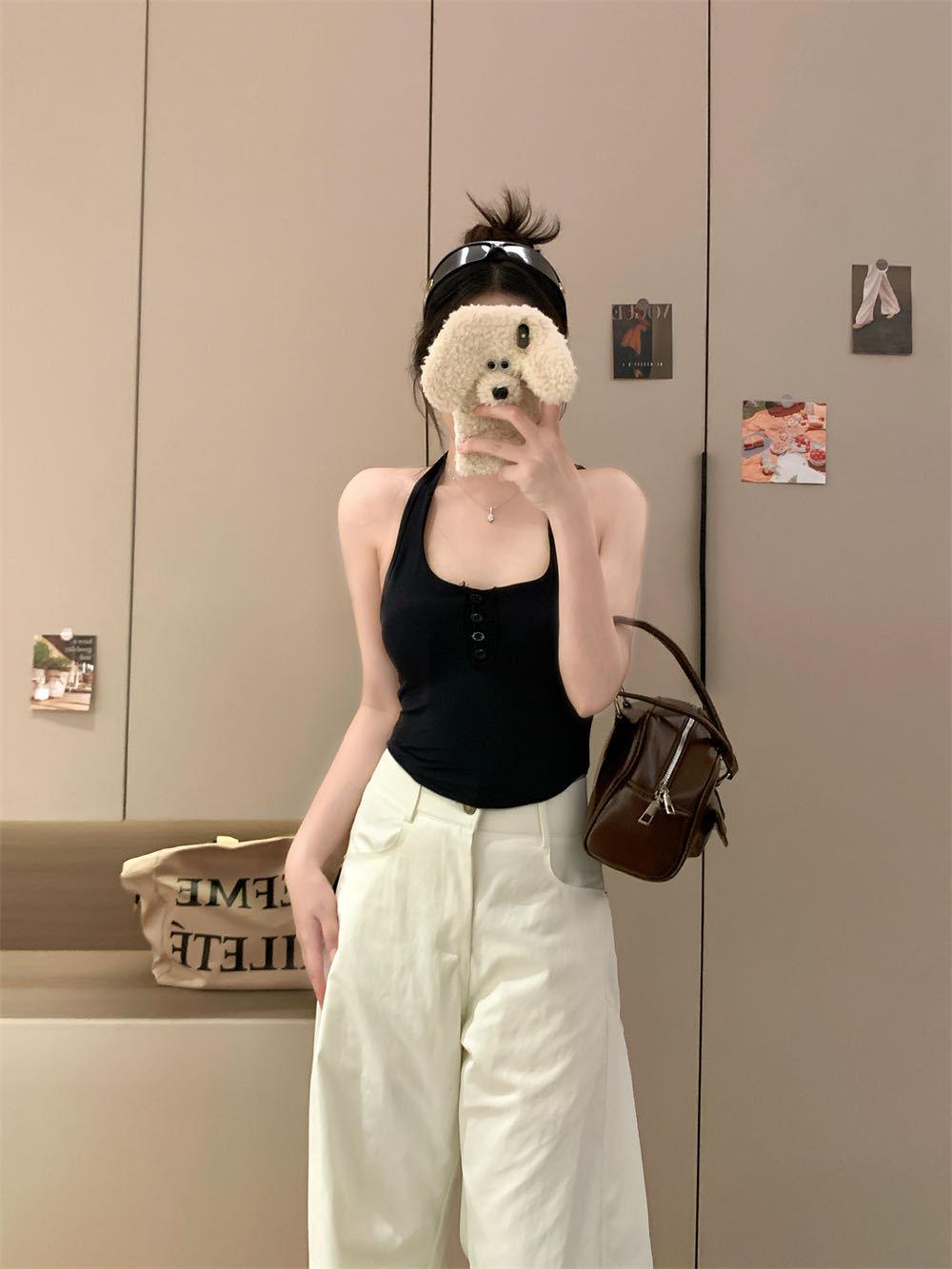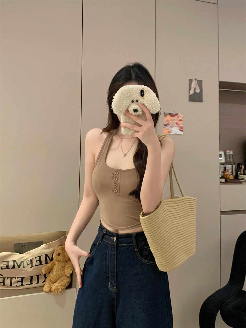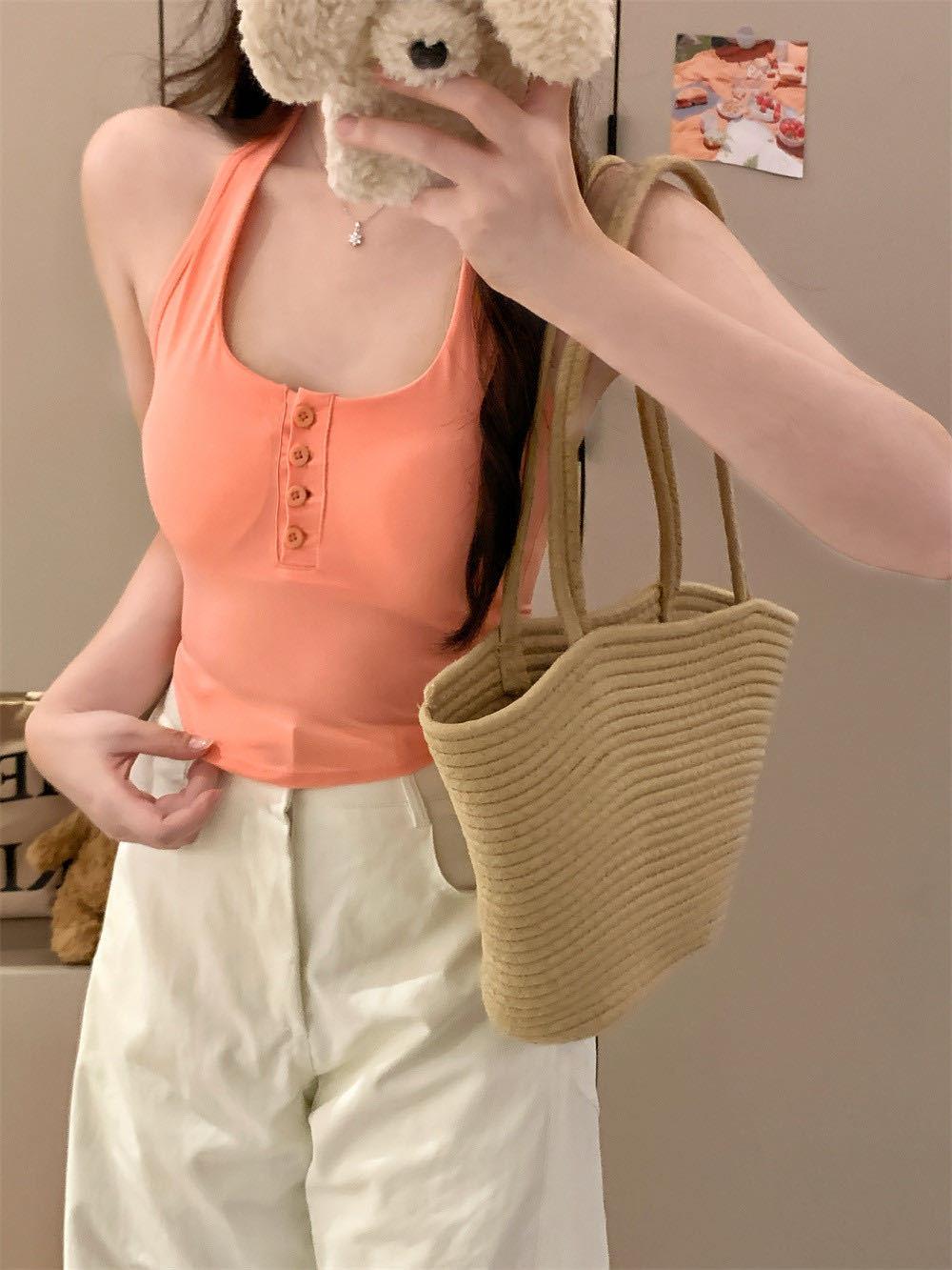 Verano Nuevo Sexy Top Halter de Tirantes Diseño de Botones Chaleco Mujeres Adelgazante Ropa Exterior con Almohadilla en el Pecho Top