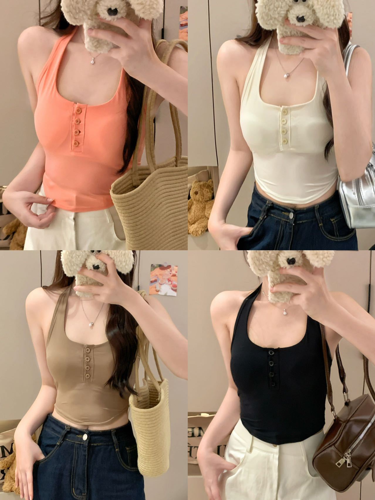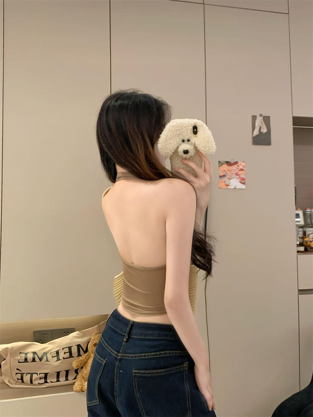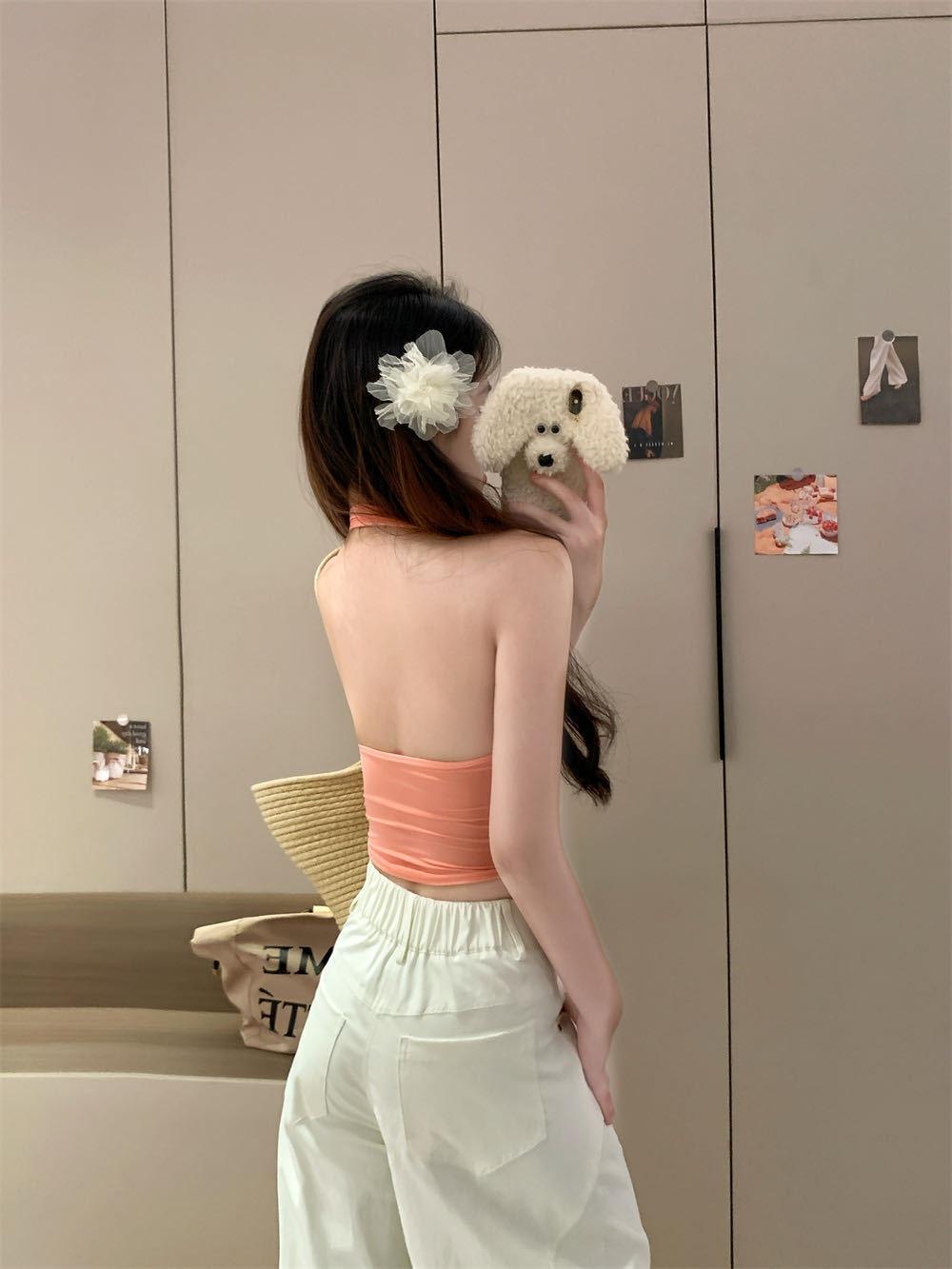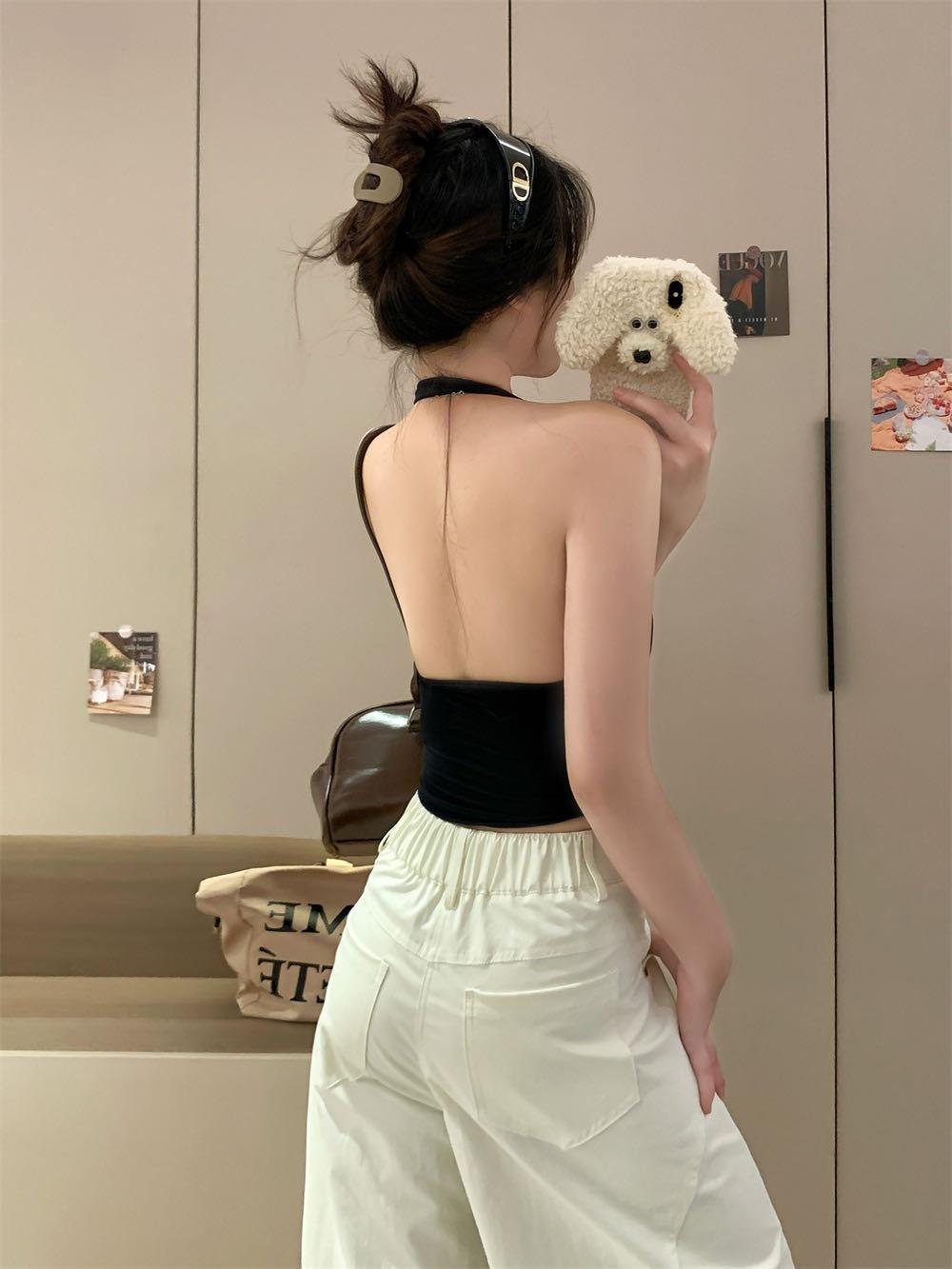 Verano Nuevo Sexy Top Halter de Tirantes Diseño de Botones Chaleco Mujeres Adelgazante Ropa Exterior con Almohadilla en el Pecho Top