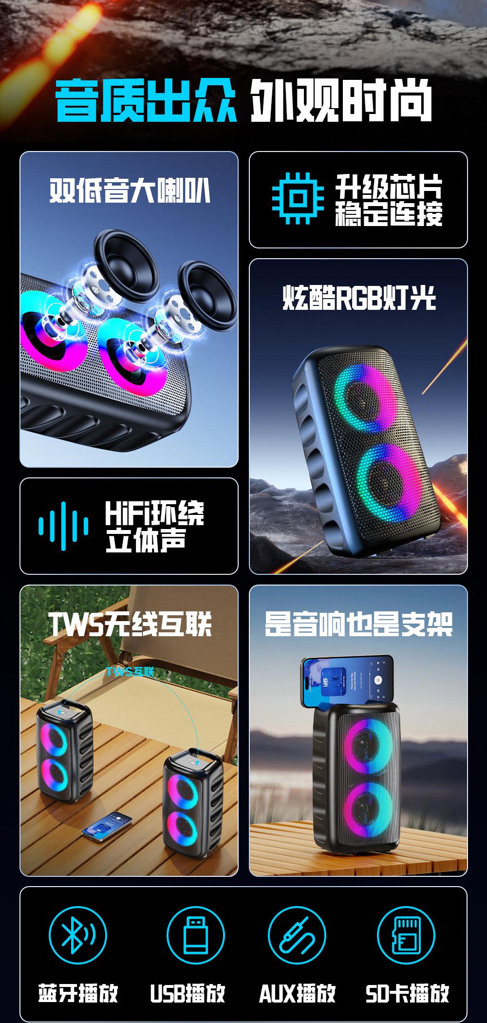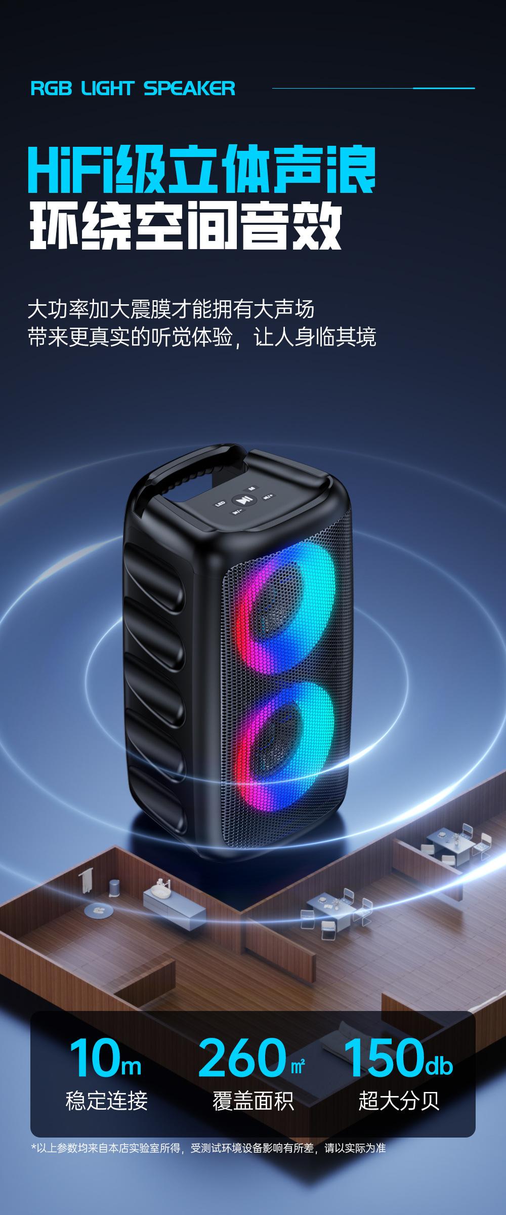 Producto Popular Transfronterizo Altavoz Bluetooth Colorido Tarjeta Insertable Micrófono Exterior Altavoz para Baile Cuadrado Nuevo Altavoz Bluetooth 2025