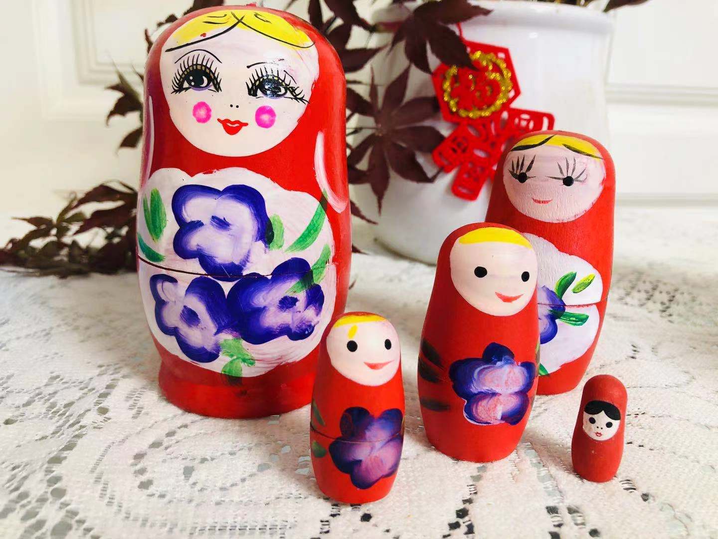 Matrioshka rusa de cinco pisos atracciones turísticas puesto de suministro pintura pintada a mano artesanías de madera adornos
