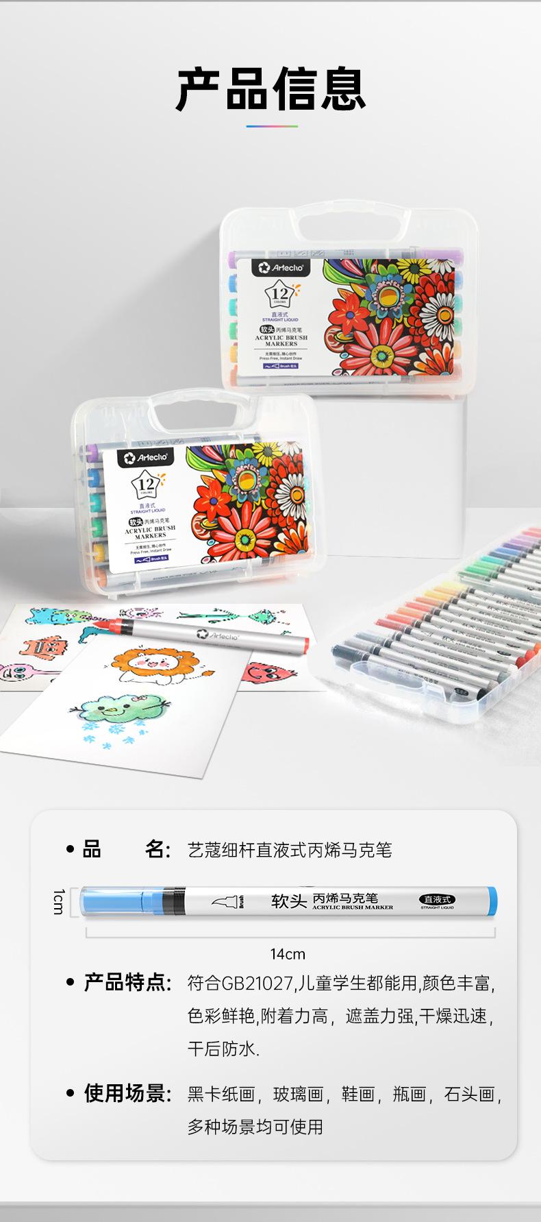 12-color straight liquid acrylic markers, 24-color liquid acrylic markers, 36-color straight liquid acrylic ma...