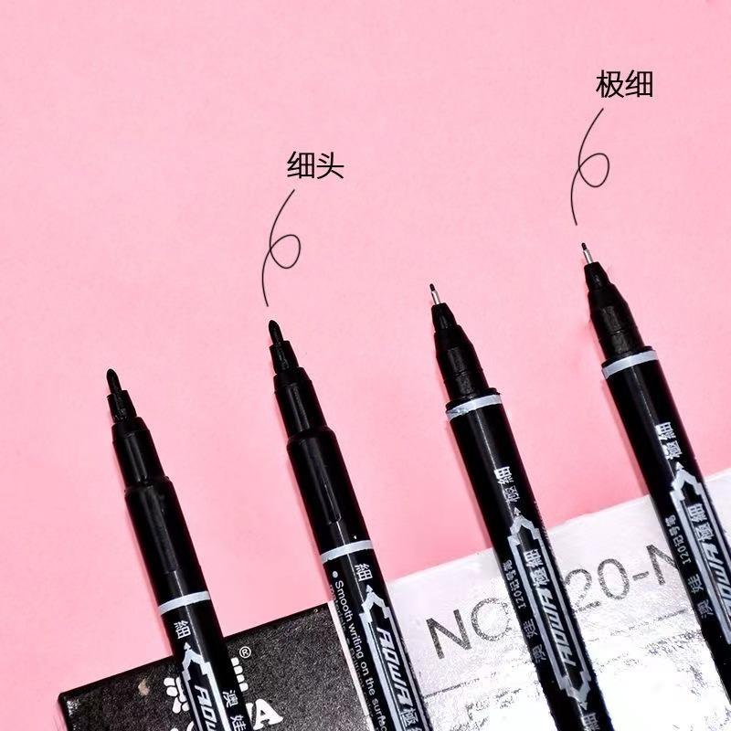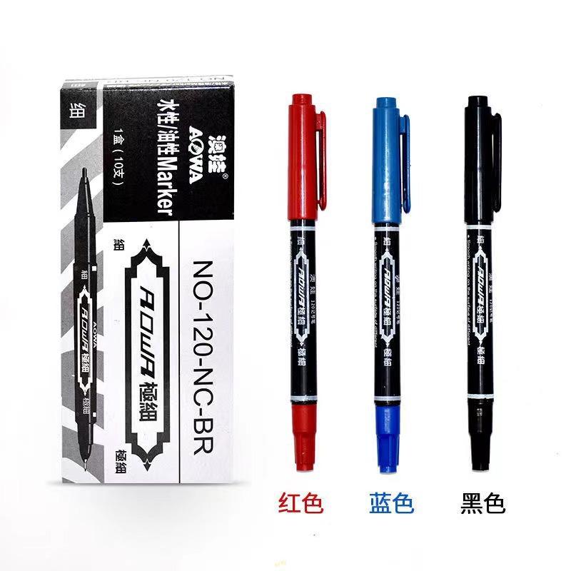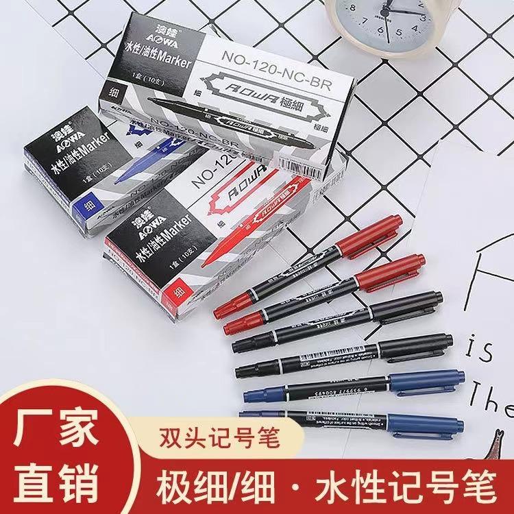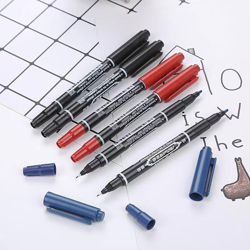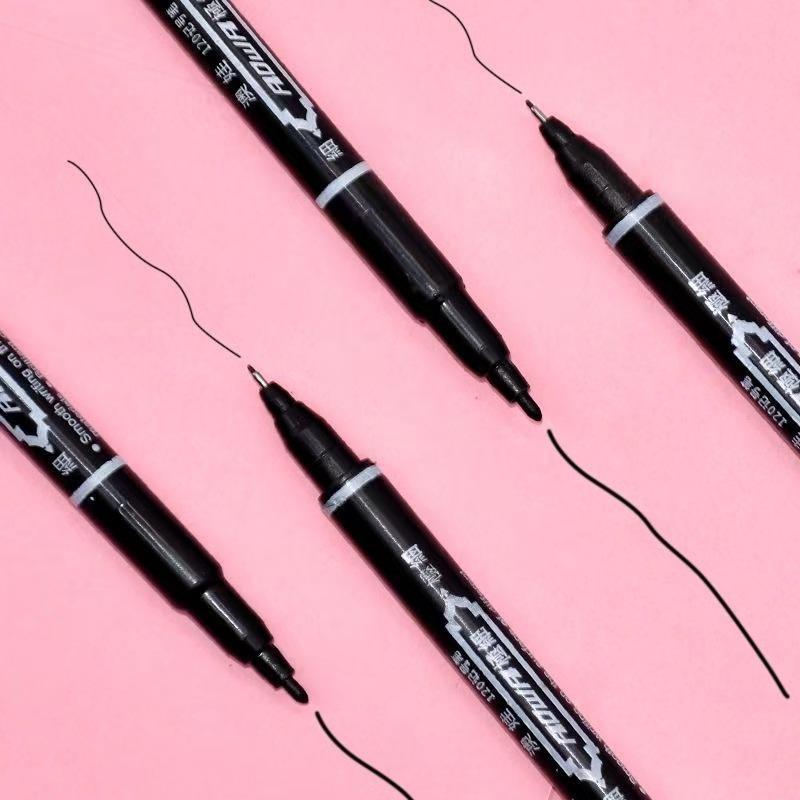 Aowa Marcador pequeño de doble punta a base de aceite Tres colores opcionales Marcador negro Pluma de gancho para trazos de pintura para niños Doble punta