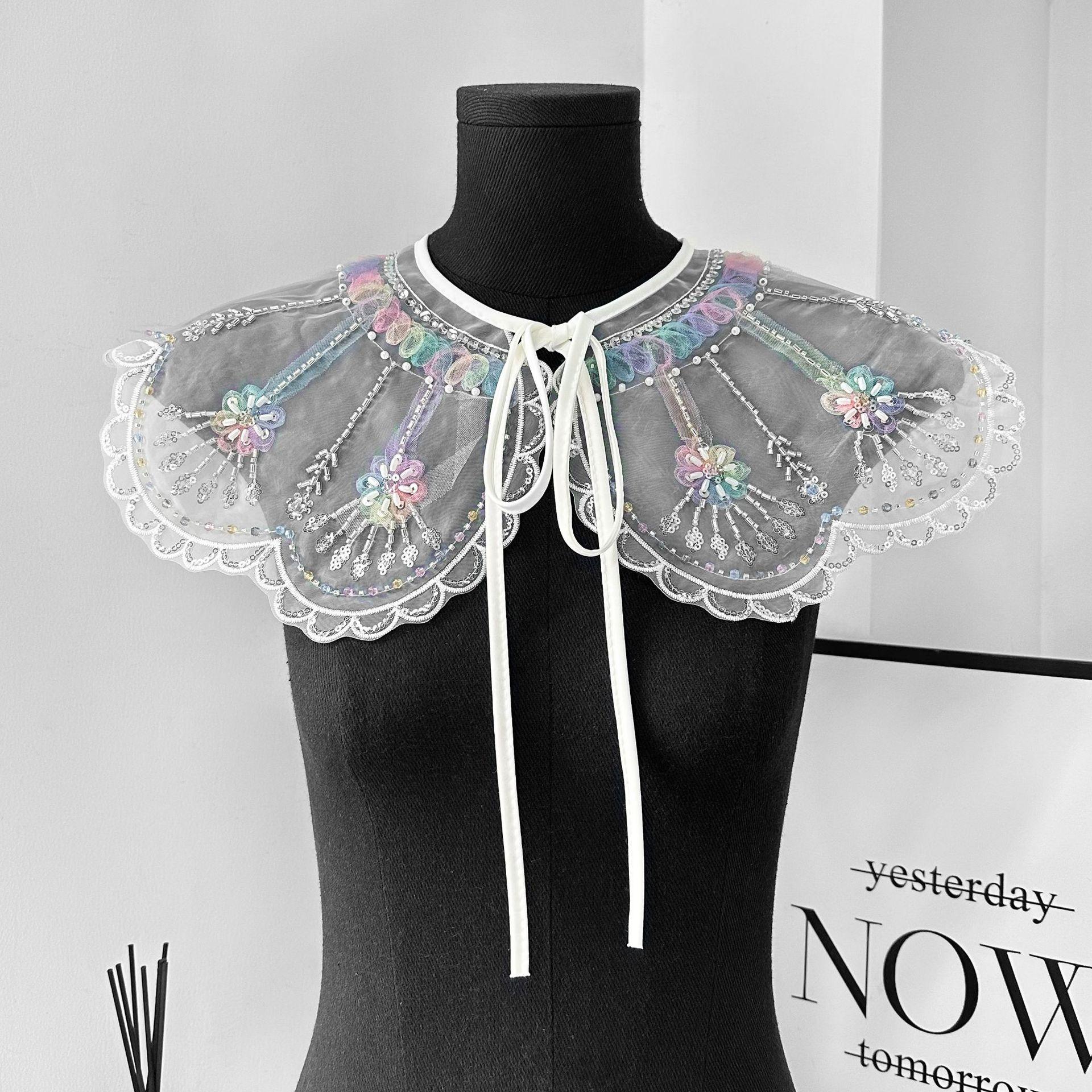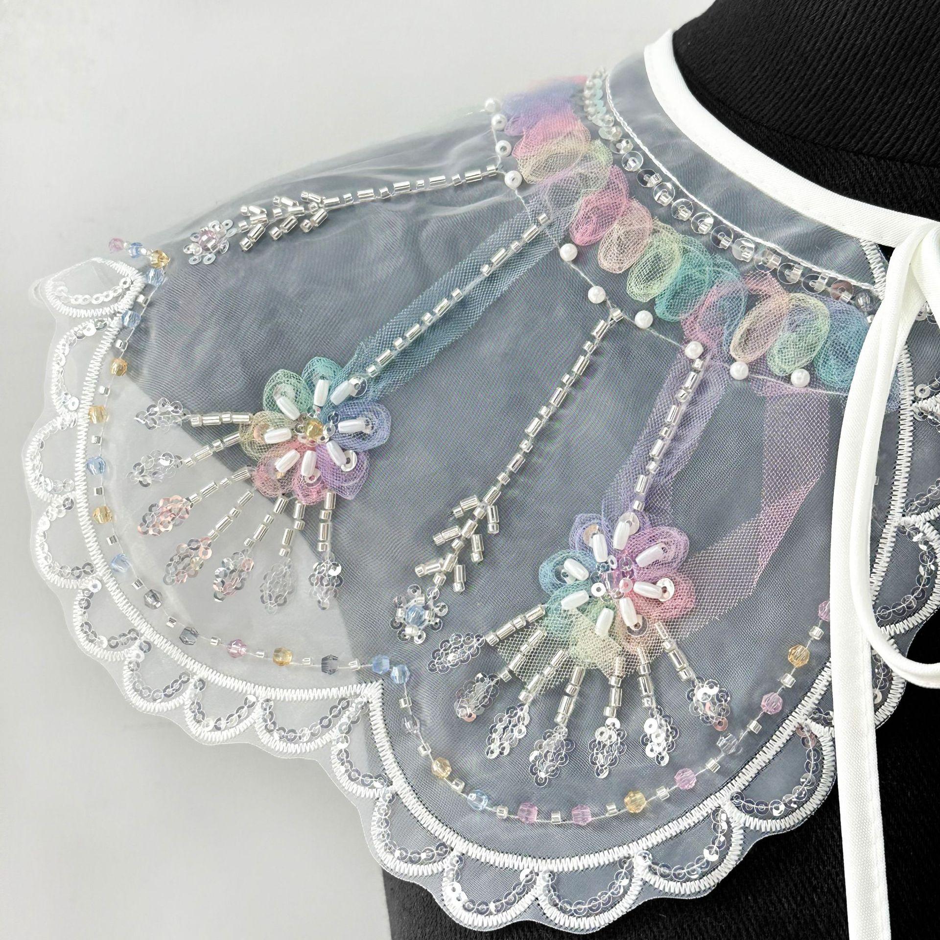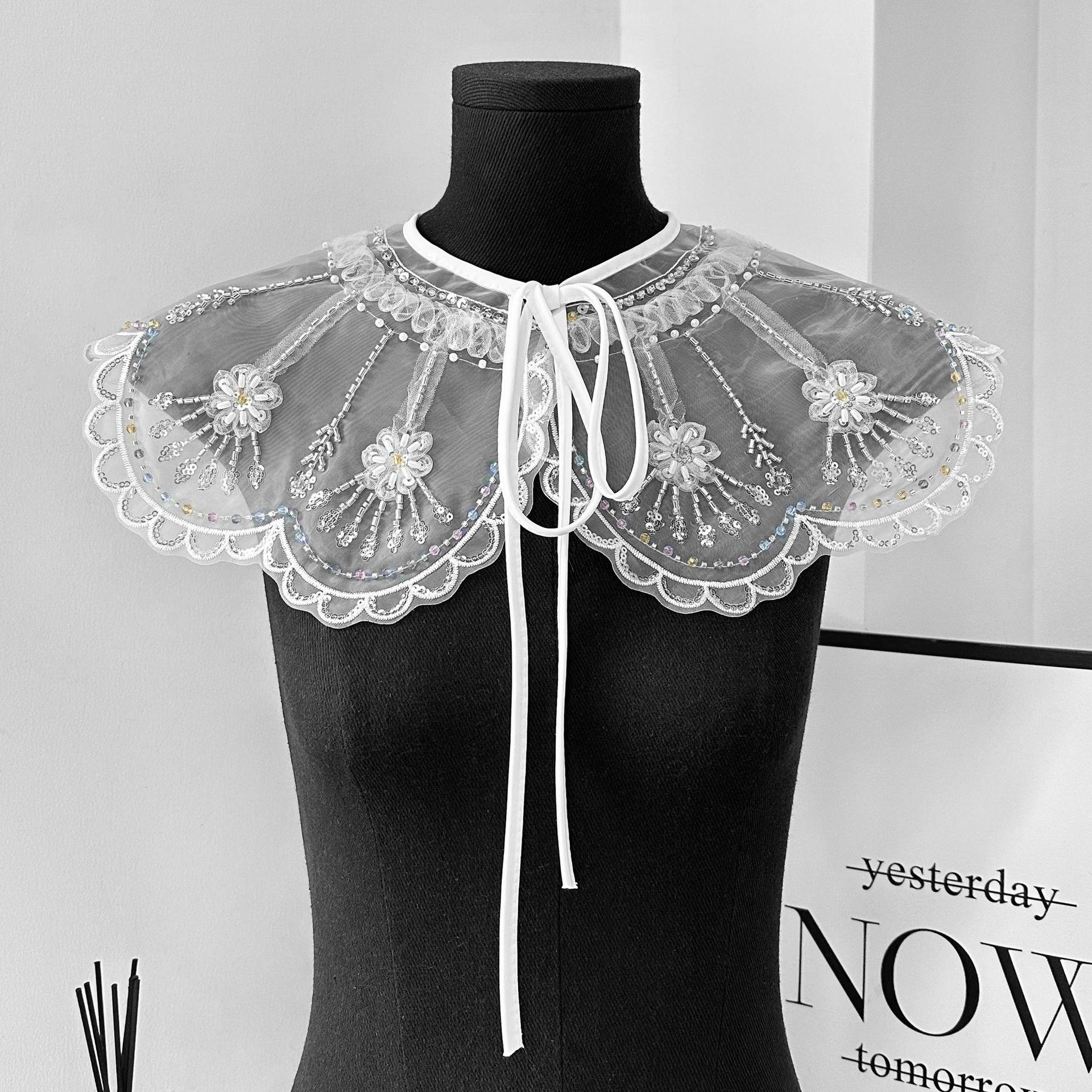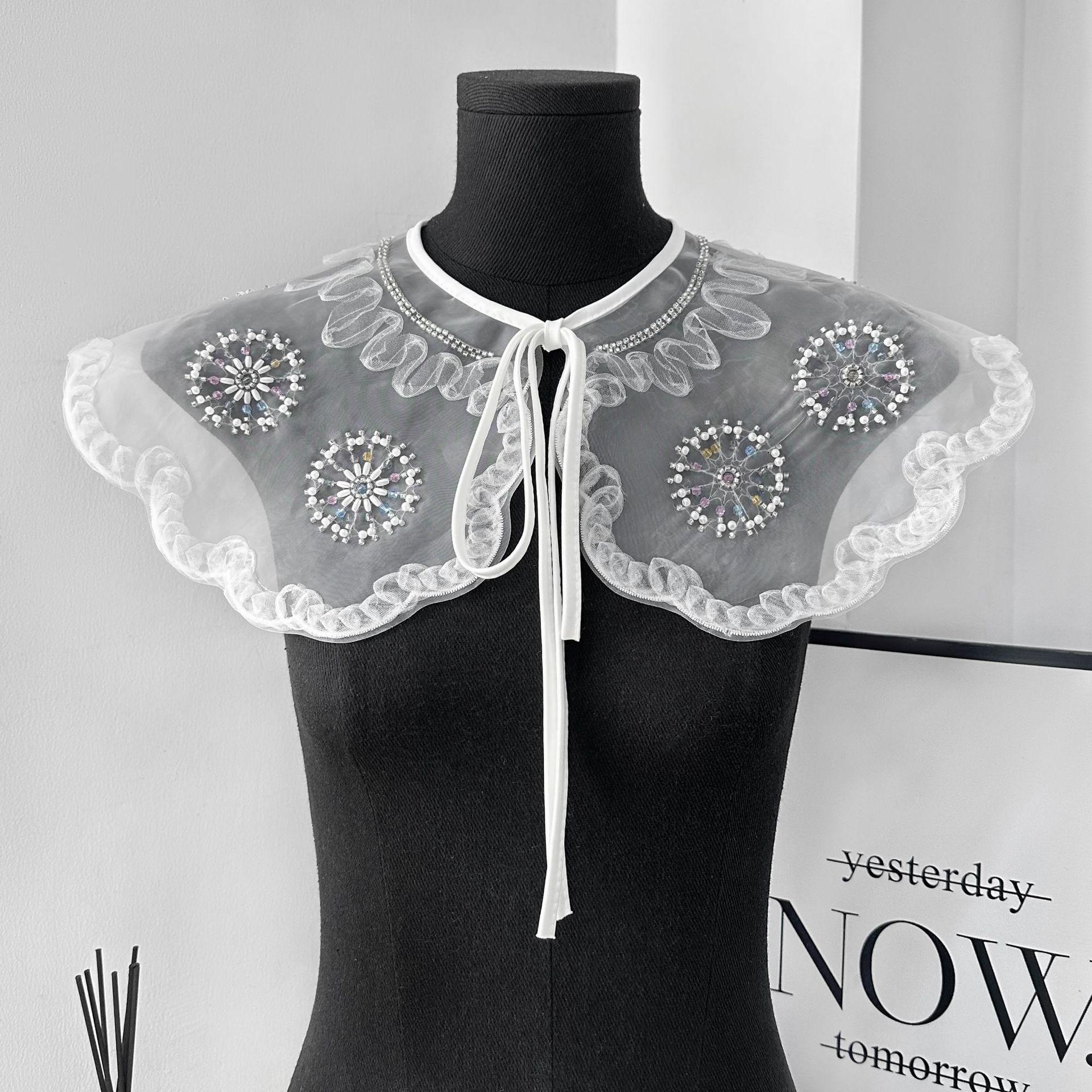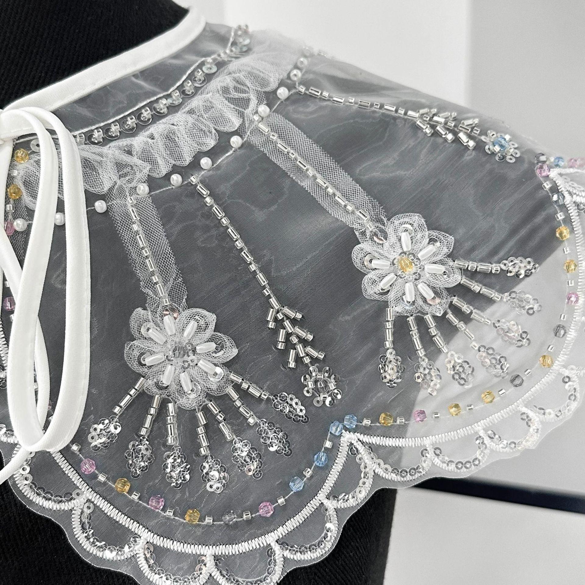 Cuello falso de organza de alta resistencia bordado con cuentas de gran venta transfronterizo con flor de cuello versátil para camisa o vestido