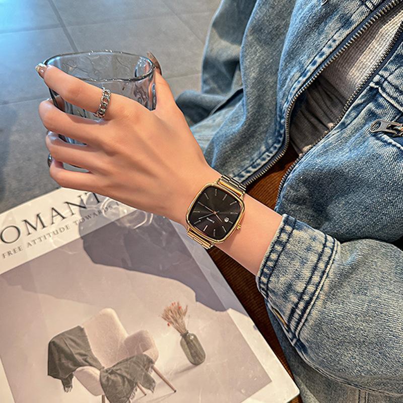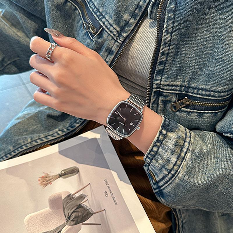 Reloj de Cuarzo Mecánico No Automático Popular para Parejas Transfronterizas Cuadrado Calendario Simple Resistente al Agua para la Vida Reloj de Hombre al por Mayor