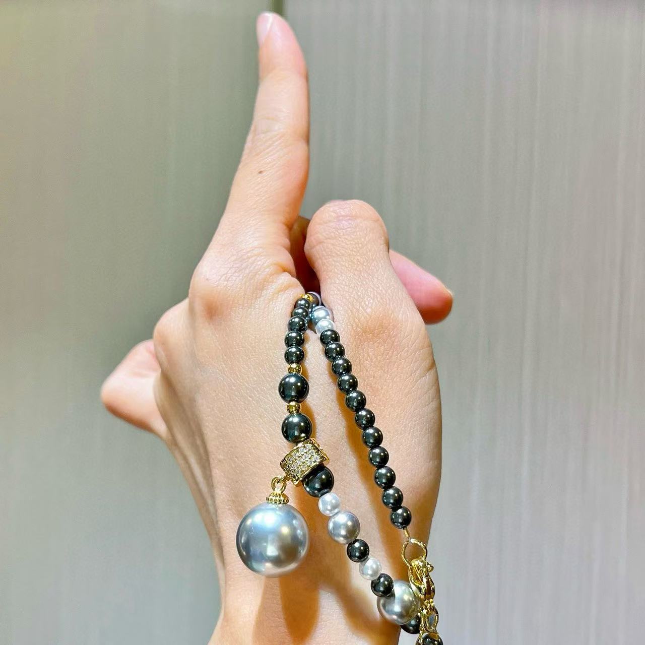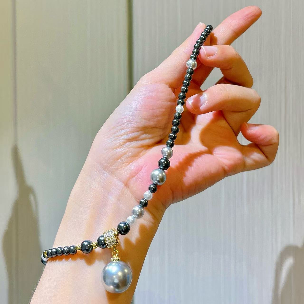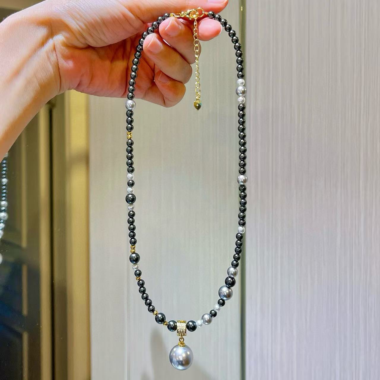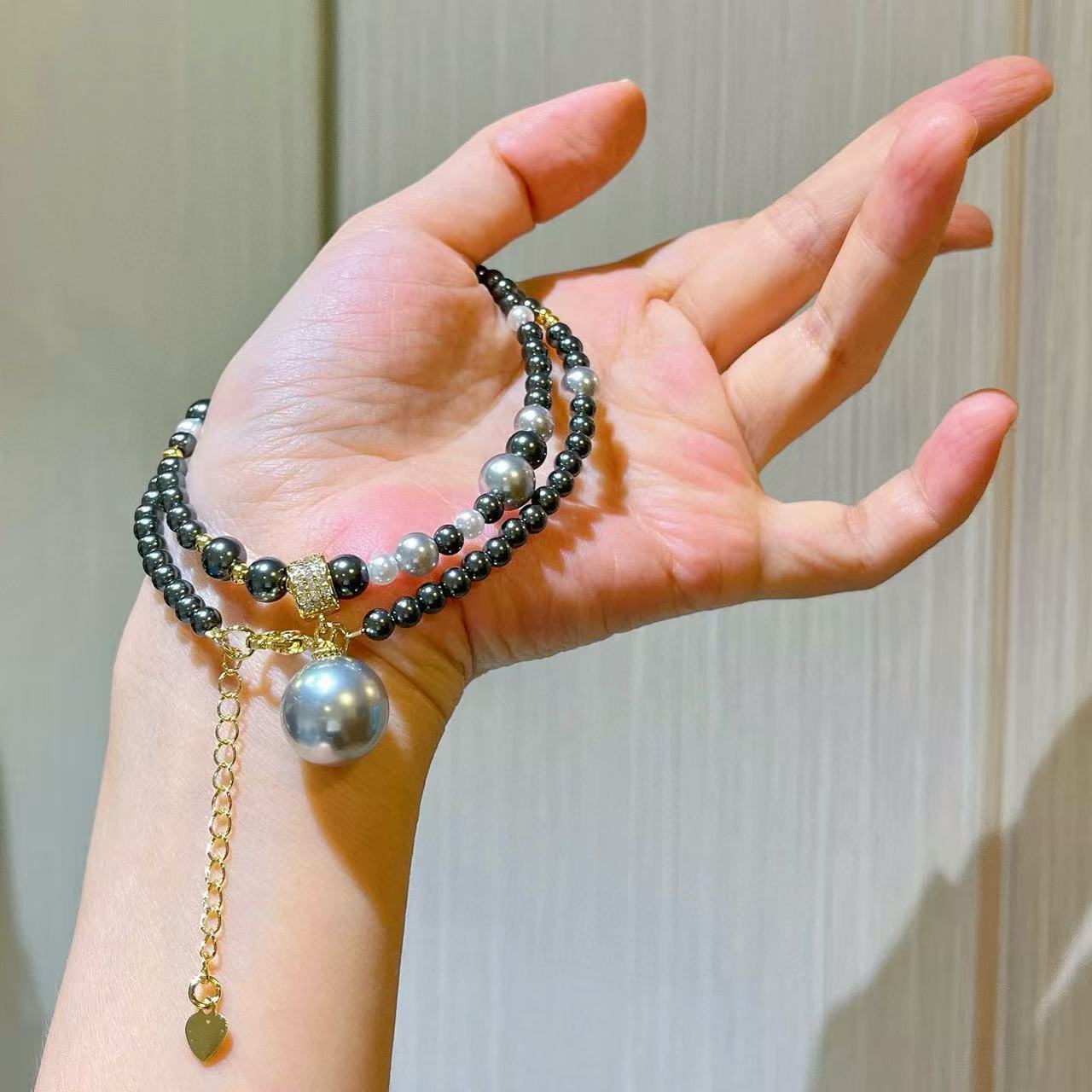 Collar de Perlas de Cristal Tahitiano de Imitación Gris Negro Noble Cadena Clavícula Colgante