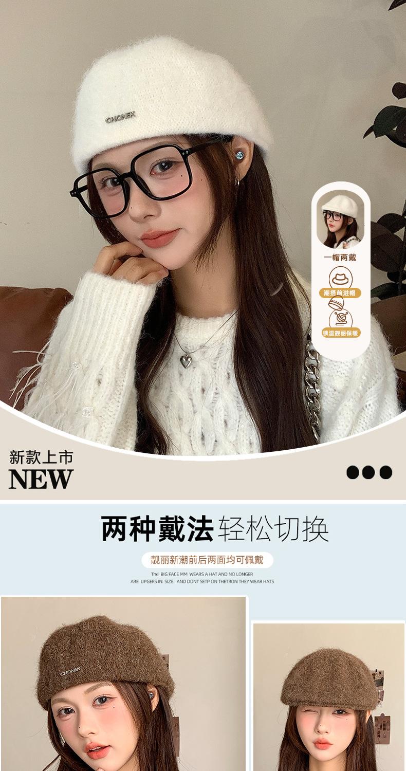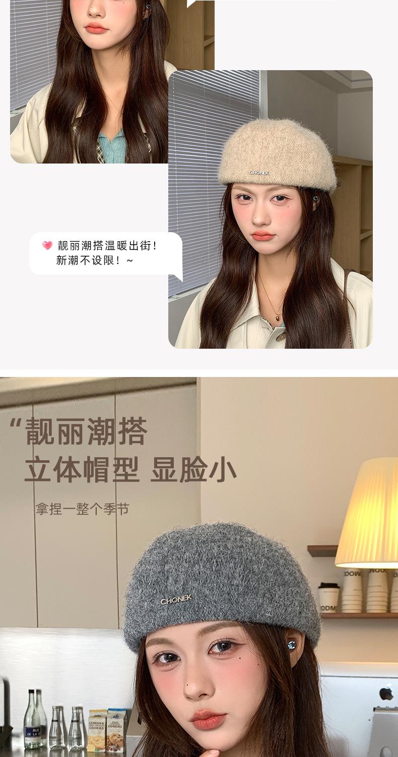 Nueva Boina de Felpa de Otoño e Invierno Gorra Hacia Adelante Un Sombrero Múltiples Usos Calidez Simple Versátil Sombrero de Pintor Hace la Cara Más Pequeña Boina