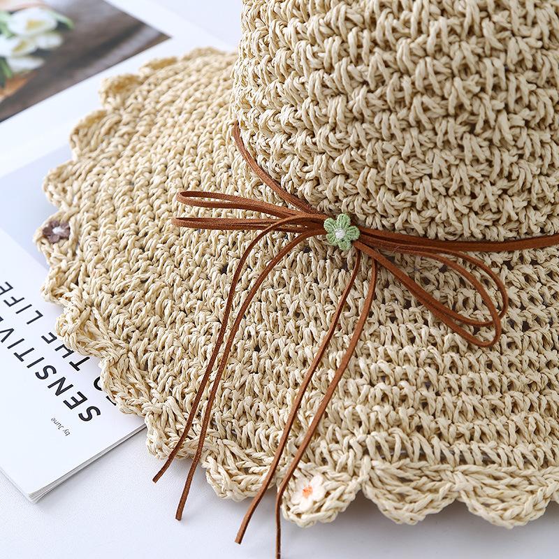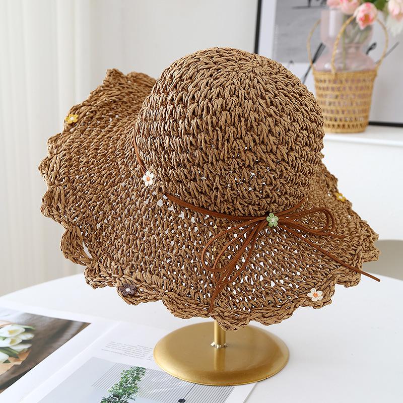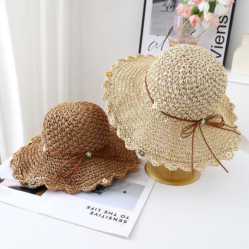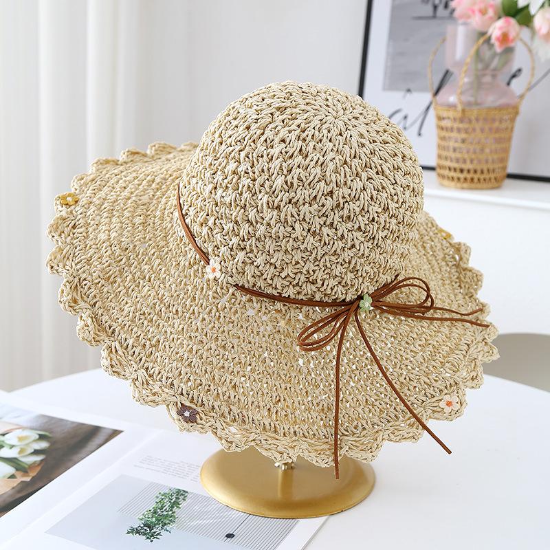 Sombrero de Paja con Lazo para Mujer Verano Pequeño Fresco Plegable Sombrero de Playa Sombrero de Playa Sombrero para el Sol Protección Solar para Mujer