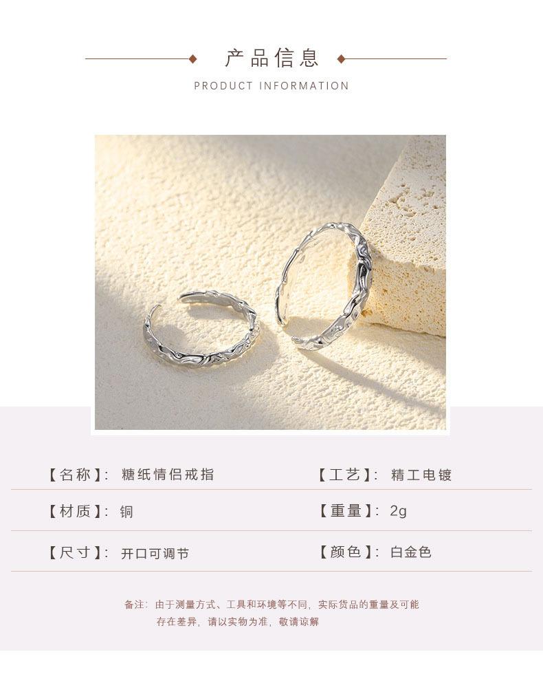 Anillo de pareja Runxin Mobius, un par de anillos abiertos de plata chapada en cobre con cuerda retorcida, simples y versátiles.