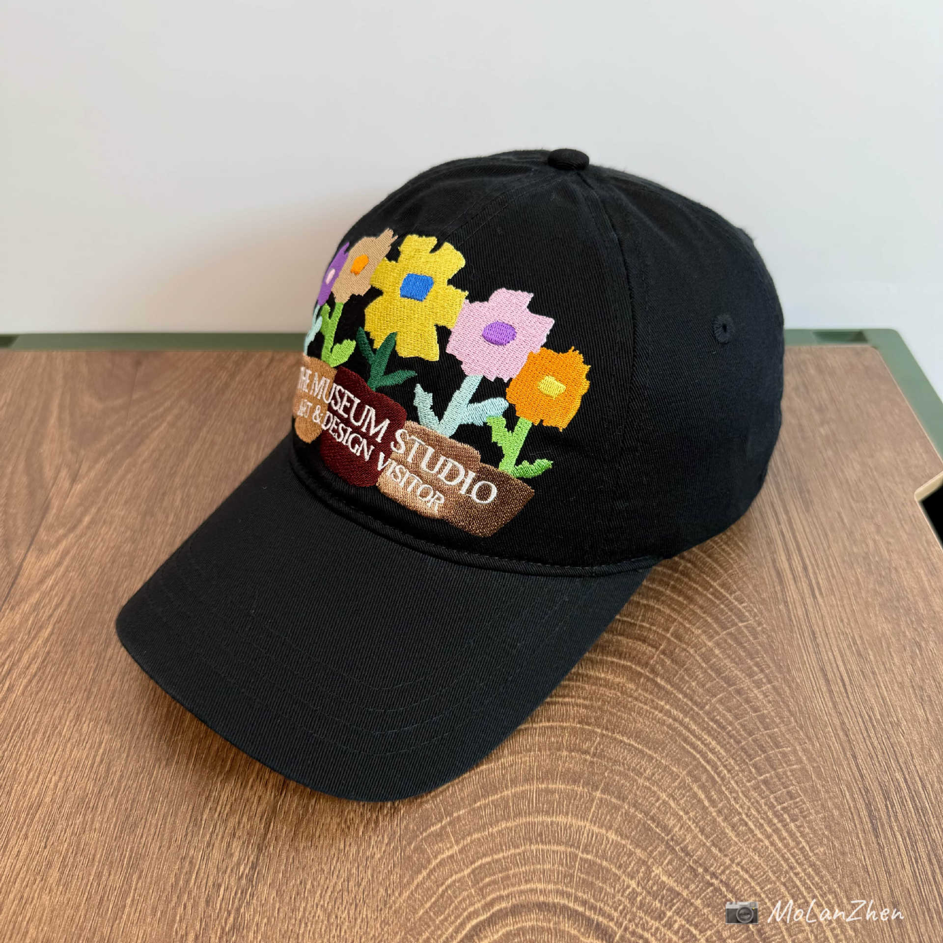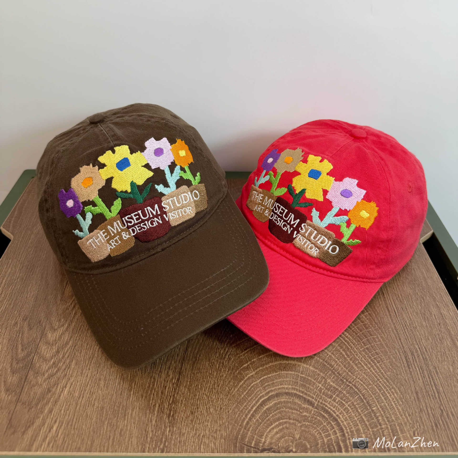 Corea del Sur Diseñador Nicho Gorra de Béisbol Bordada con Flores de Cinco Macetas para Mujer Gorra Trendy de Copa Suave para Calle y Exterior con Protección Solar
