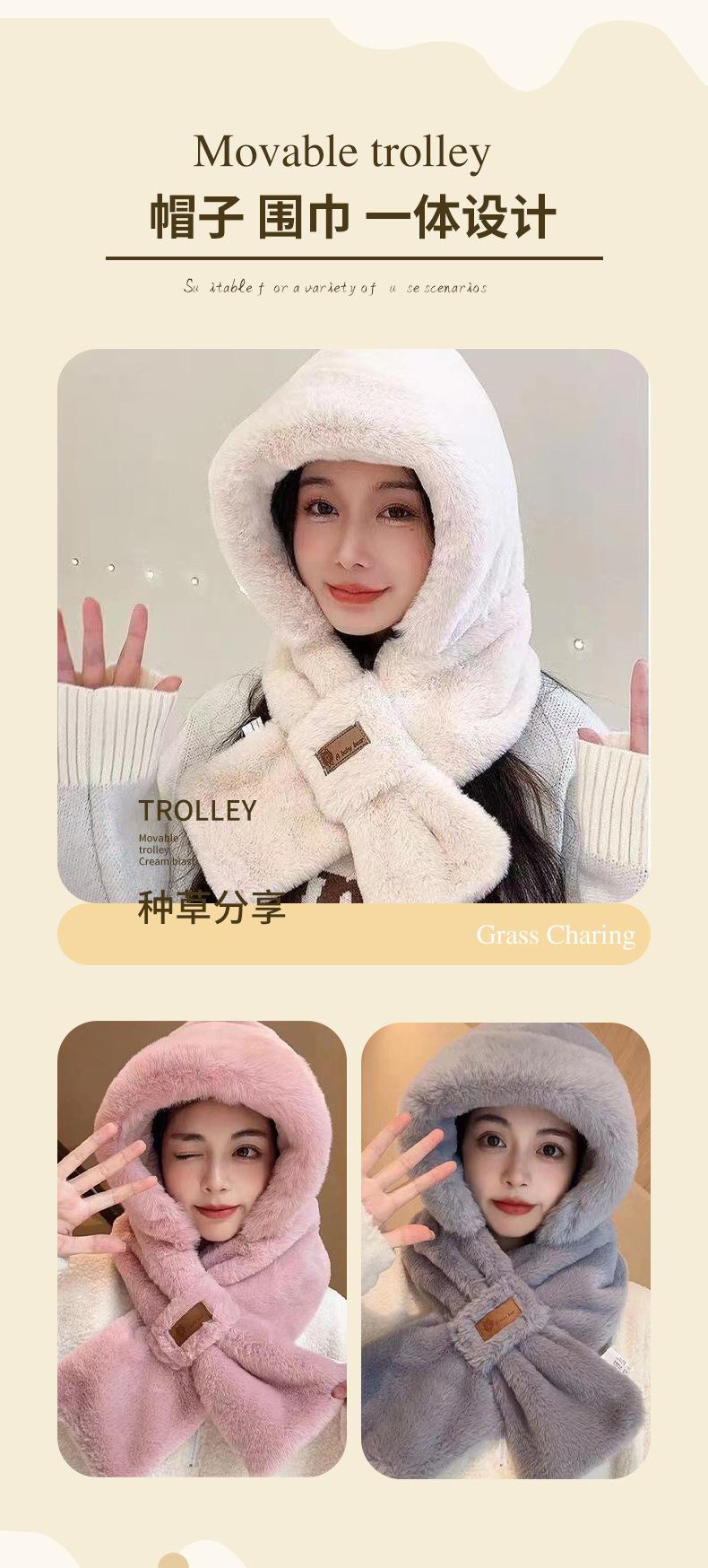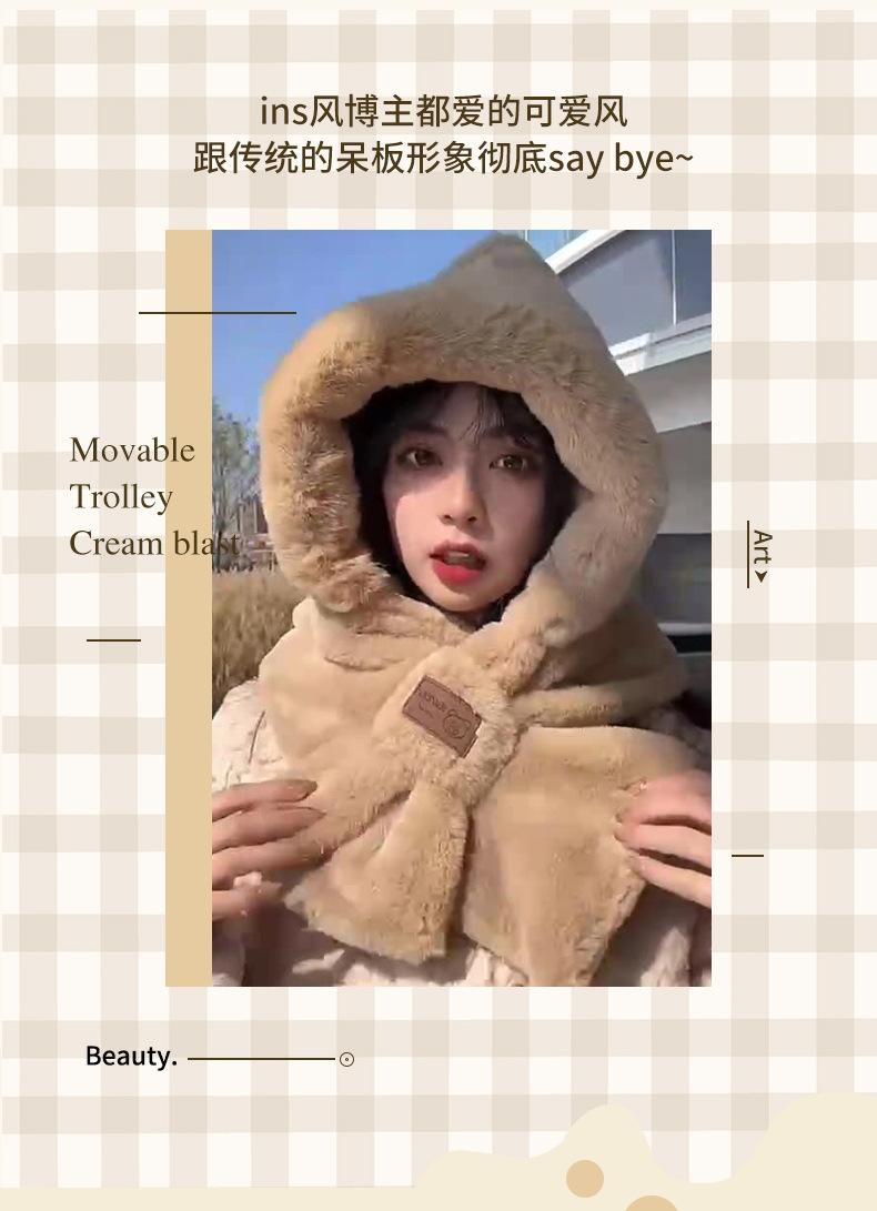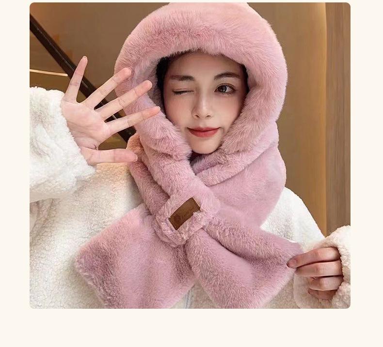 Sombrero de Invierno para Mujer Grueso de Doble Capa Felpa Protección para las Orejas Cálido a Prueba de Viento Sombrero Bufanda de una Pieza para Viaje al Aire Libre