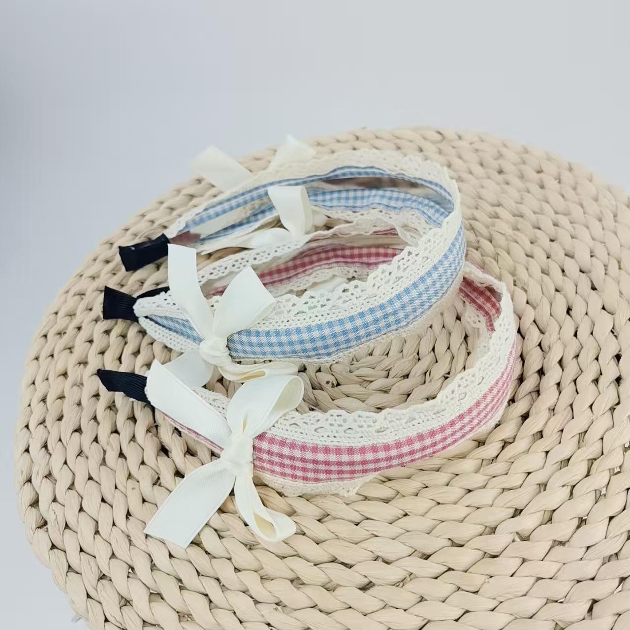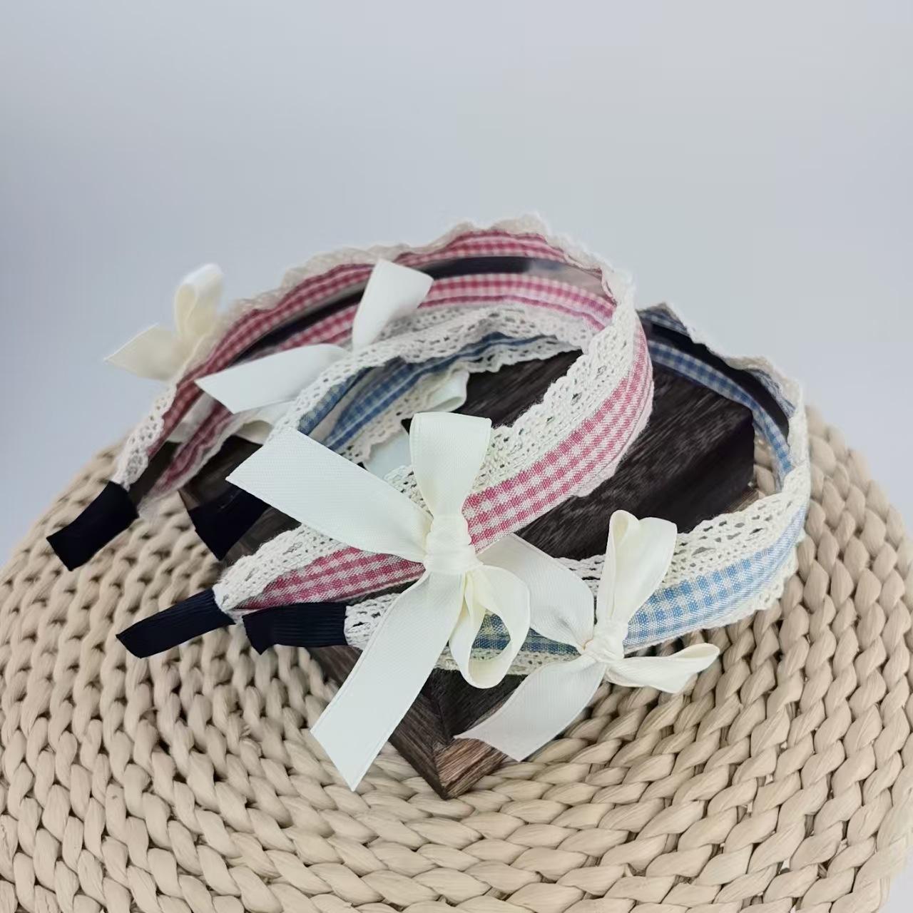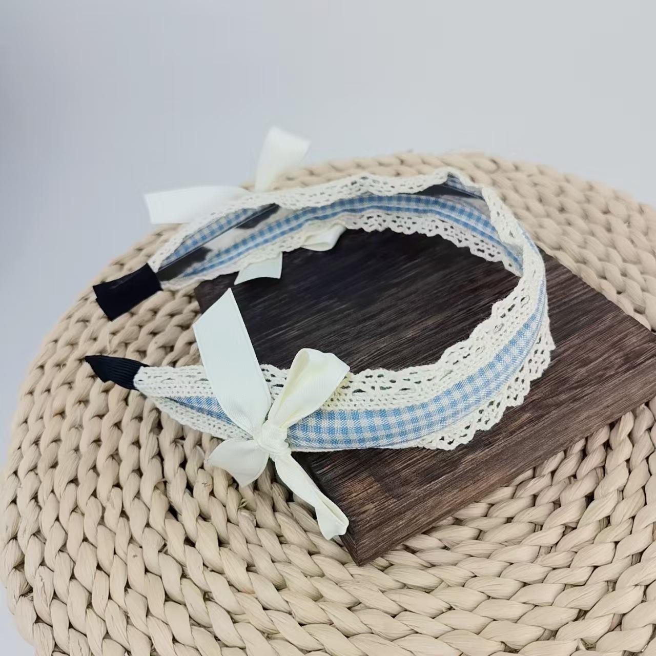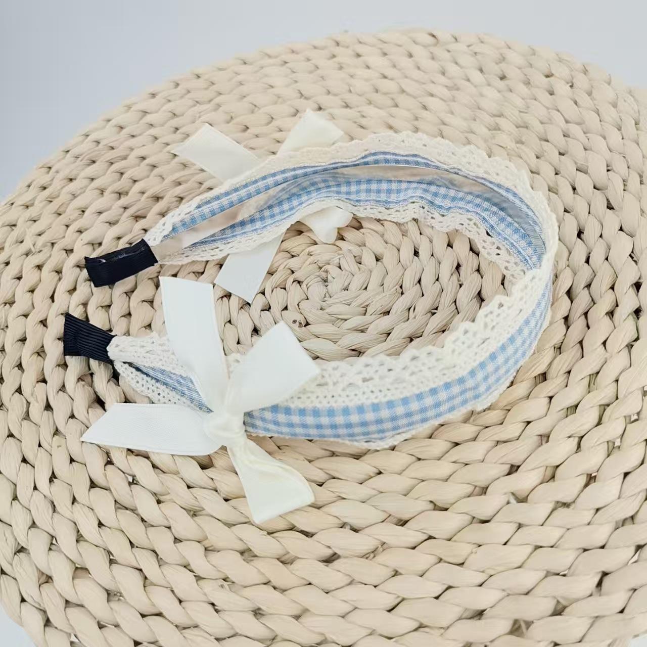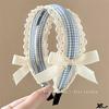 Diadema Azul a Cuadros Linda para Niña Encaje Versátil Accesorios para el Cabello Diadema Verano Nicho Diadema con Lazo Nuevo Estilo