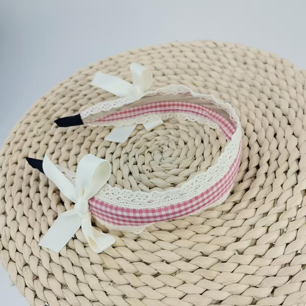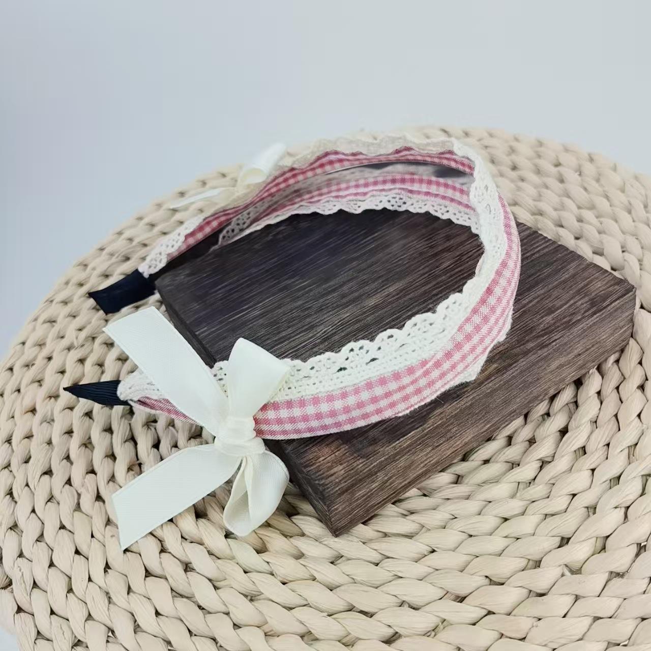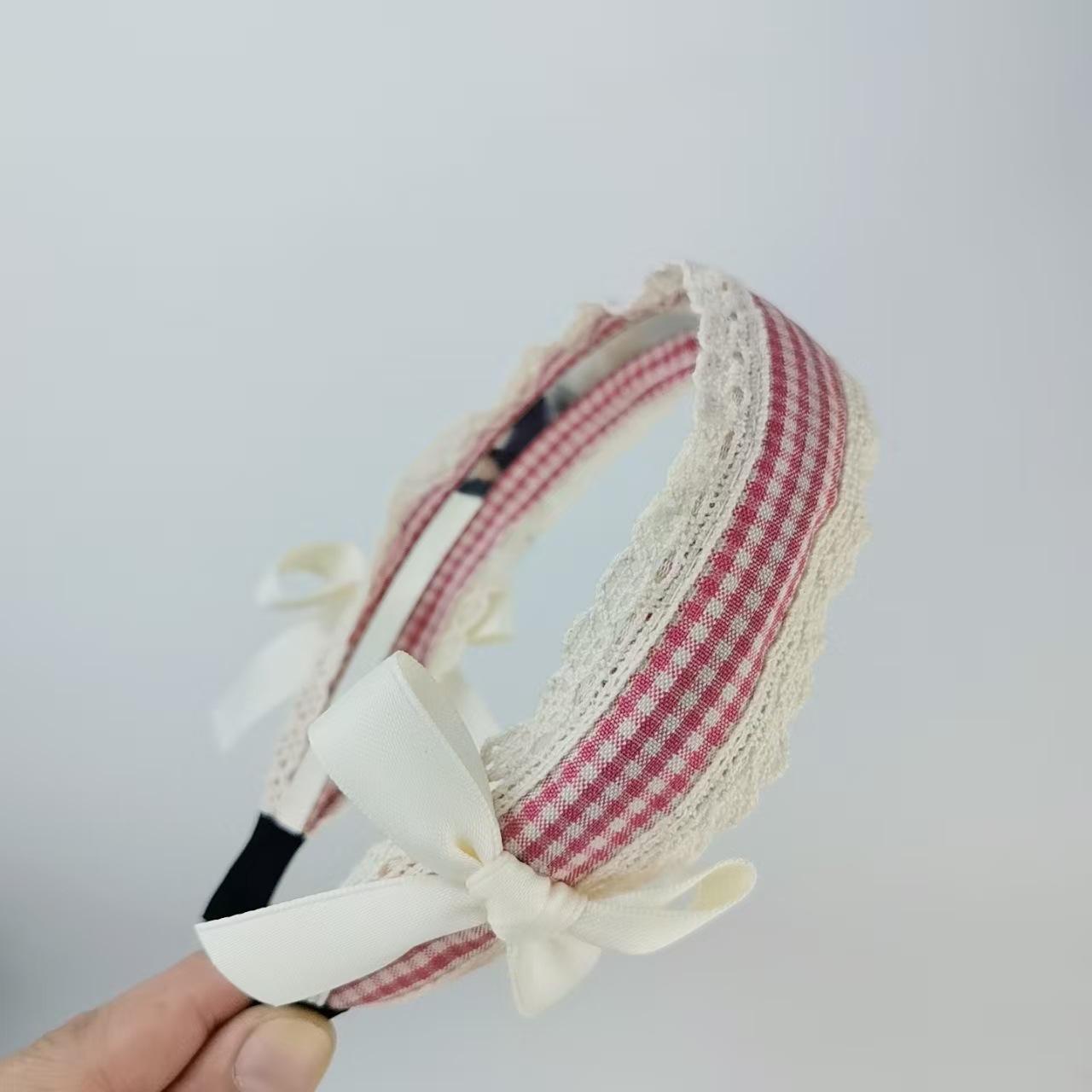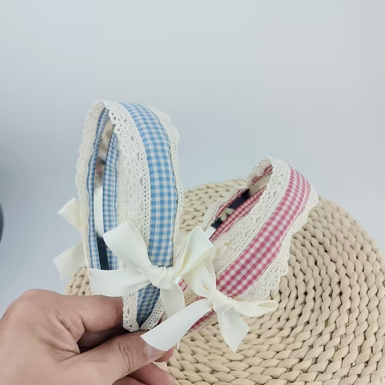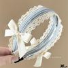 Diadema Azul a Cuadros Linda para Niña Encaje Versátil Accesorios para el Cabello Diadema Verano Nicho Diadema con Lazo Nuevo Estilo