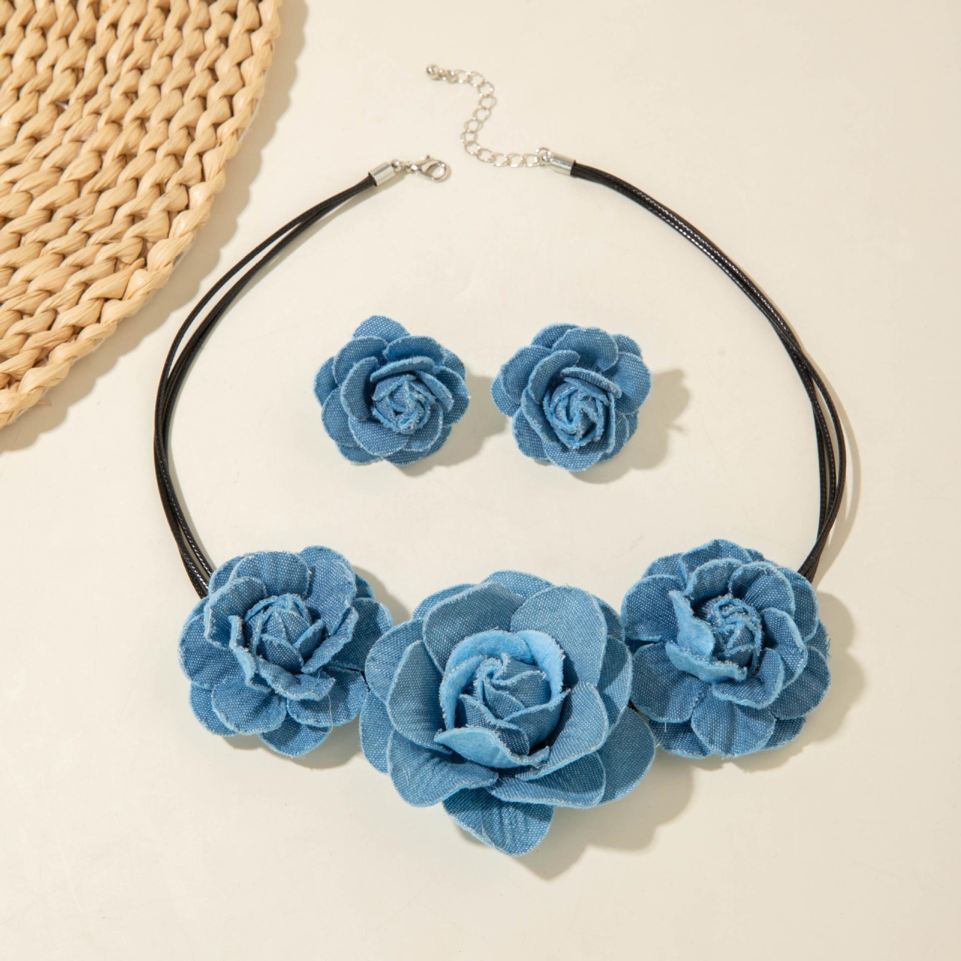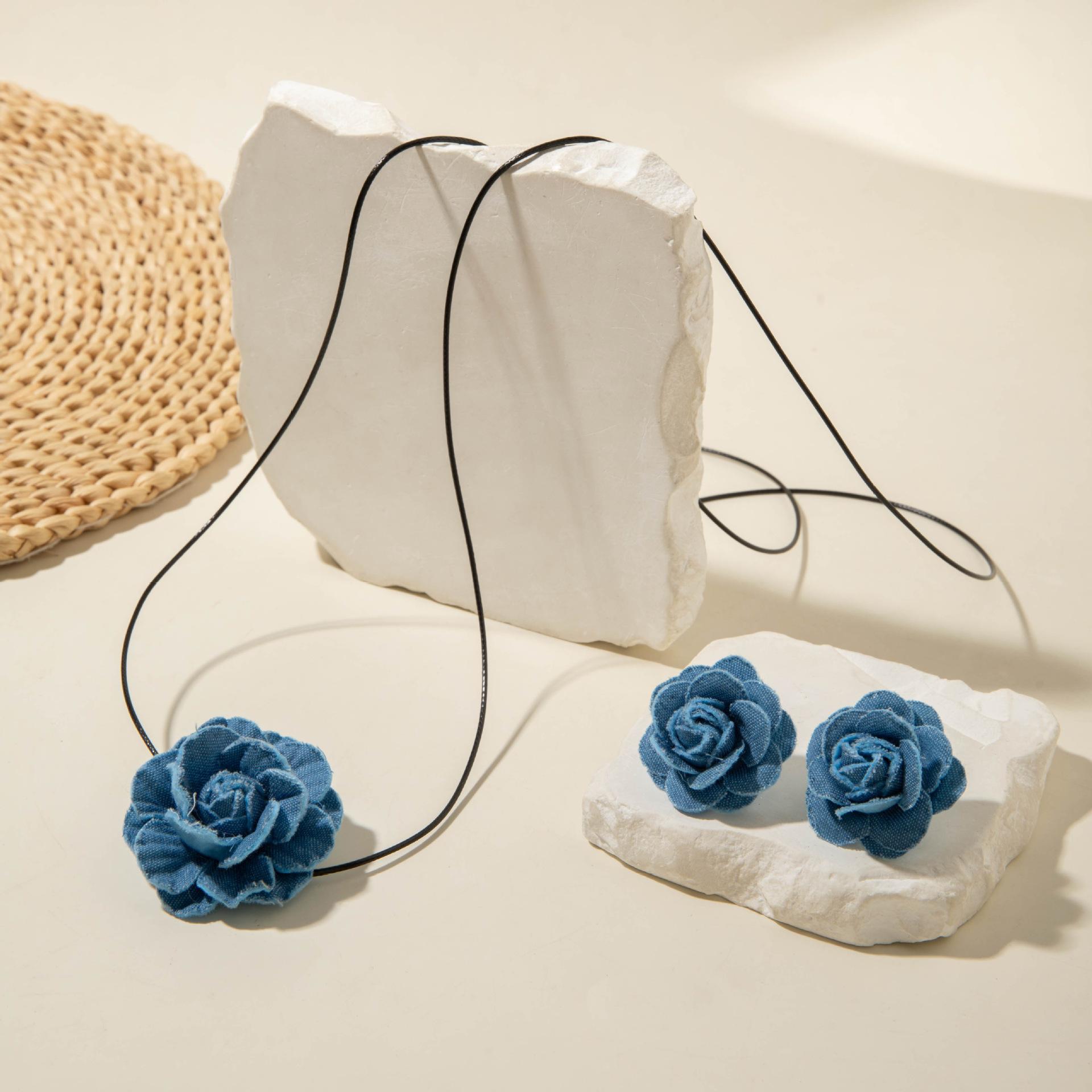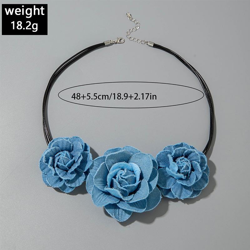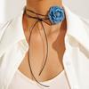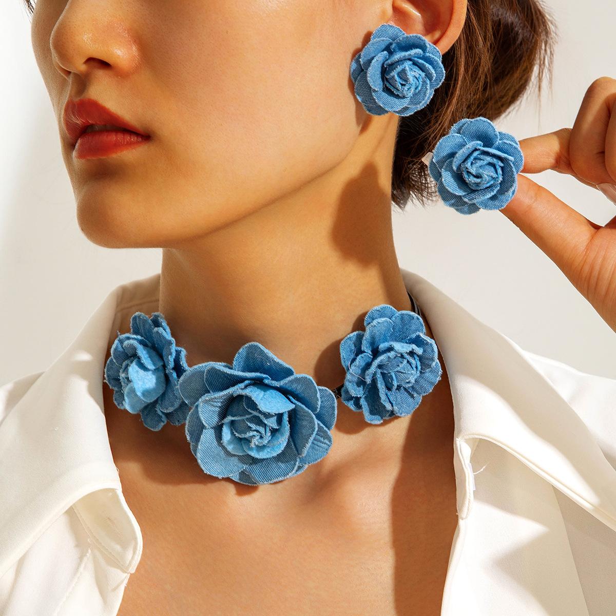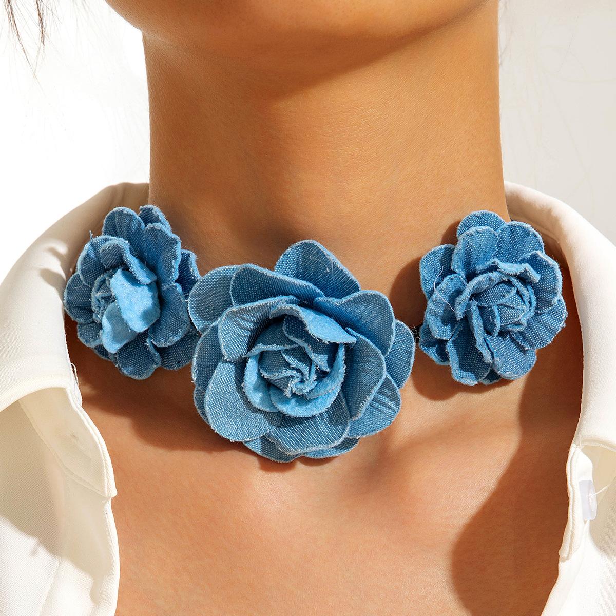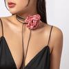 Collar gargantilla de flor tridimensional transfronterizo europeo y americano, collar de rosa, cadena para clavícula, diseño de tela, aretes de botón, joyería