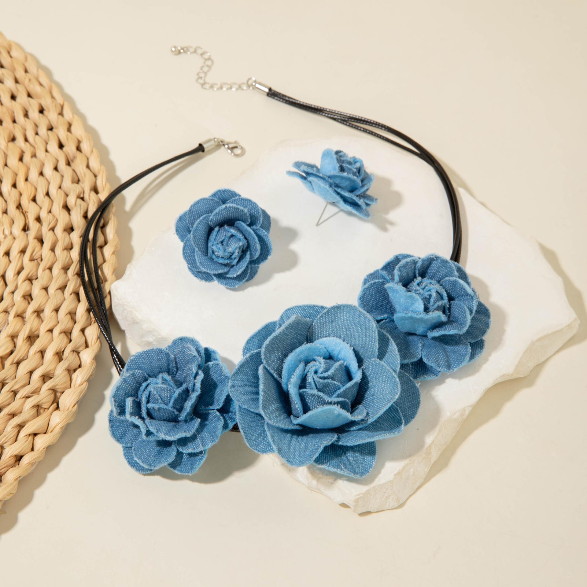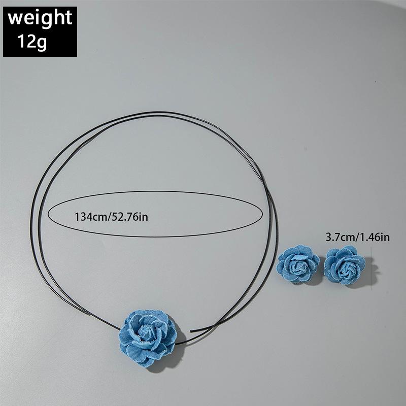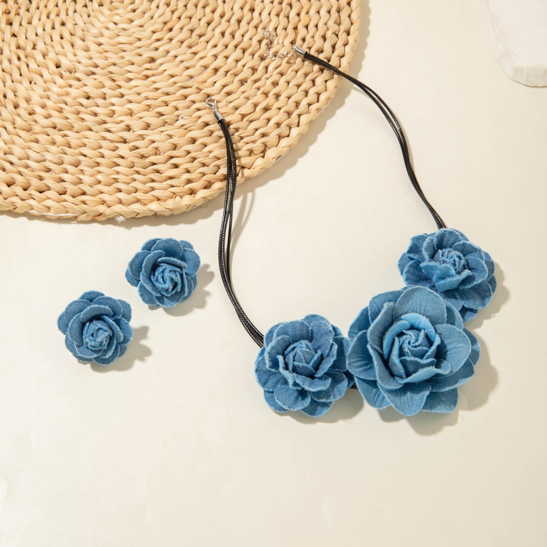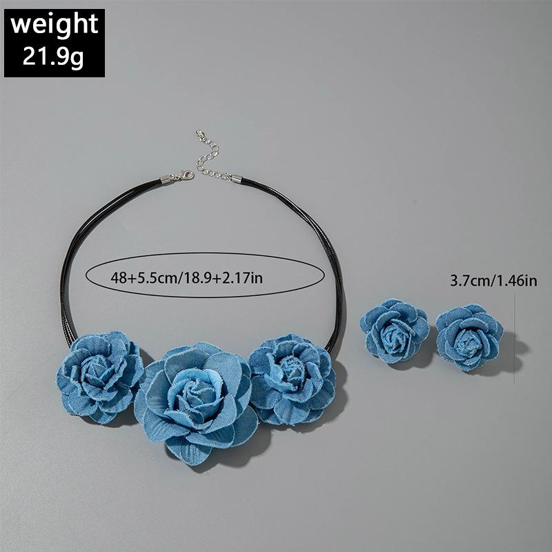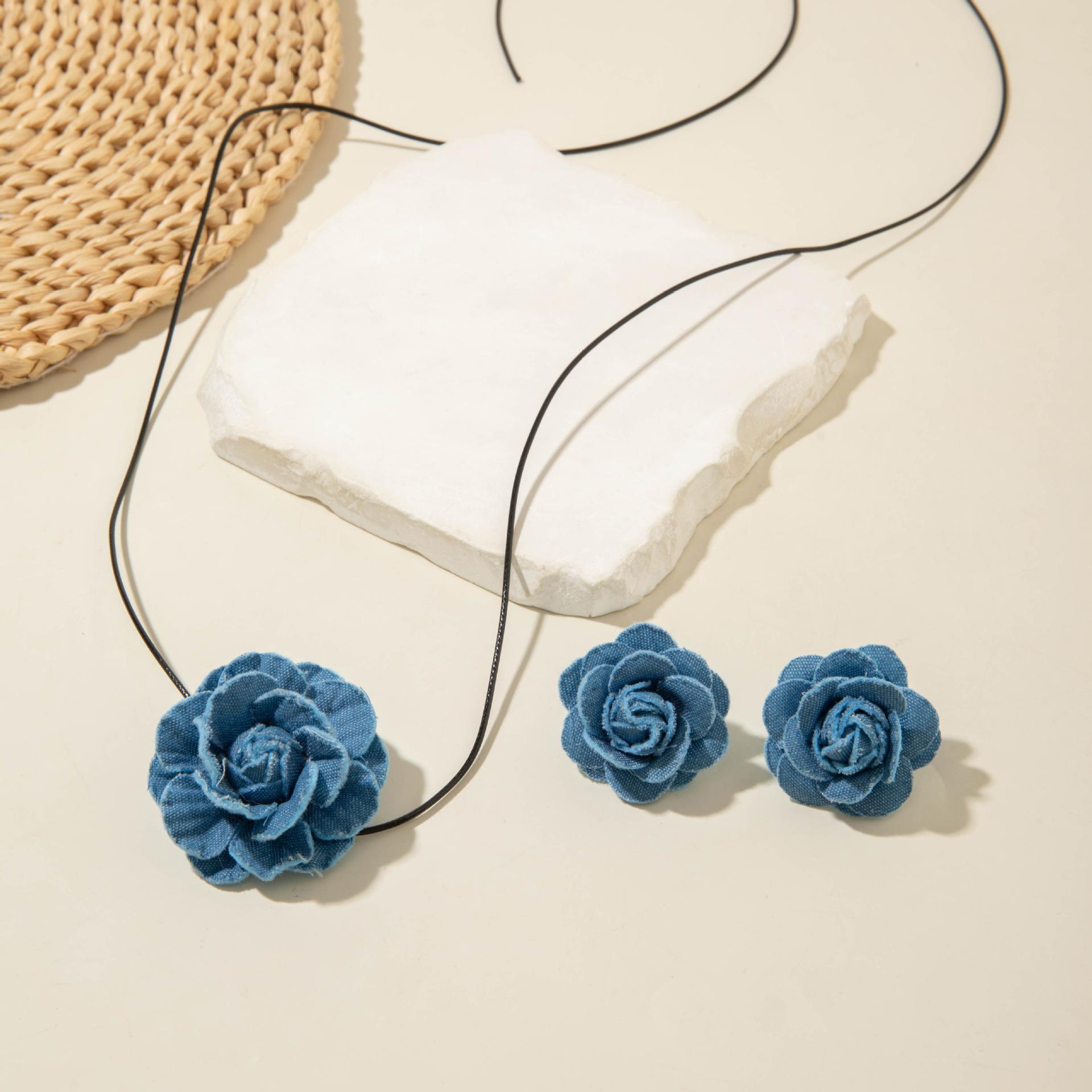 Collar gargantilla de flor tridimensional transfronterizo europeo y americano, collar de rosa, cadena para clavícula, diseño de tela, aretes de botón, joyería