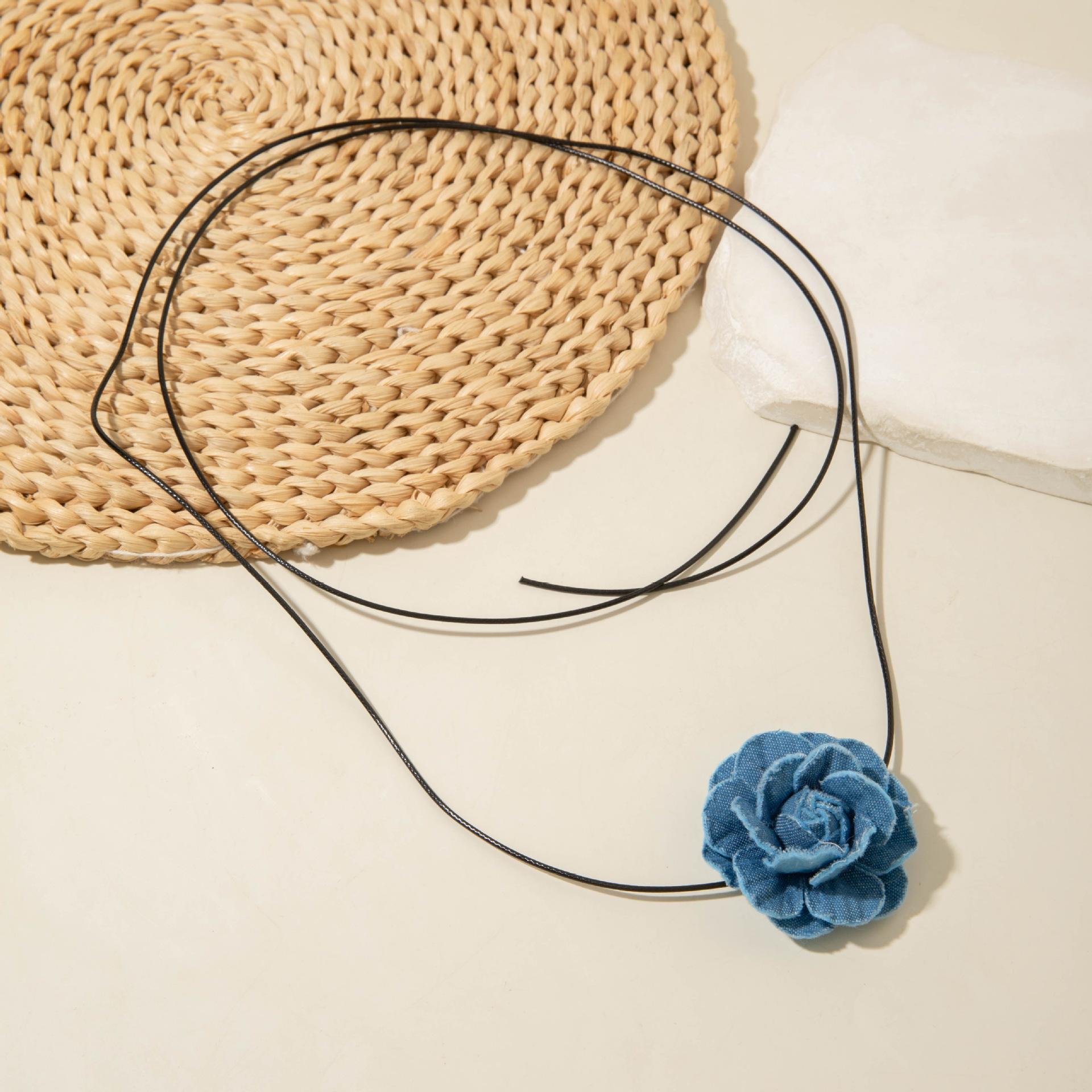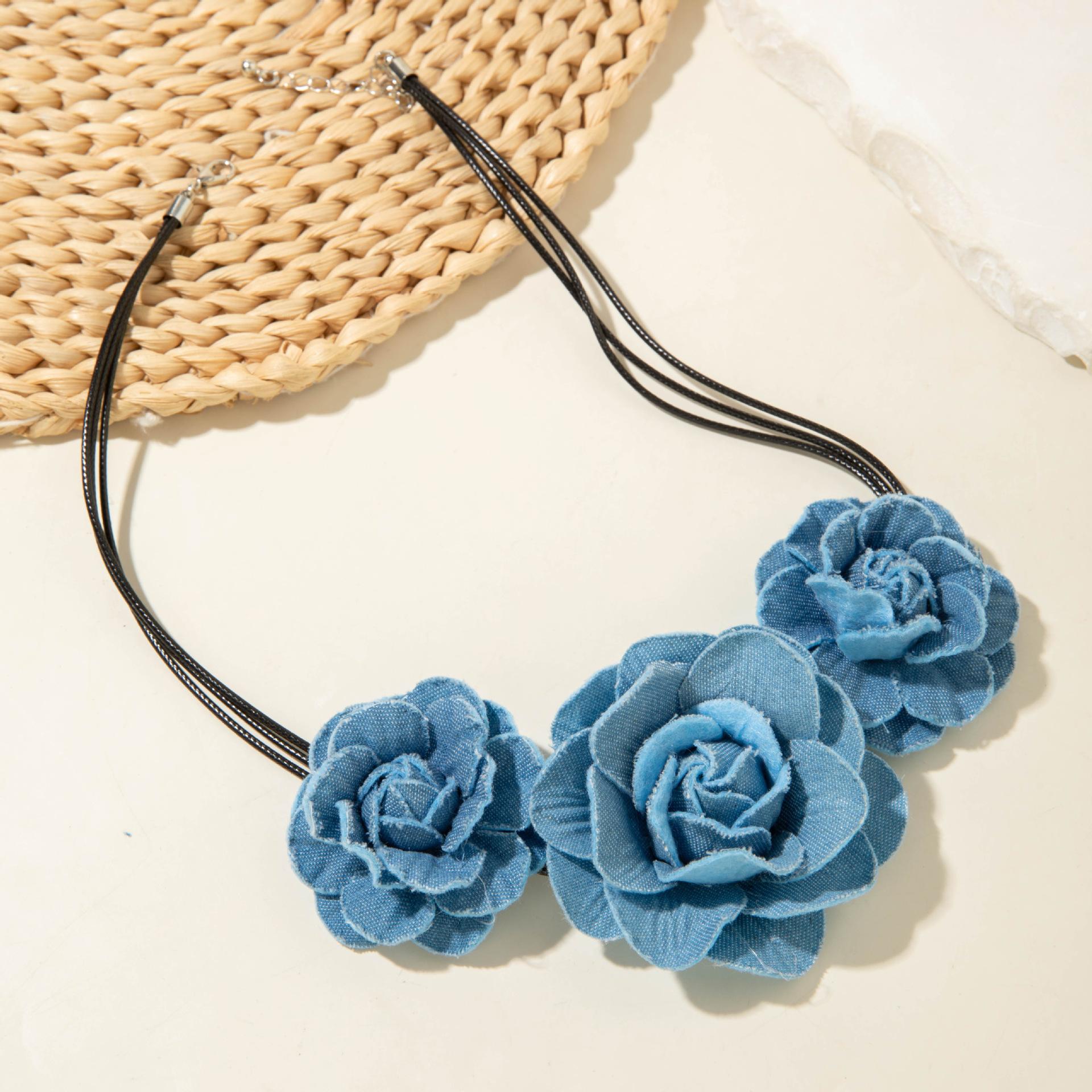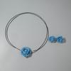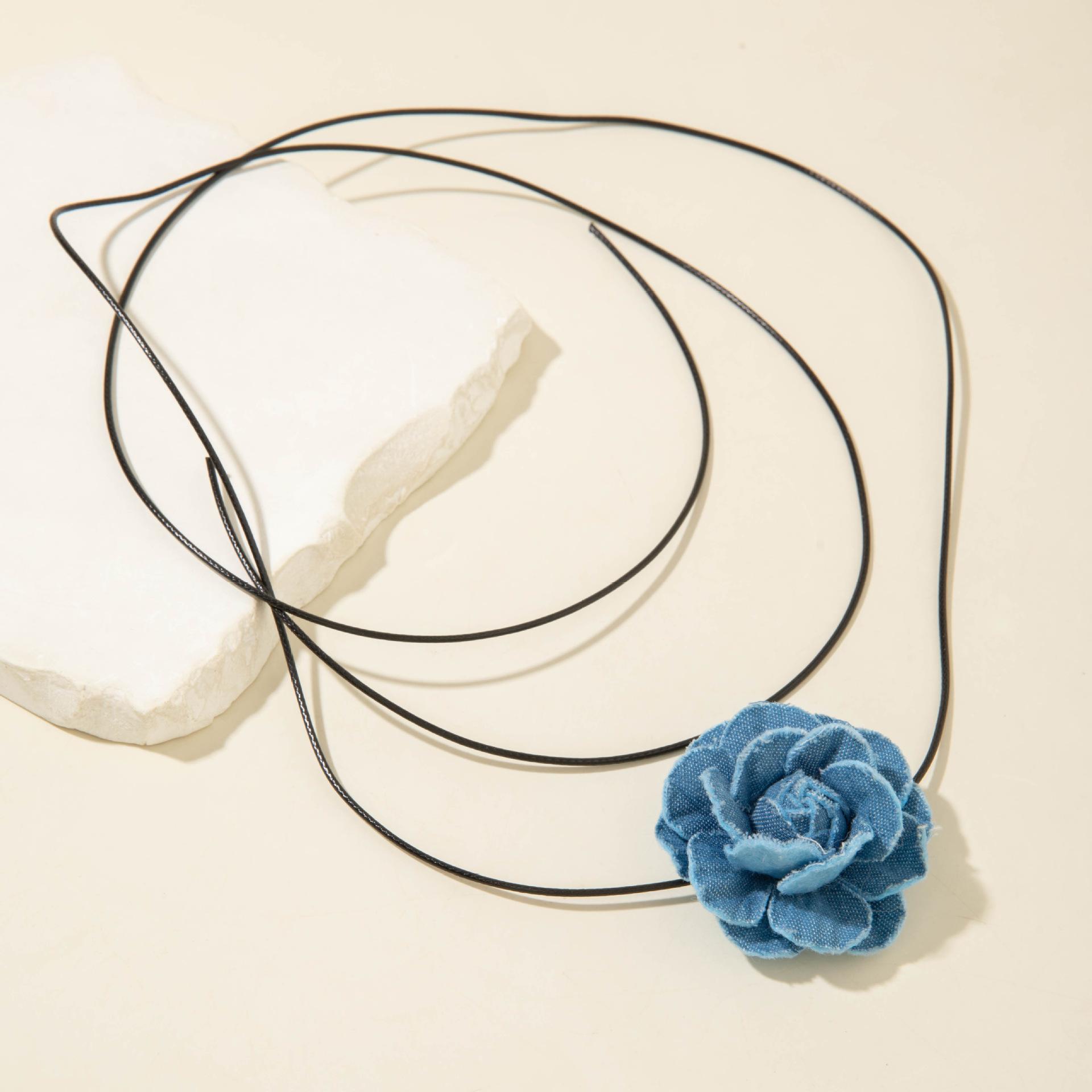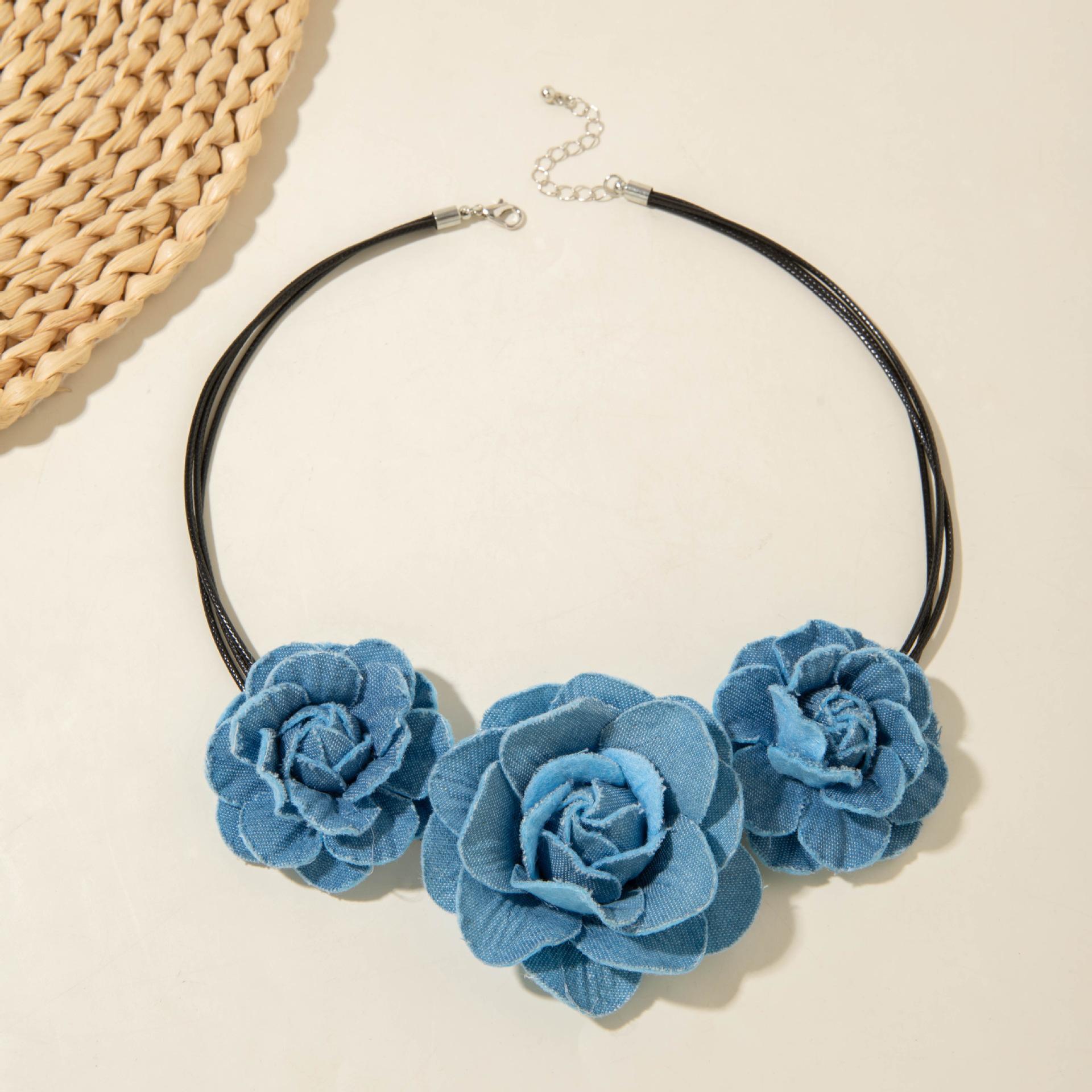 Collar gargantilla de flor tridimensional transfronterizo europeo y americano, collar de rosa, cadena para clavícula, diseño de tela, aretes de botón, joyería