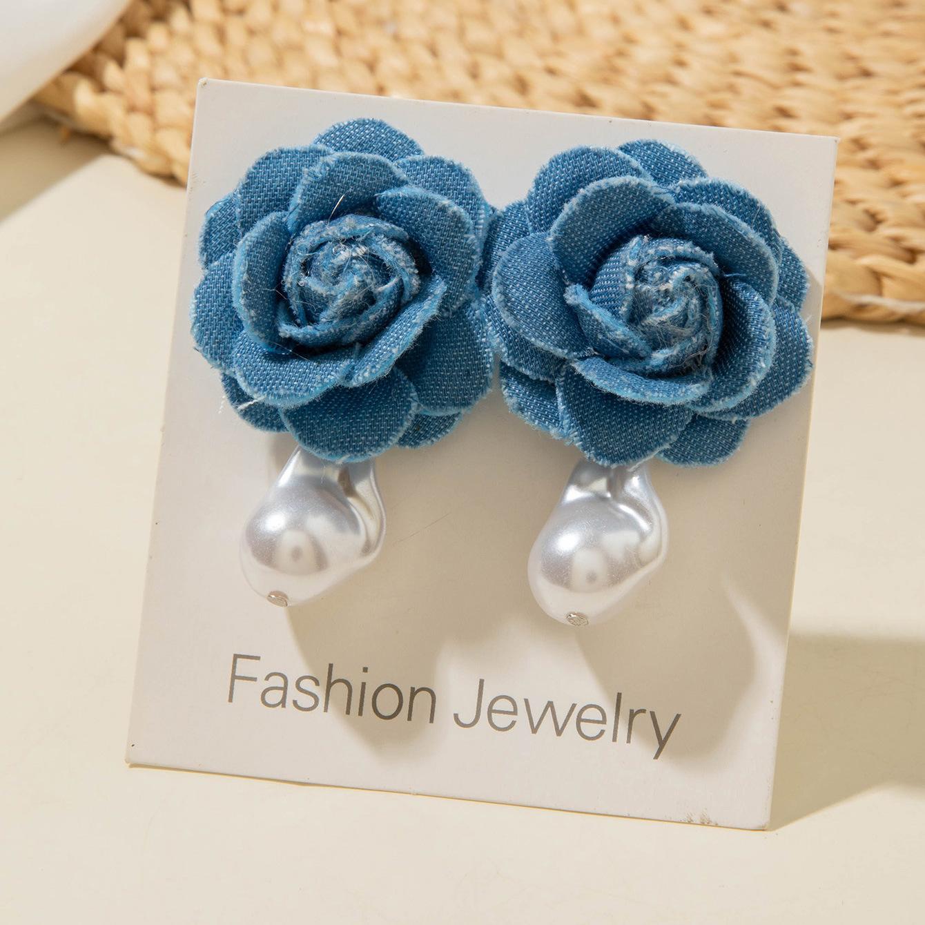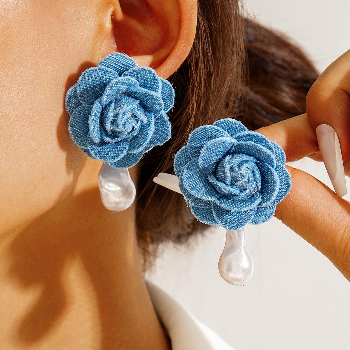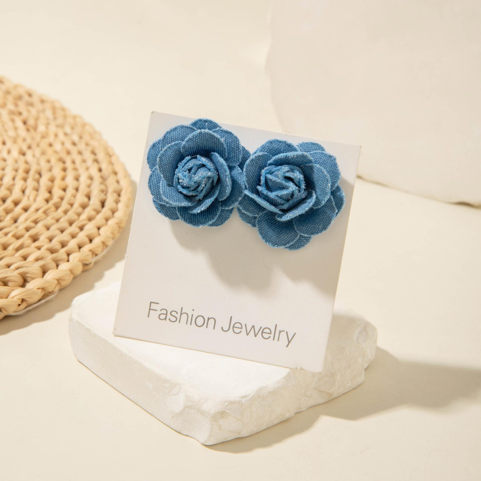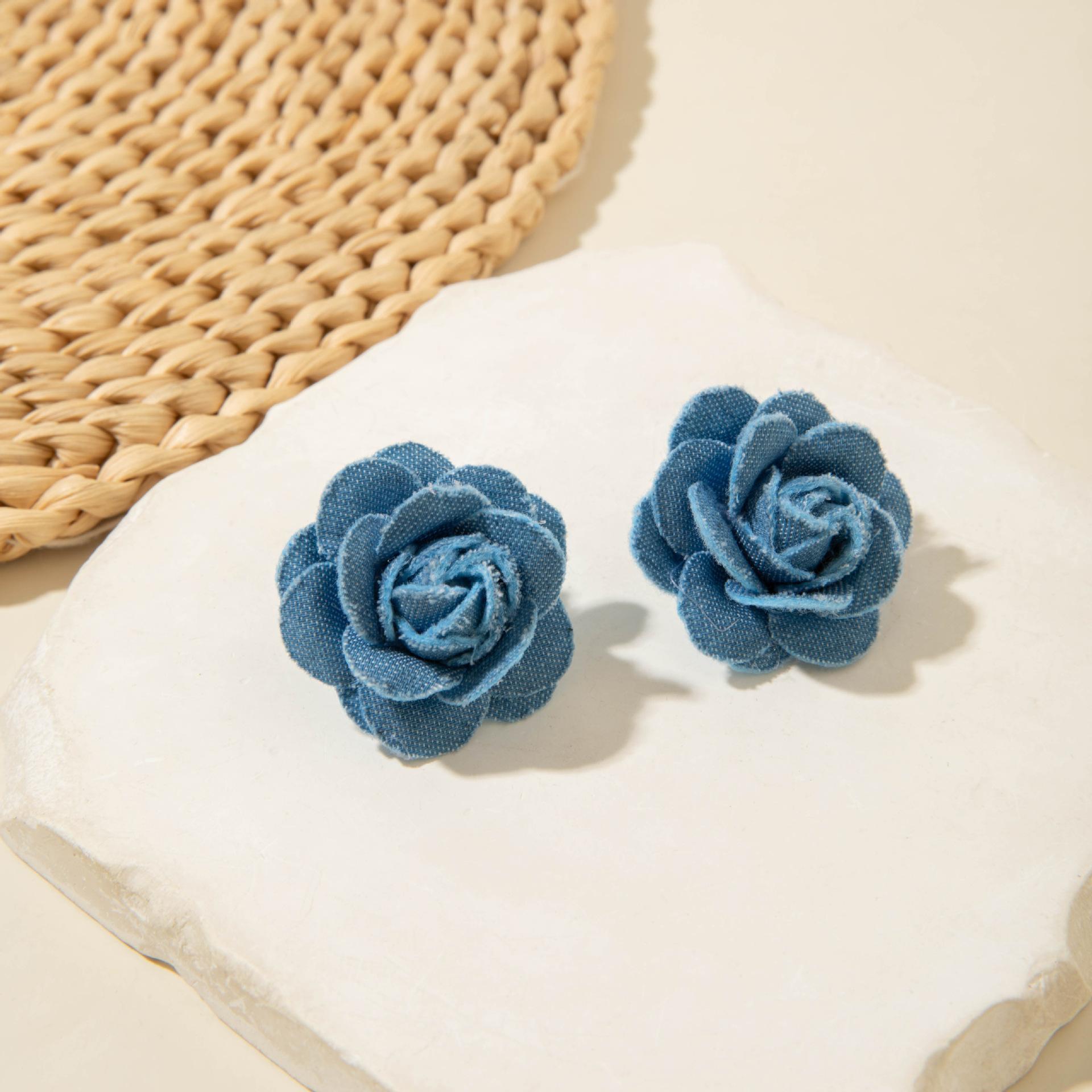 Collar gargantilla de flor tridimensional transfronterizo europeo y americano, collar de rosa, cadena para clavícula, diseño de tela, aretes de botón, joyería
