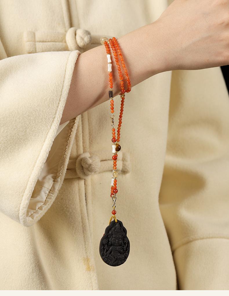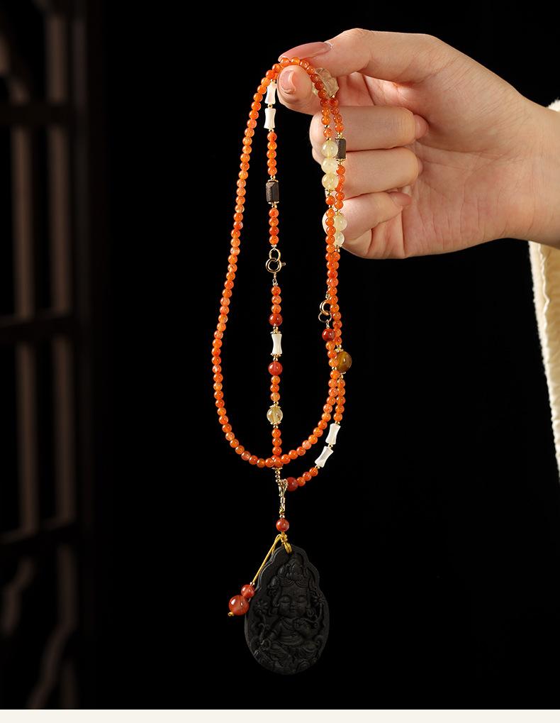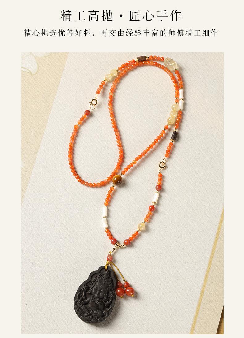 Collar Vintage Dragón Salix Fragante Verde Madre Buda Nuevo Estilo Chino Estilo Nacional Ágata Roja del Sur Cadena de Lana Collar de la Paz Colgante para Mujer