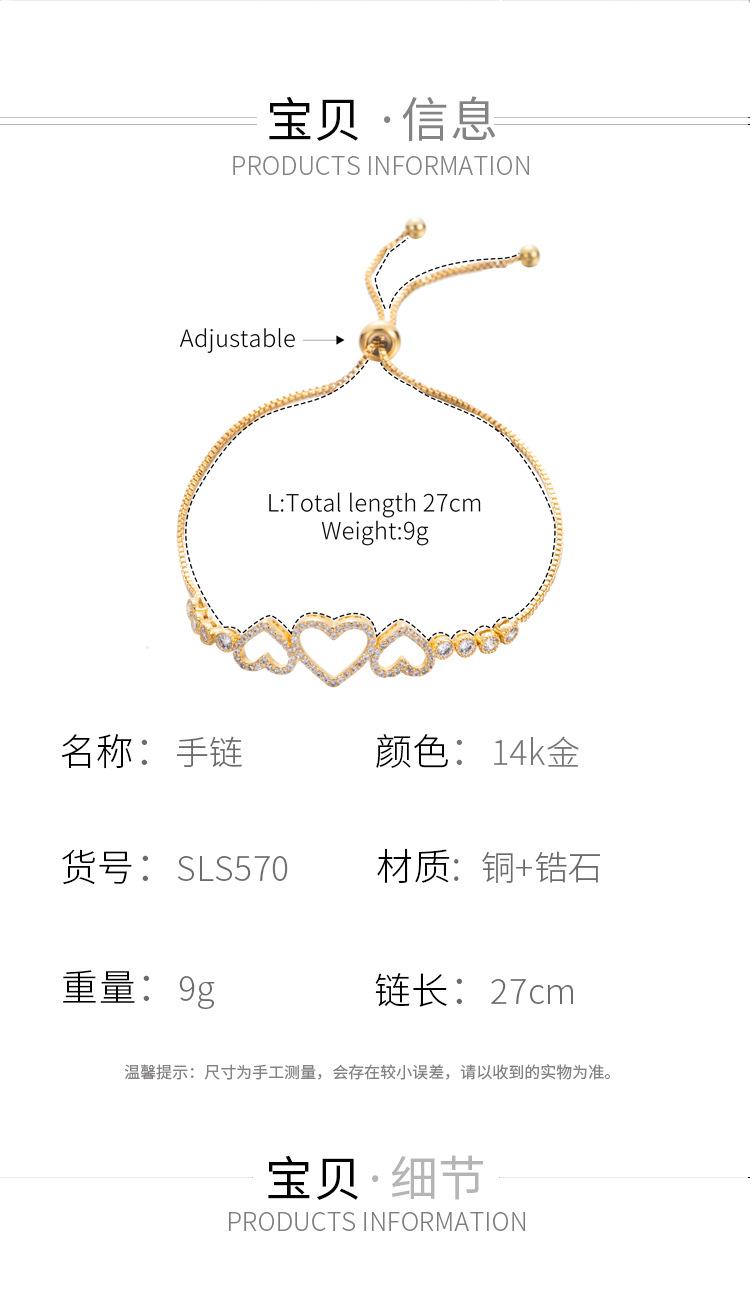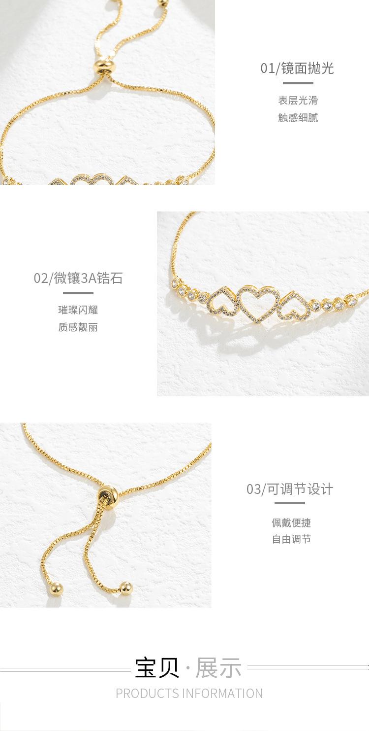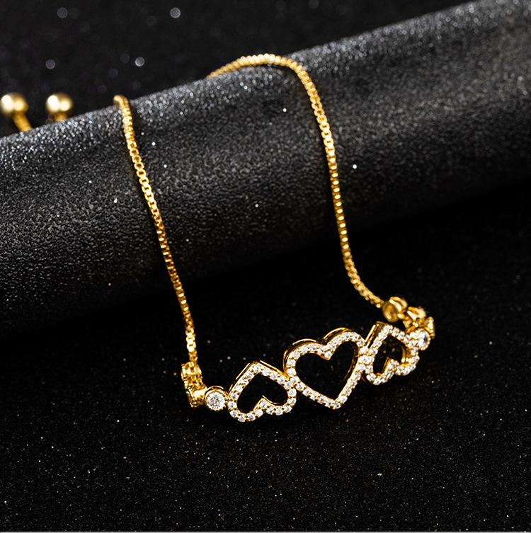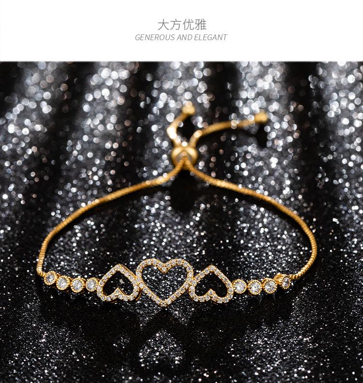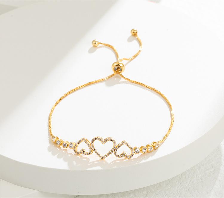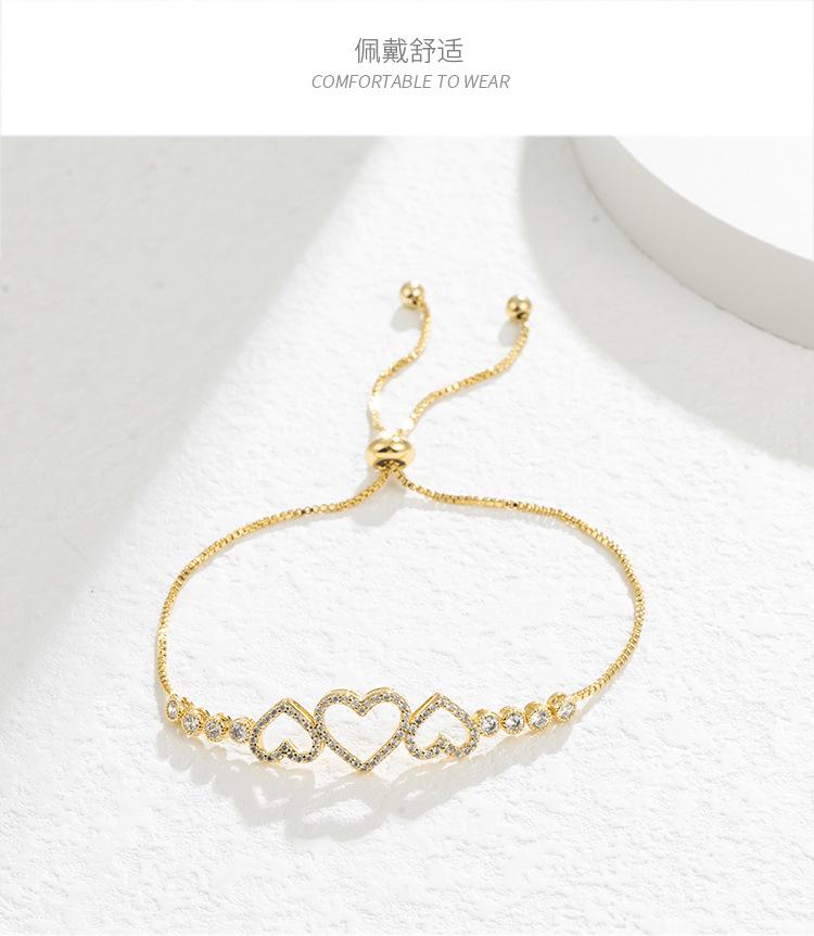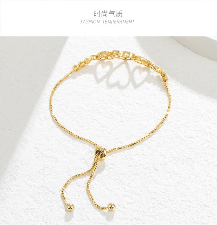 Pulsera elegante de alta gama de cobre con circonitas de corazón ajustable extraíble joyería para mujer lujo ligero regalo accesorios para el Día de San Valentín