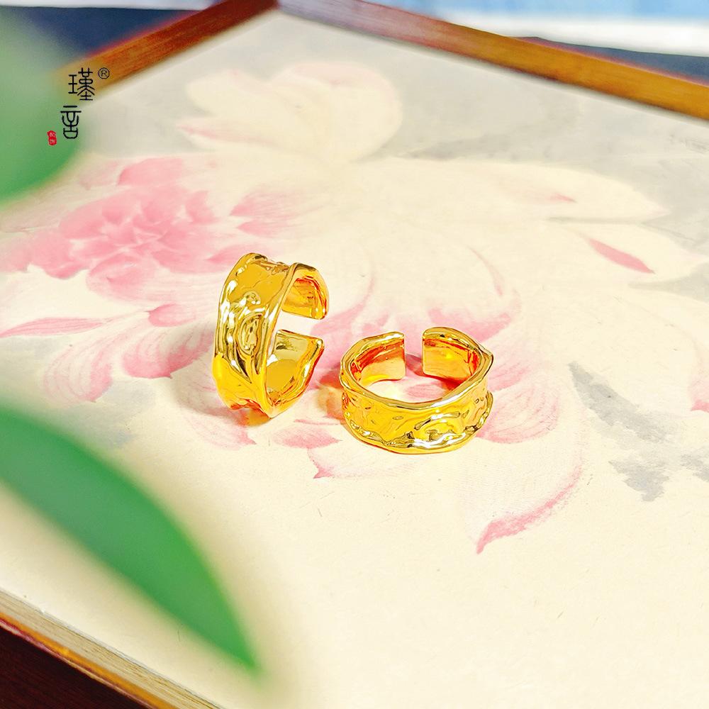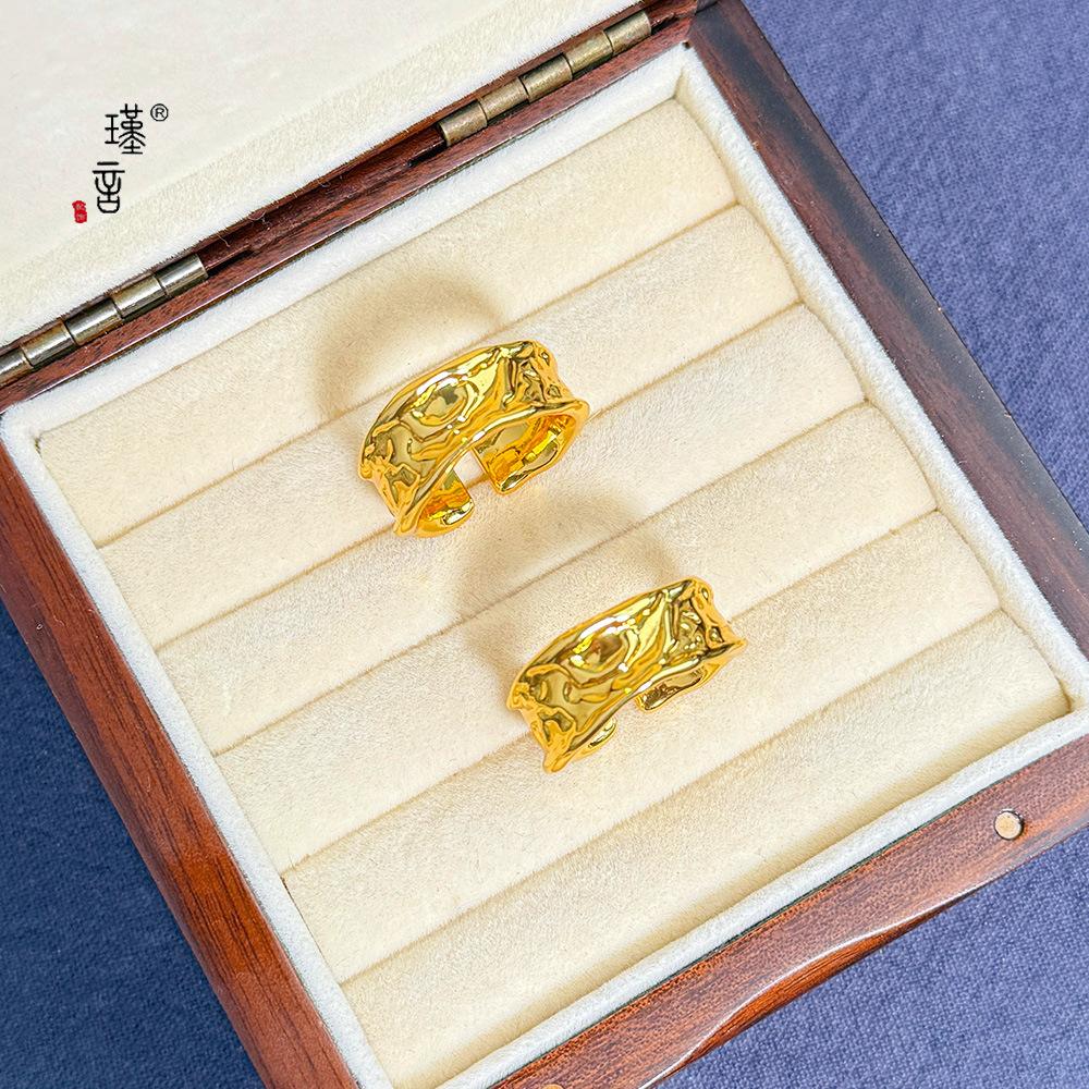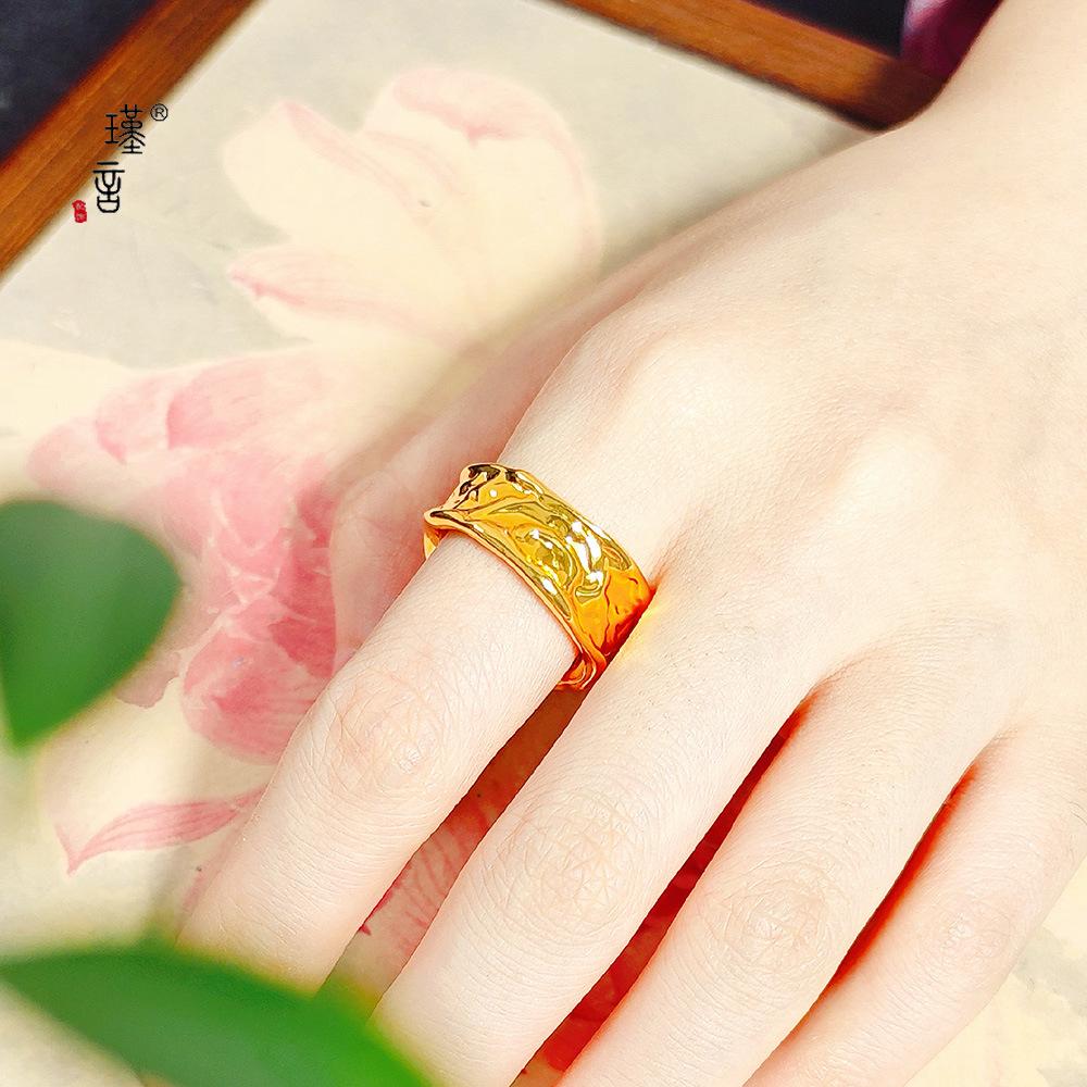 Jin Yan nueva textura de lava anillo ancho abierto irregular europeo cóncavo convexo roca irregular anillo ancho abierto mujeres