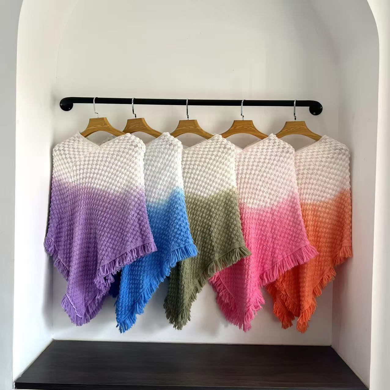 Nueva Capa con Flecos Degradados Chal Primavera y Otoño Tejido Imitación Cachemira Abrigo Temperamental Capa Chal Versátil de Moda