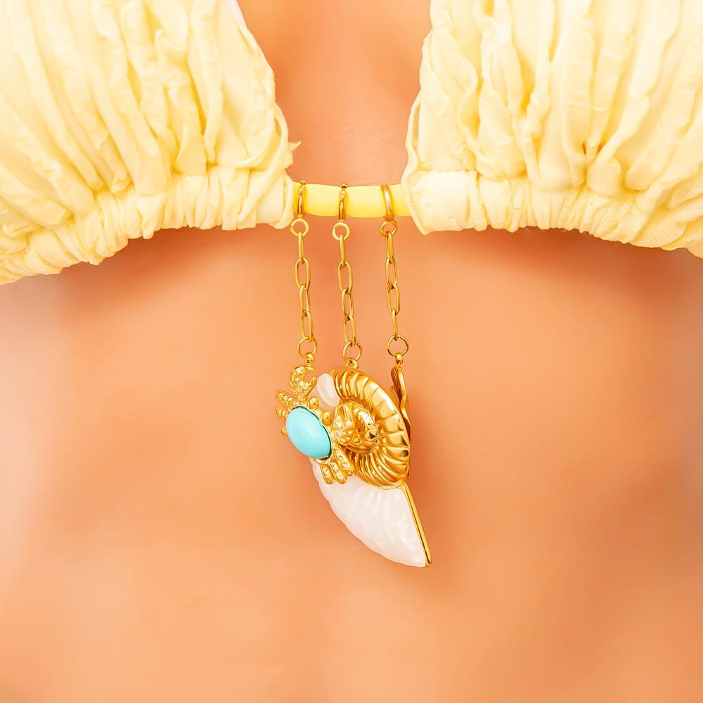 Amazon bikini hebilla acero inoxidable serie marina colgante colgante único DIY hecho a mano oro 18K colgante que no se desvanece