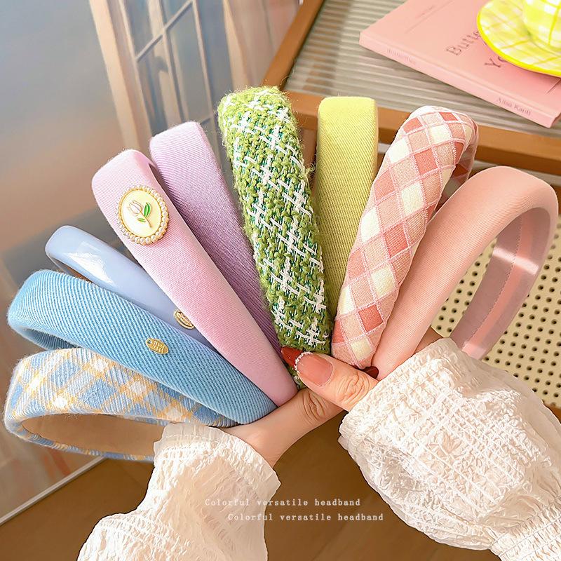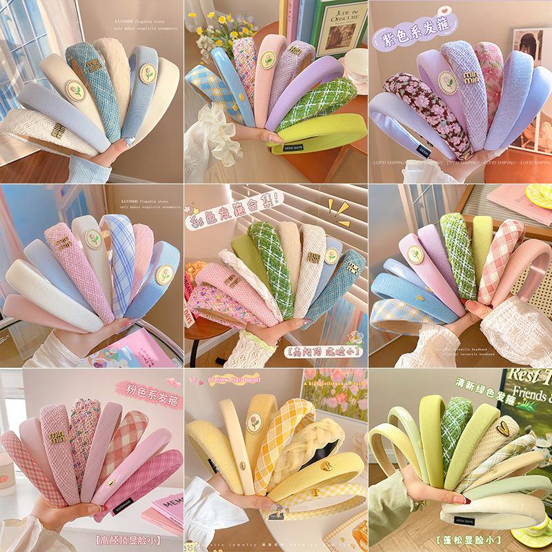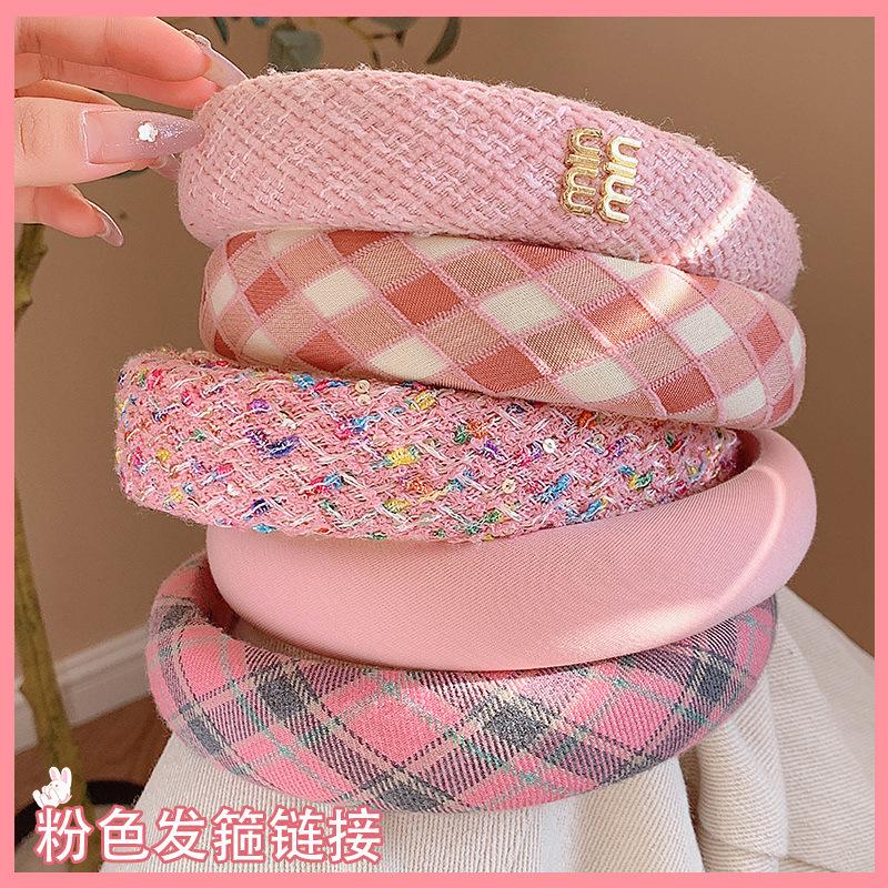 7# Pink Wide-brimmed Plaid Headband, 3# Pink Letter Chanel Hairband, 1# Pink Grid, 1# black, 3# Blue Grid, 6# ...