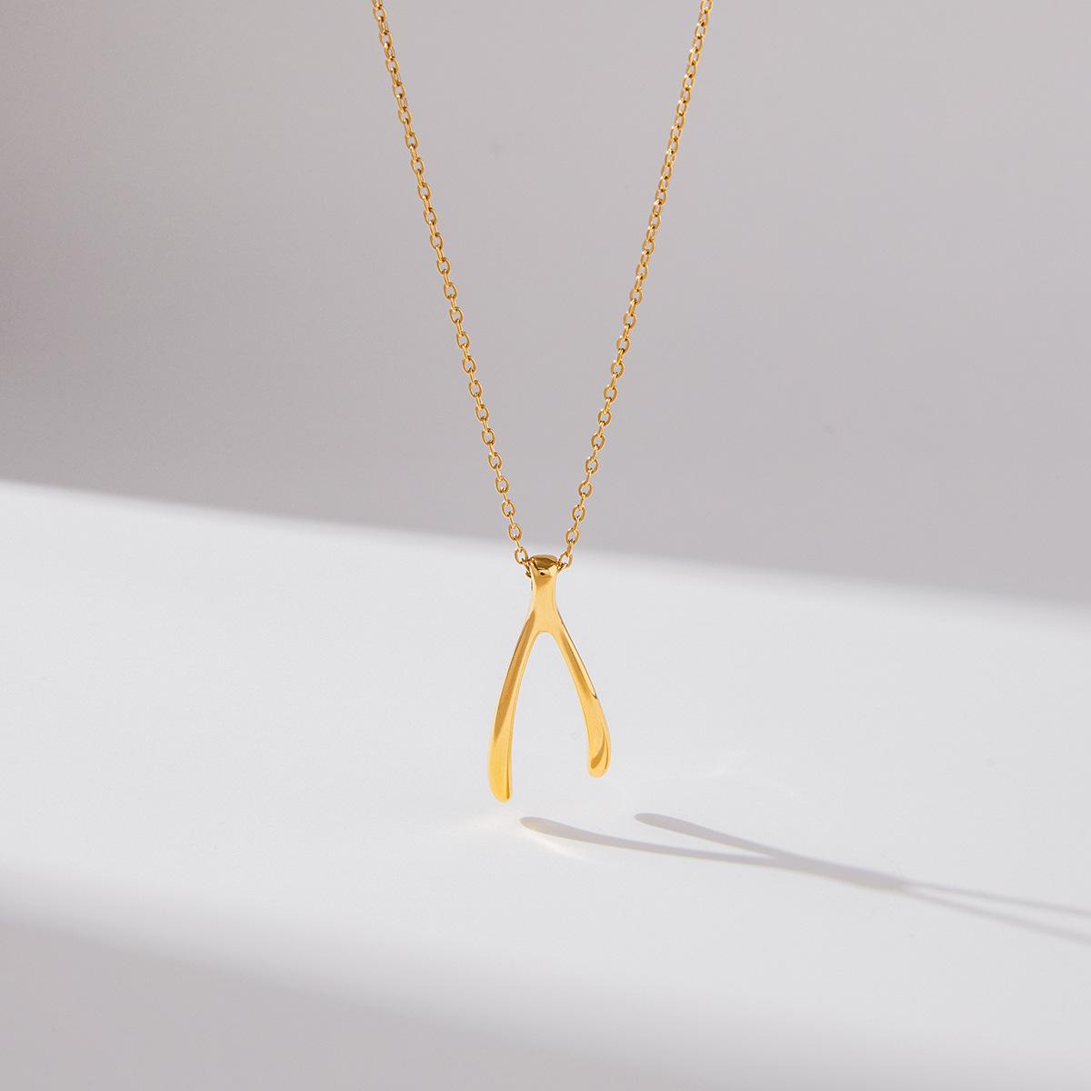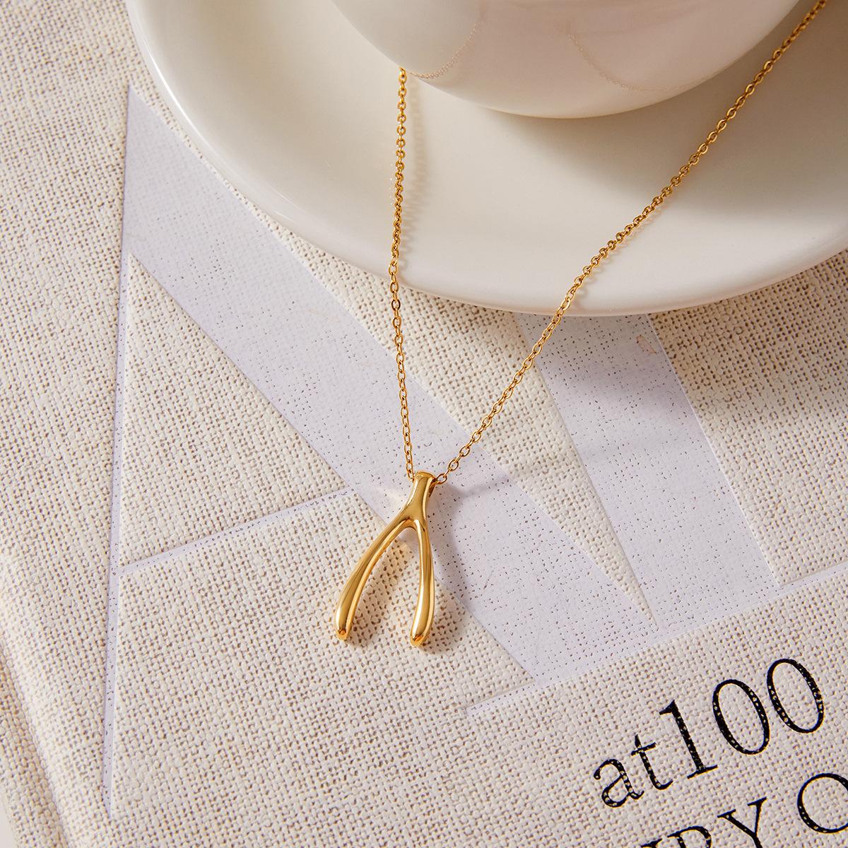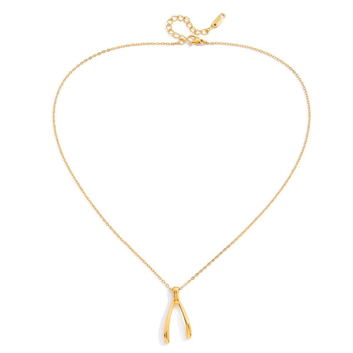 Collar de Lujo con Colgante de Hueso de la Suerte de Acción de Gracias de Acero Inoxidable Oro de 18K Estilo Clásico y Silencioso Accesorios de Collar Joyería Transfronteriza para Mujer