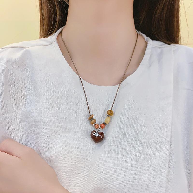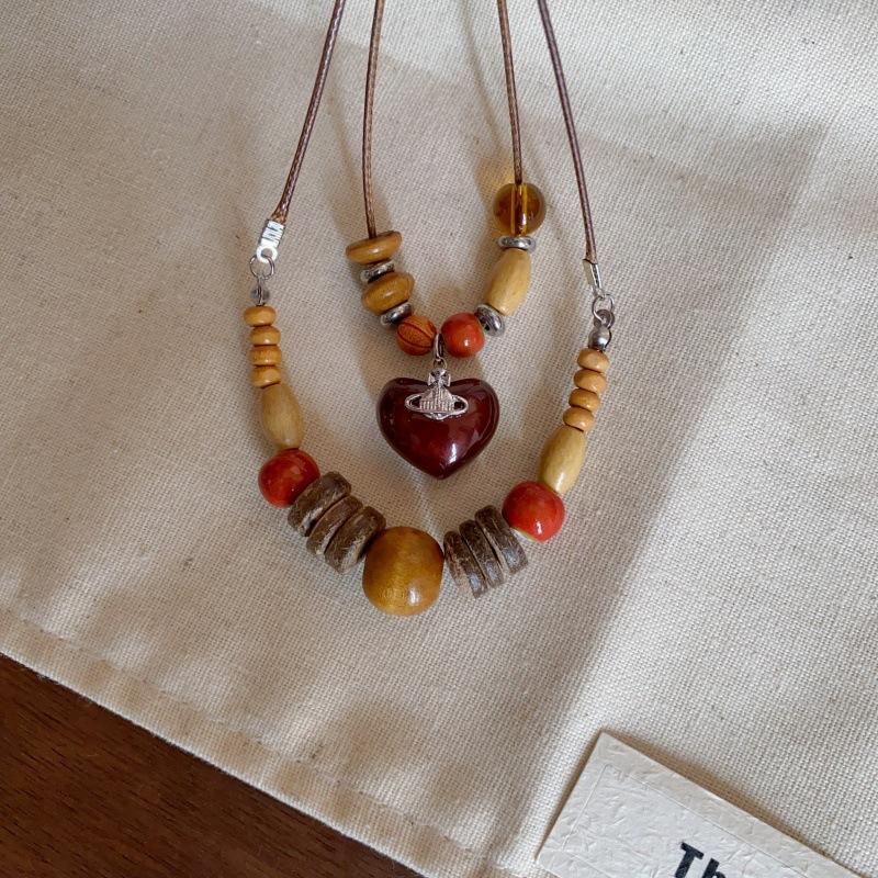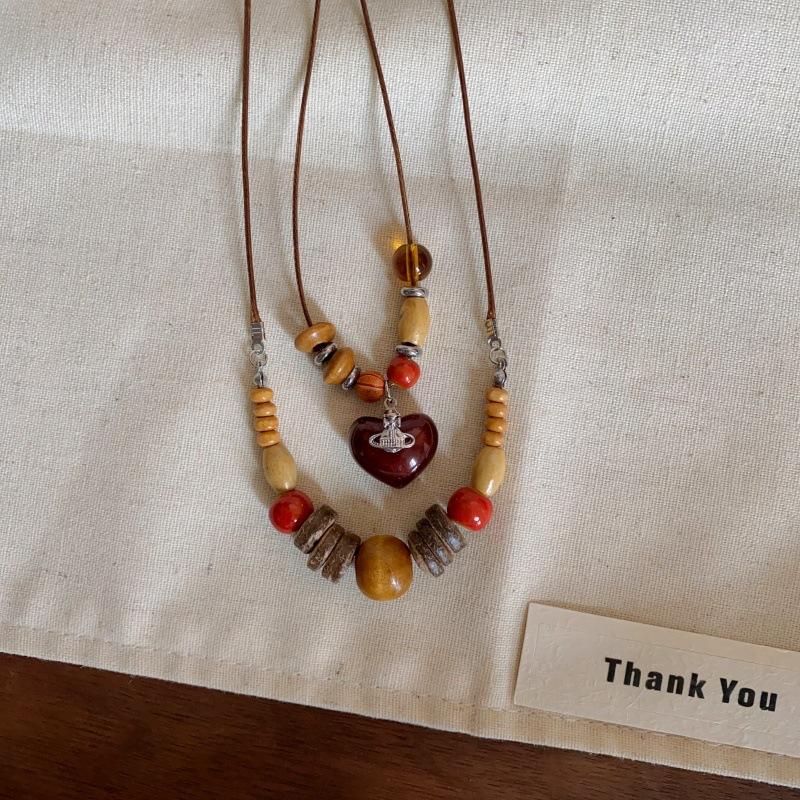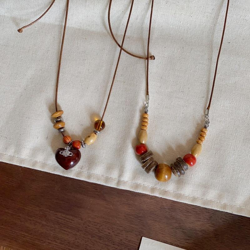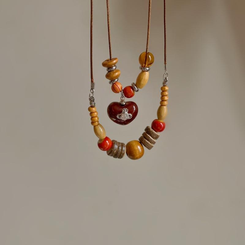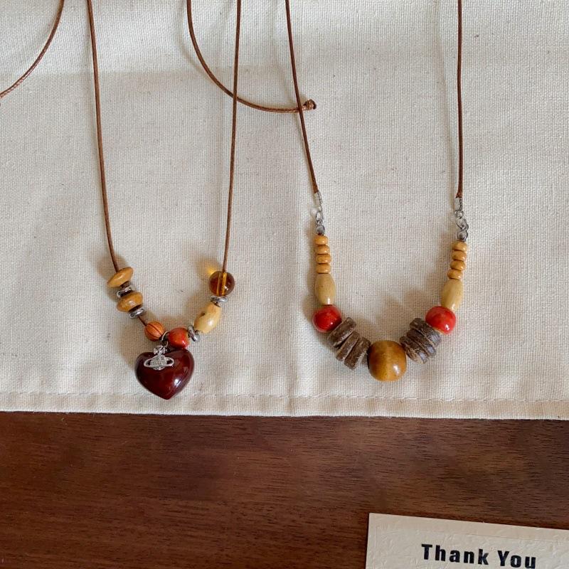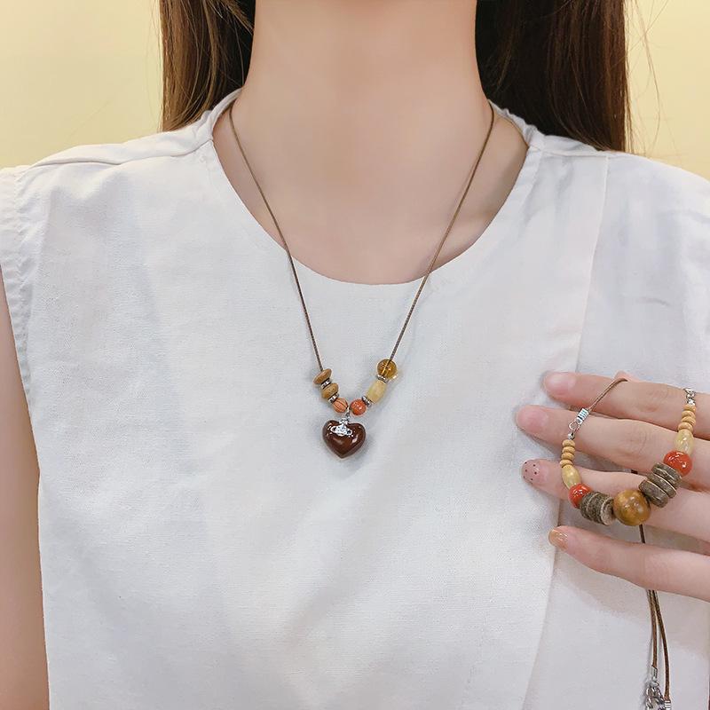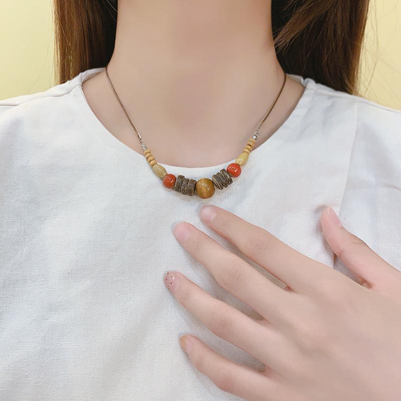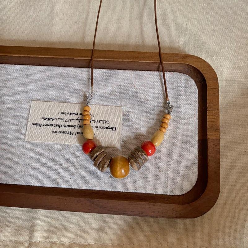 Collar con Colgante de Cuentas de Madera Retro para Mujer, Diseño de Nicho, Accesorios de Estilo Étnico, Moda, Cadena Larga Versátil para Suéter