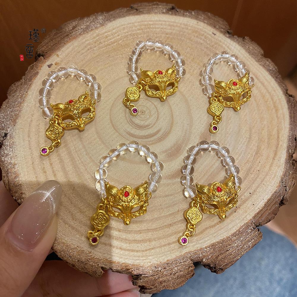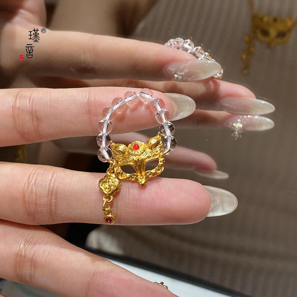 Tienda de Oro Jin Yan mismo estilo máscara de zorro espíritu de oro arena anillo de cristal blanco mujeres 2025 nuevo estilo chino antiguo