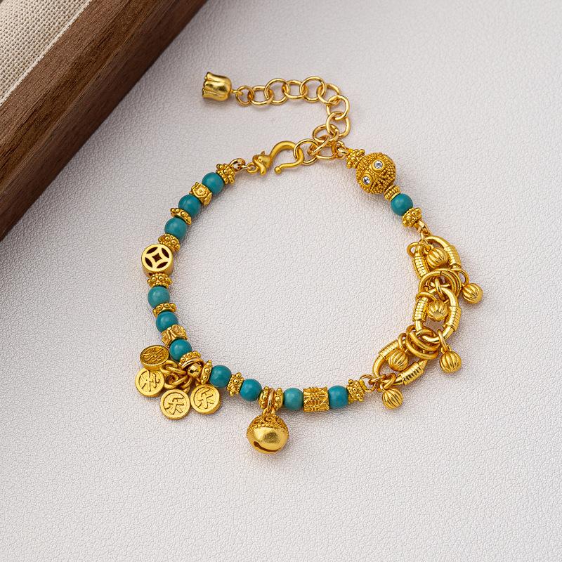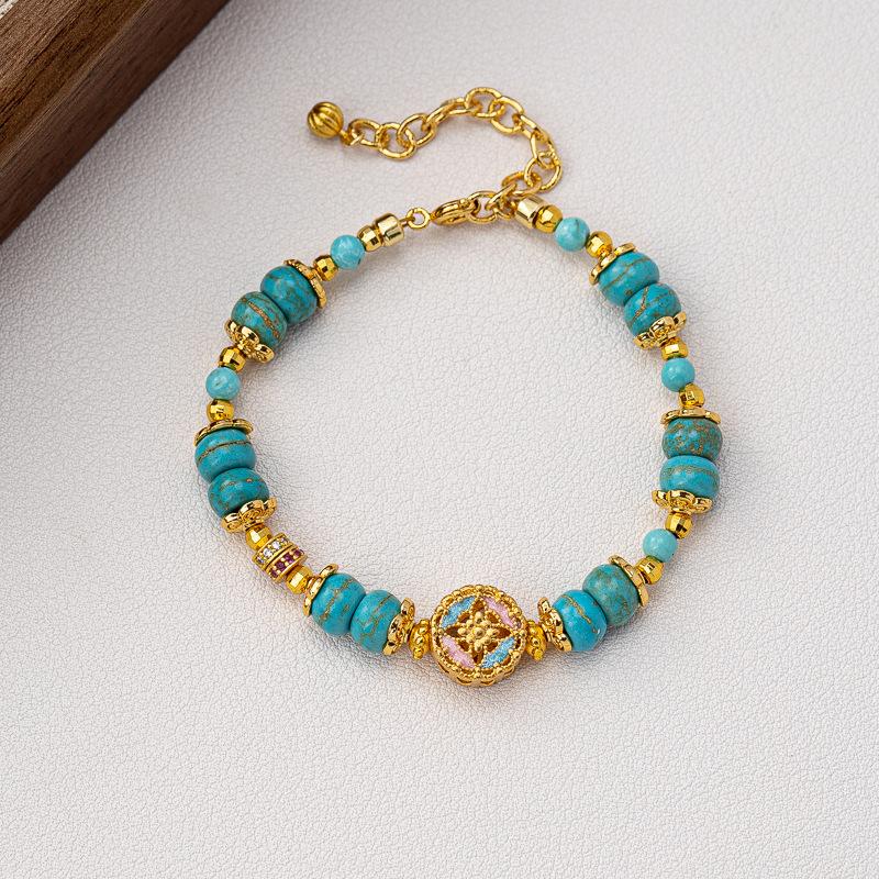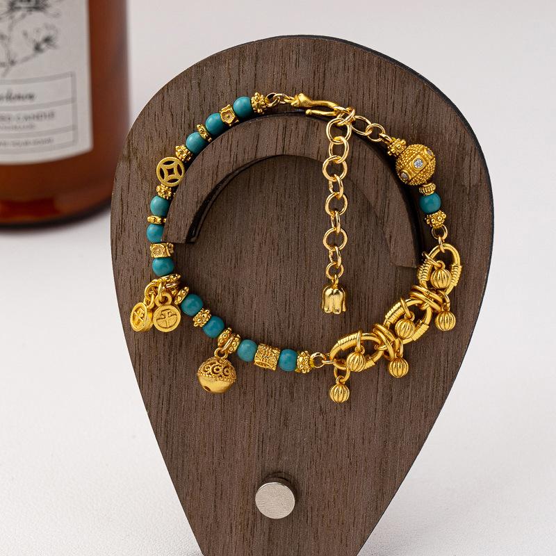 Retro Turquesa Ins Elegante Lujo Accesible Versátil Pulsera para Mujer Nicho de Alta Gama Exquisitas Pulseras Apiladas